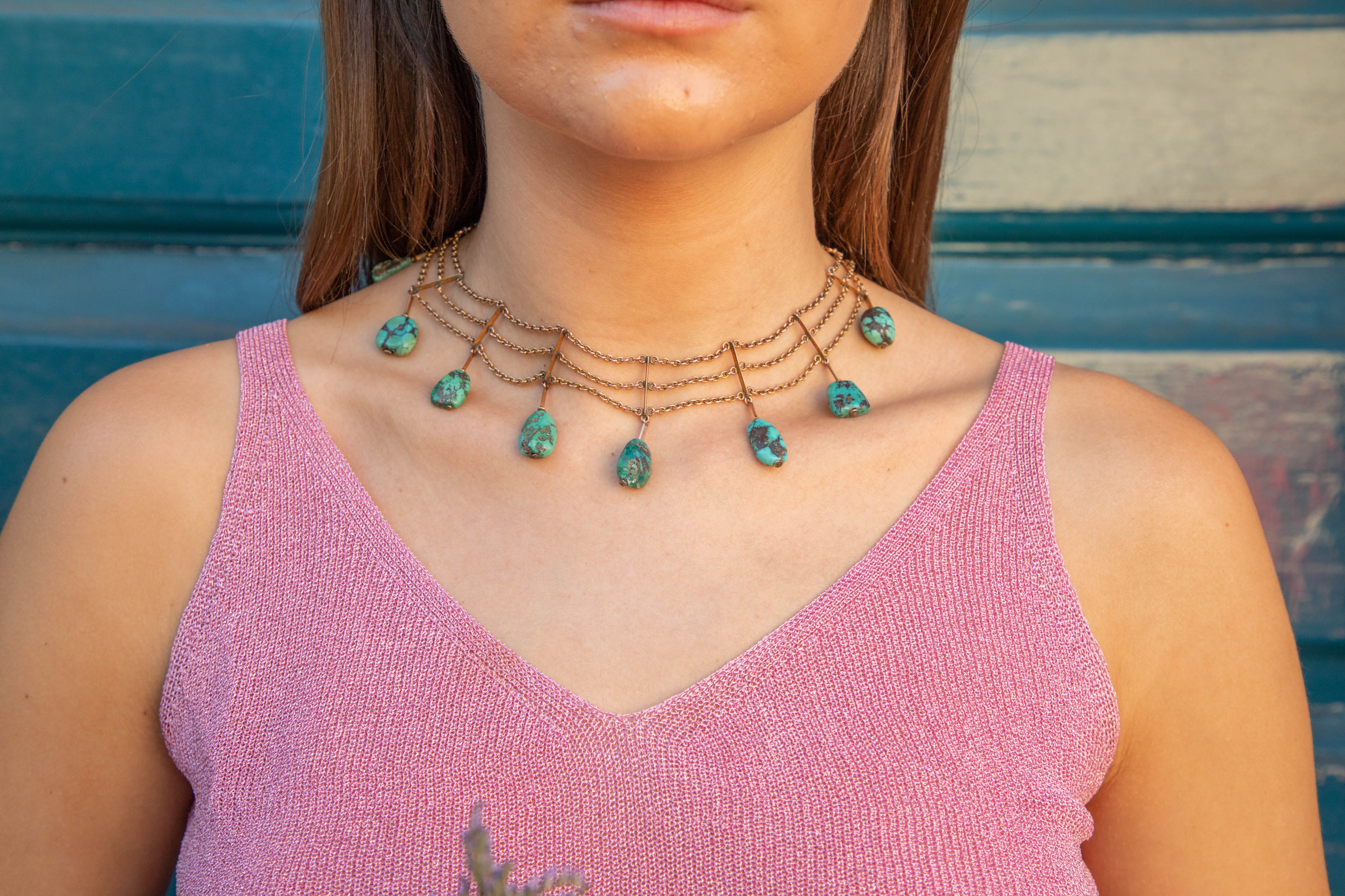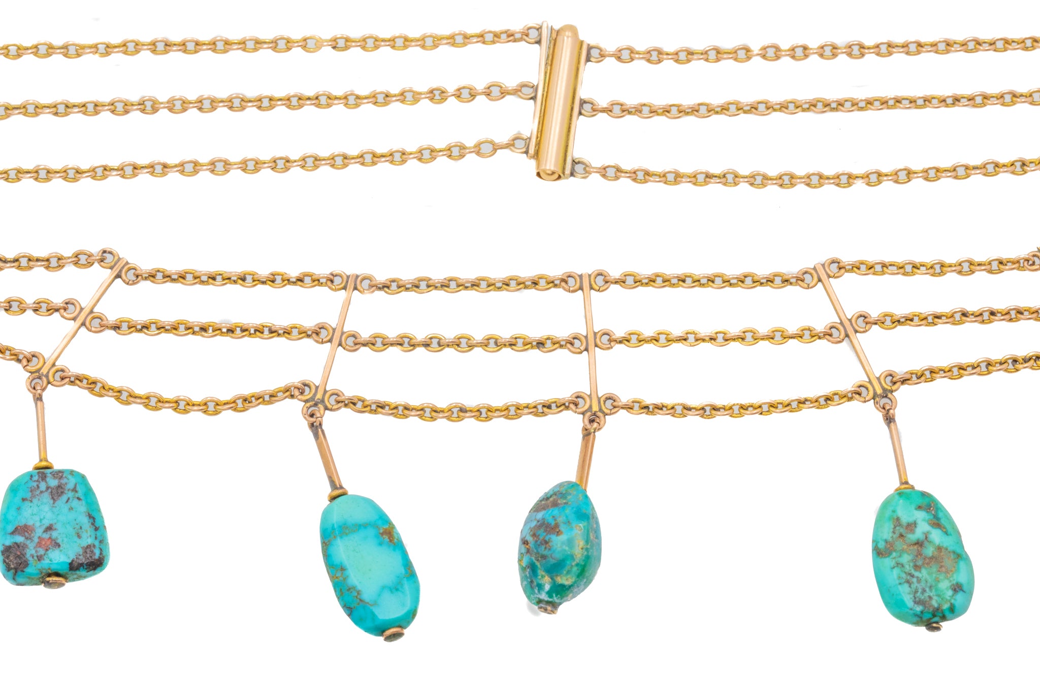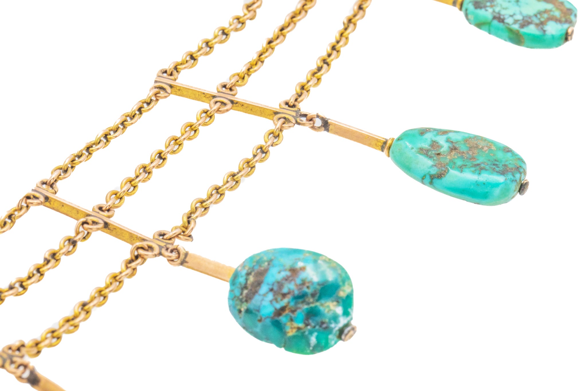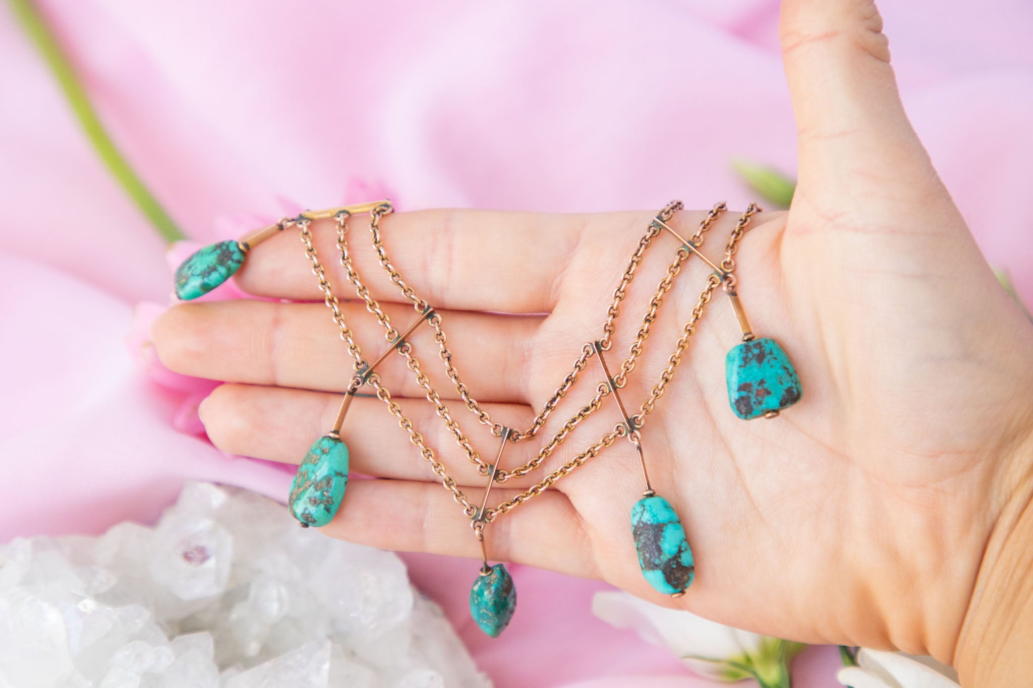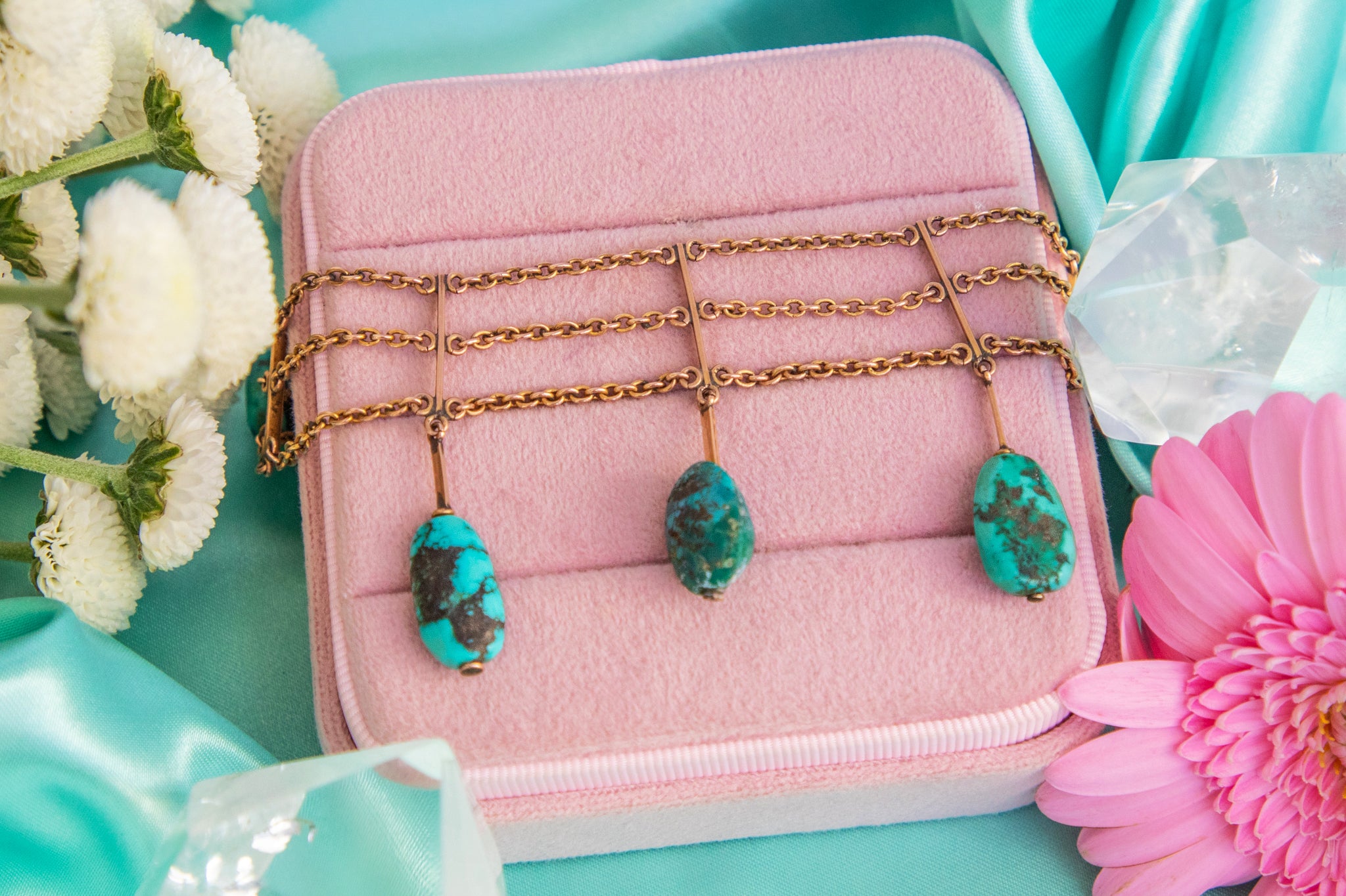 14.5インチ アンティーク 9ct ゴールド ターコイズ カラー ネックレス