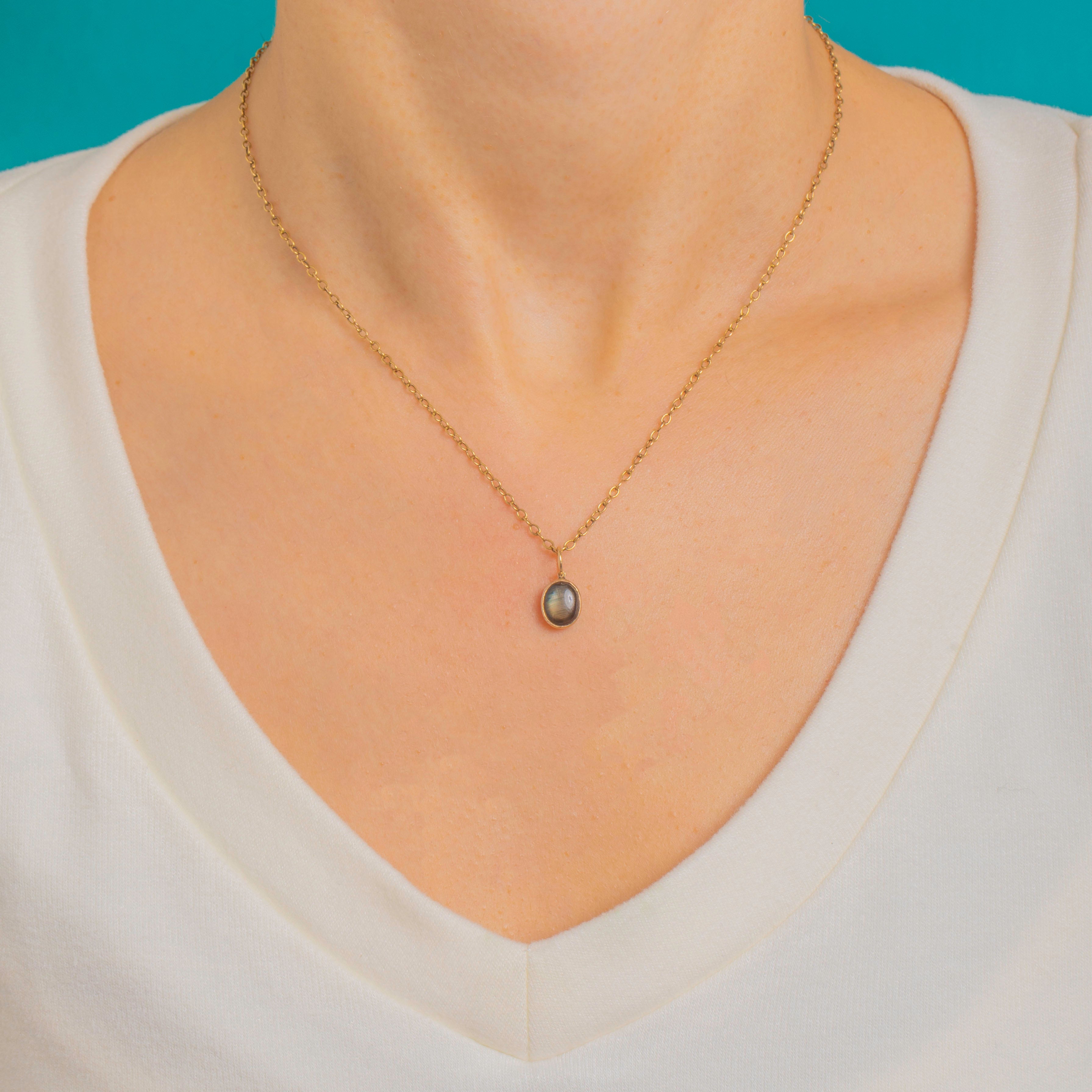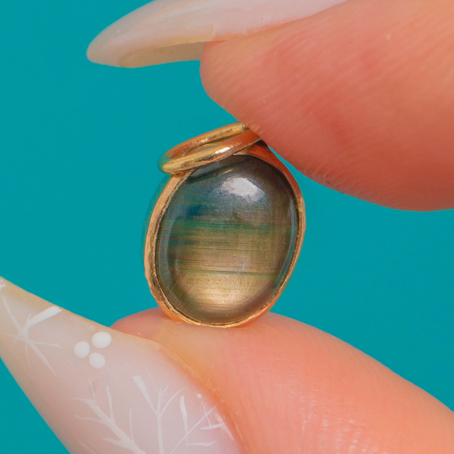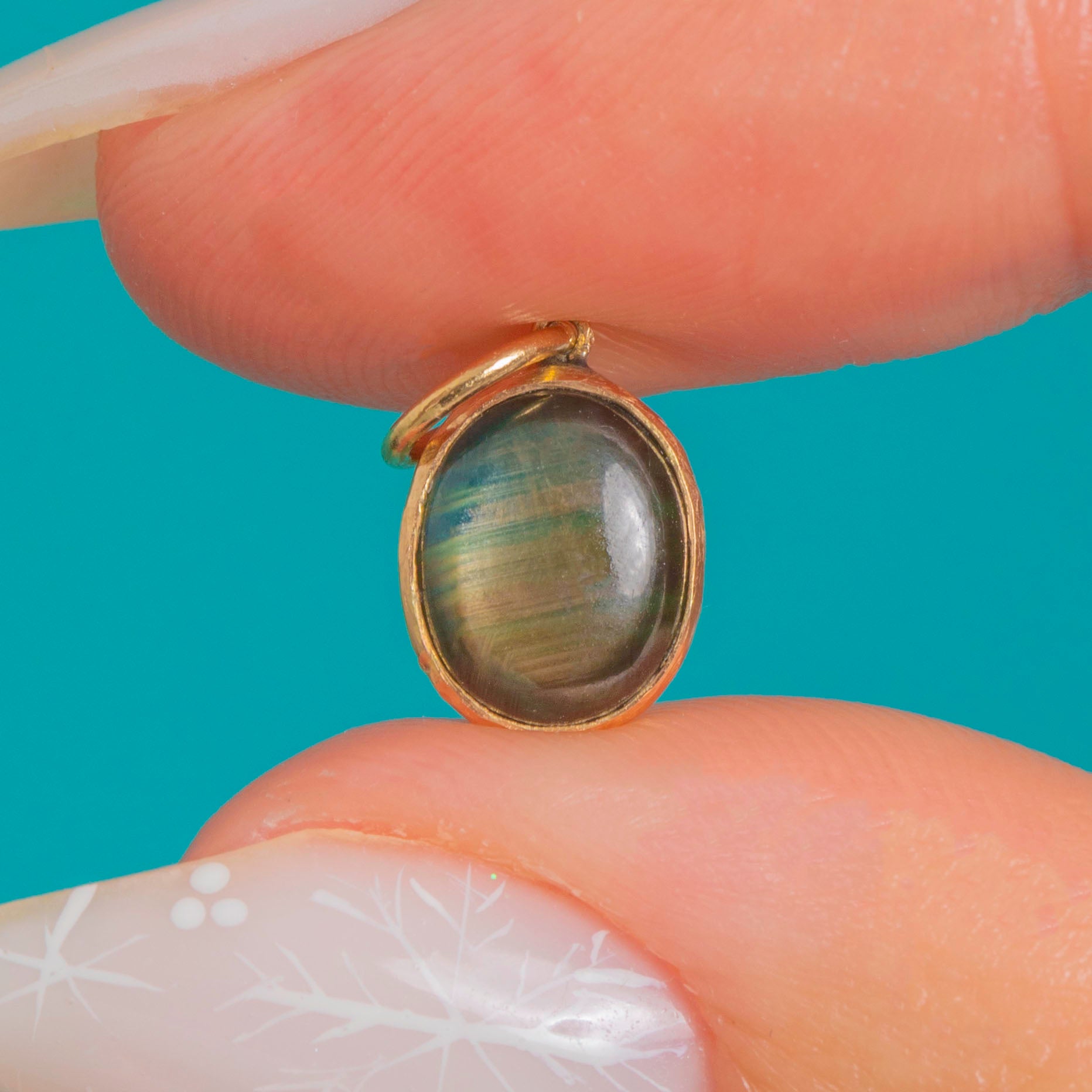 EXCELLENT: The Black Star Sapphire cabochon presents beautifully, with a crisp surface and lovely light play. The Gold setting and jump-ring are in excellent order with only minimal signs of wear. A well-cared-for piece, ready to wear straight away.