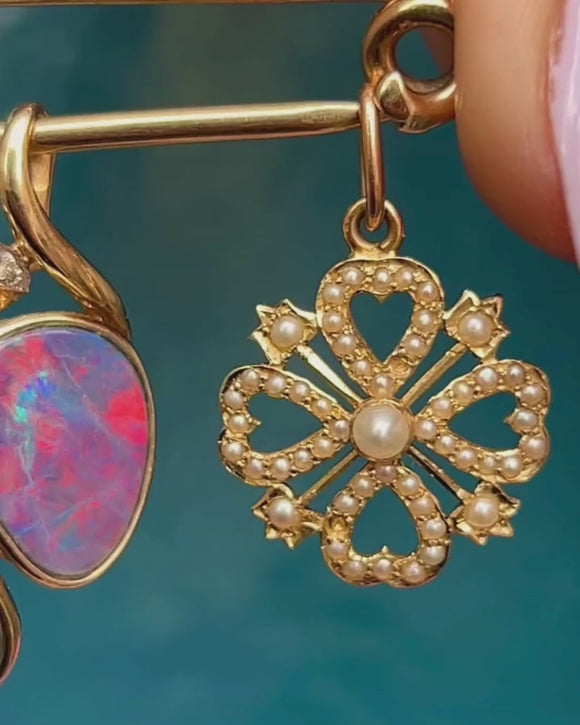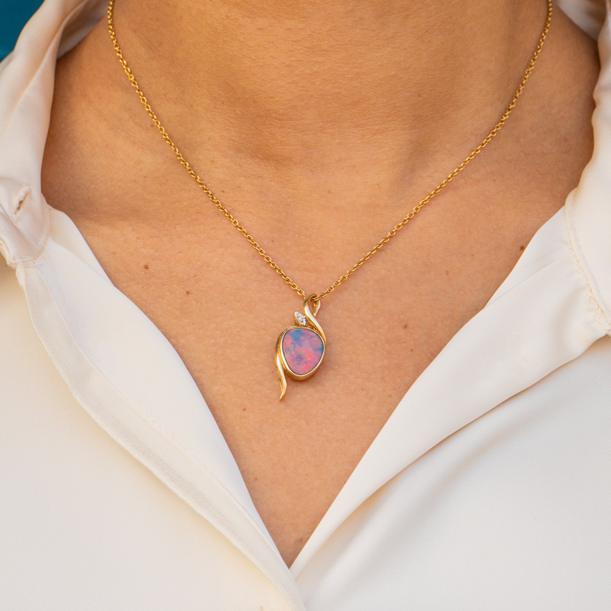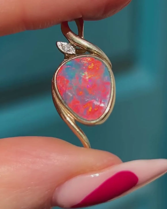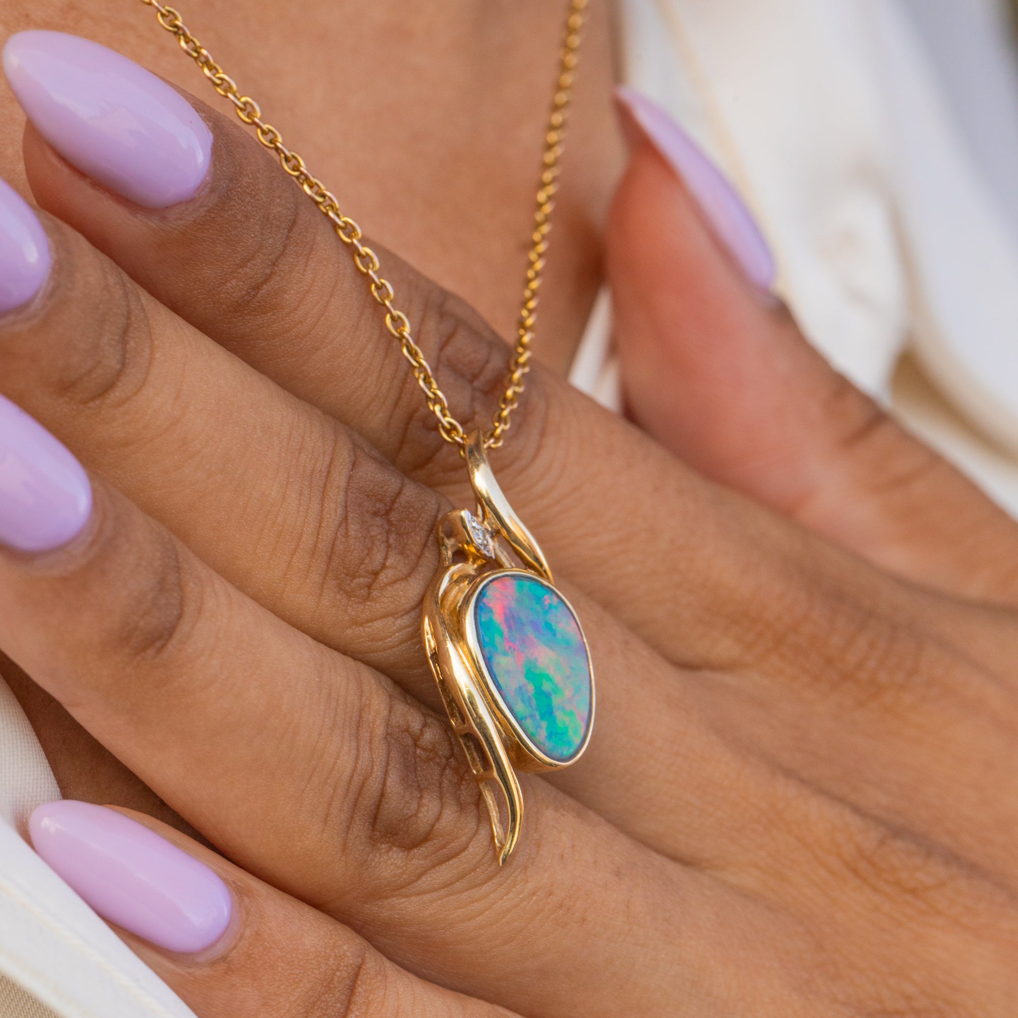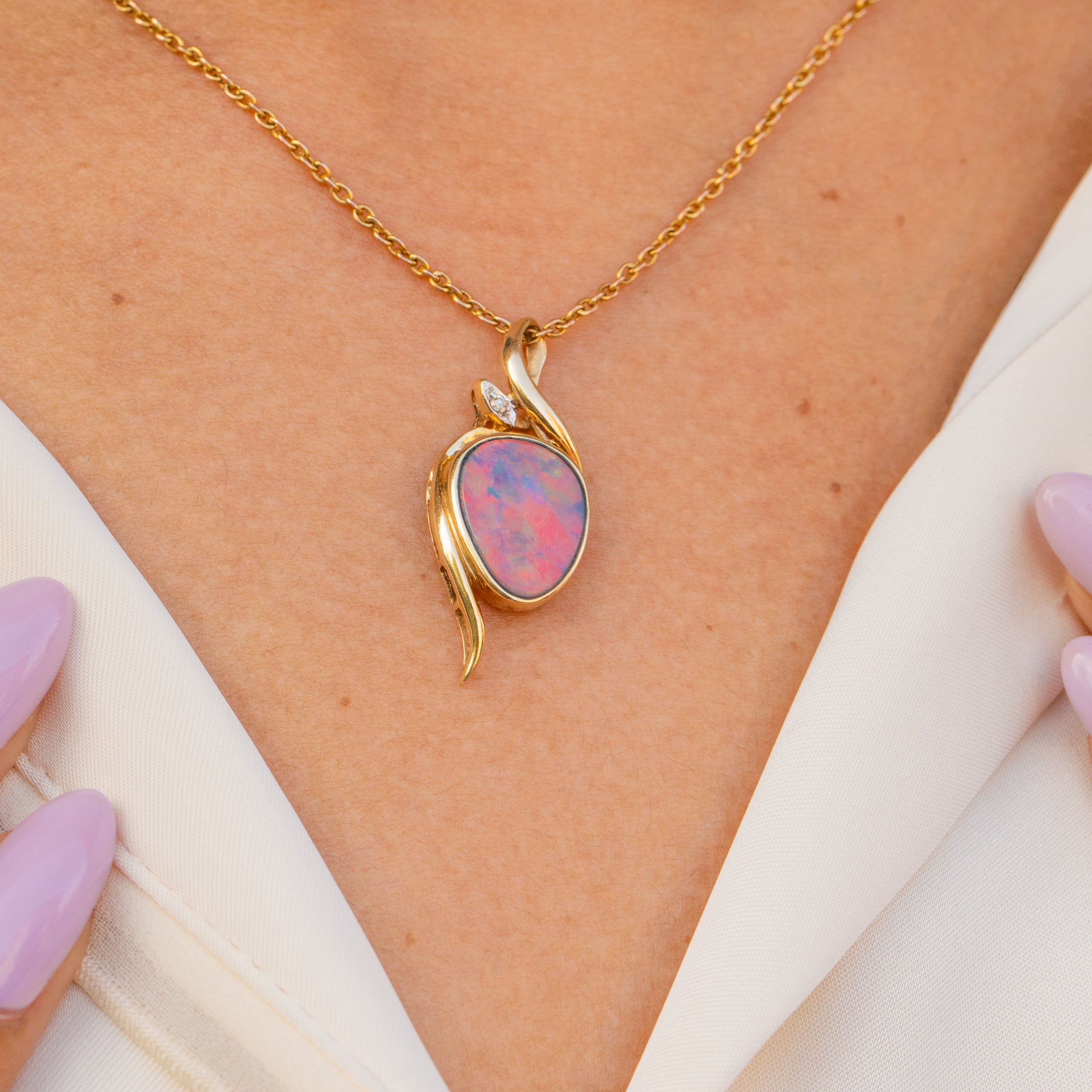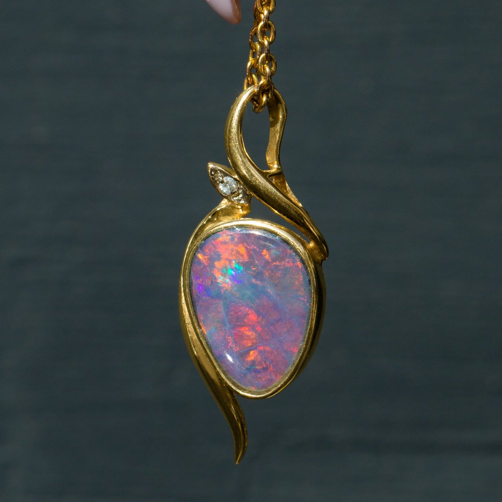14ct ゴールド ボルダーオパール ダイヤモンド ペンダント、1.65ct オパール