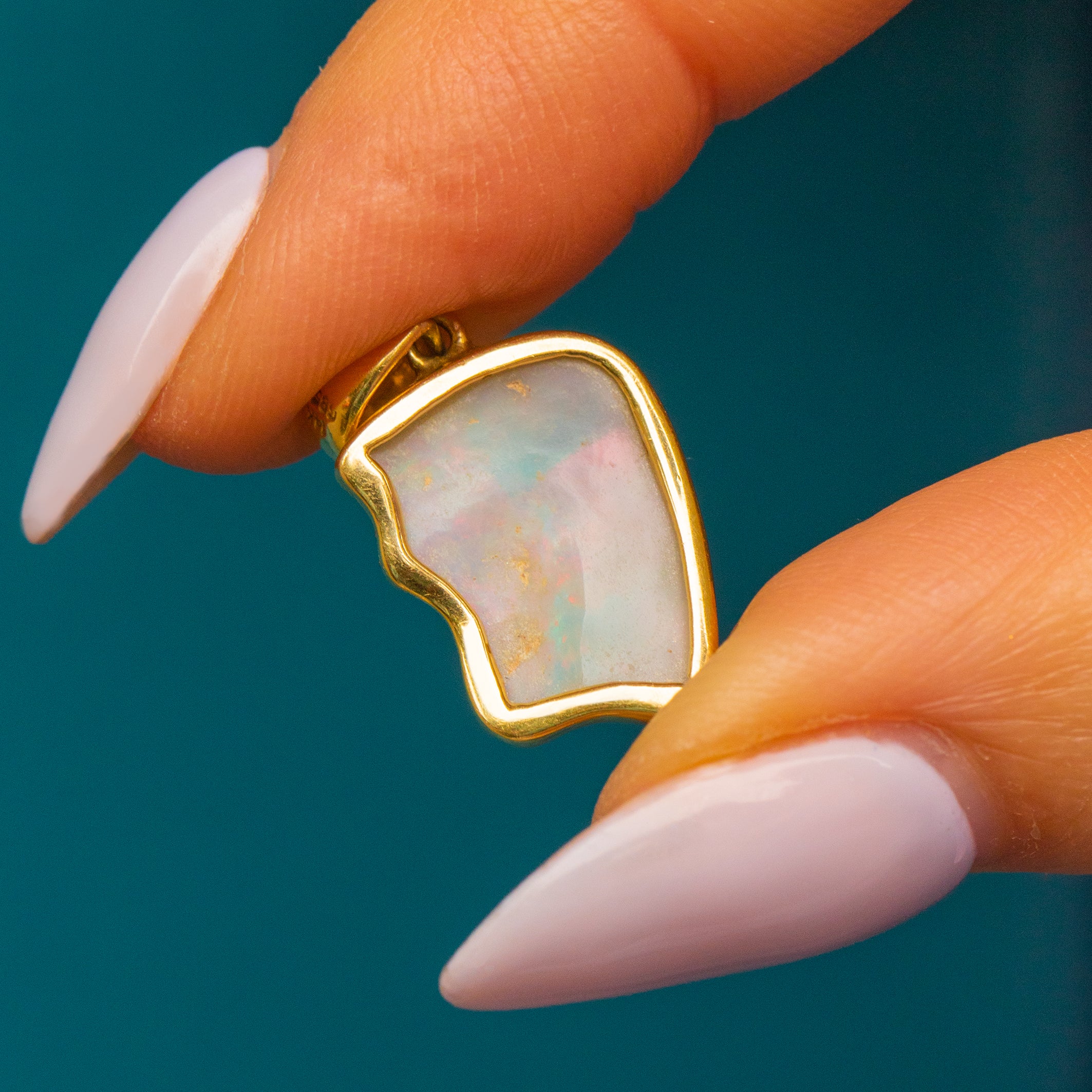 This 14ct Gold Opal pendant would make a unique addition to your jewellery collection. Praising the natural form of the Opal, her organic form is filled with a myriad of iridescent flashes, formed of every colour of the rainbow.