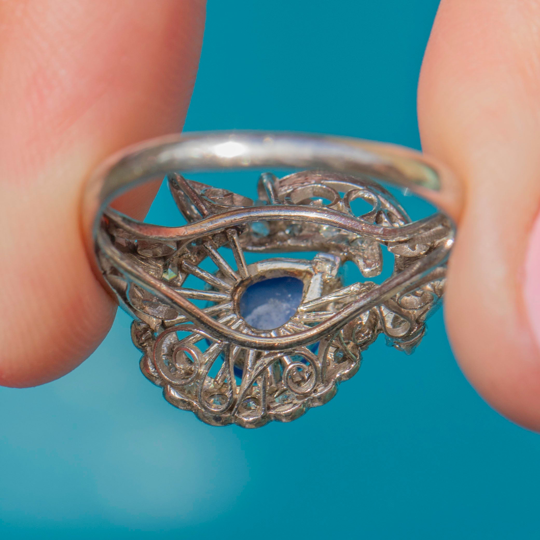MATERIALS: Tests as 14ct White Gold, Natural bright Blue Star Sapphire (0.55ct), Diamonds (0.35ct).