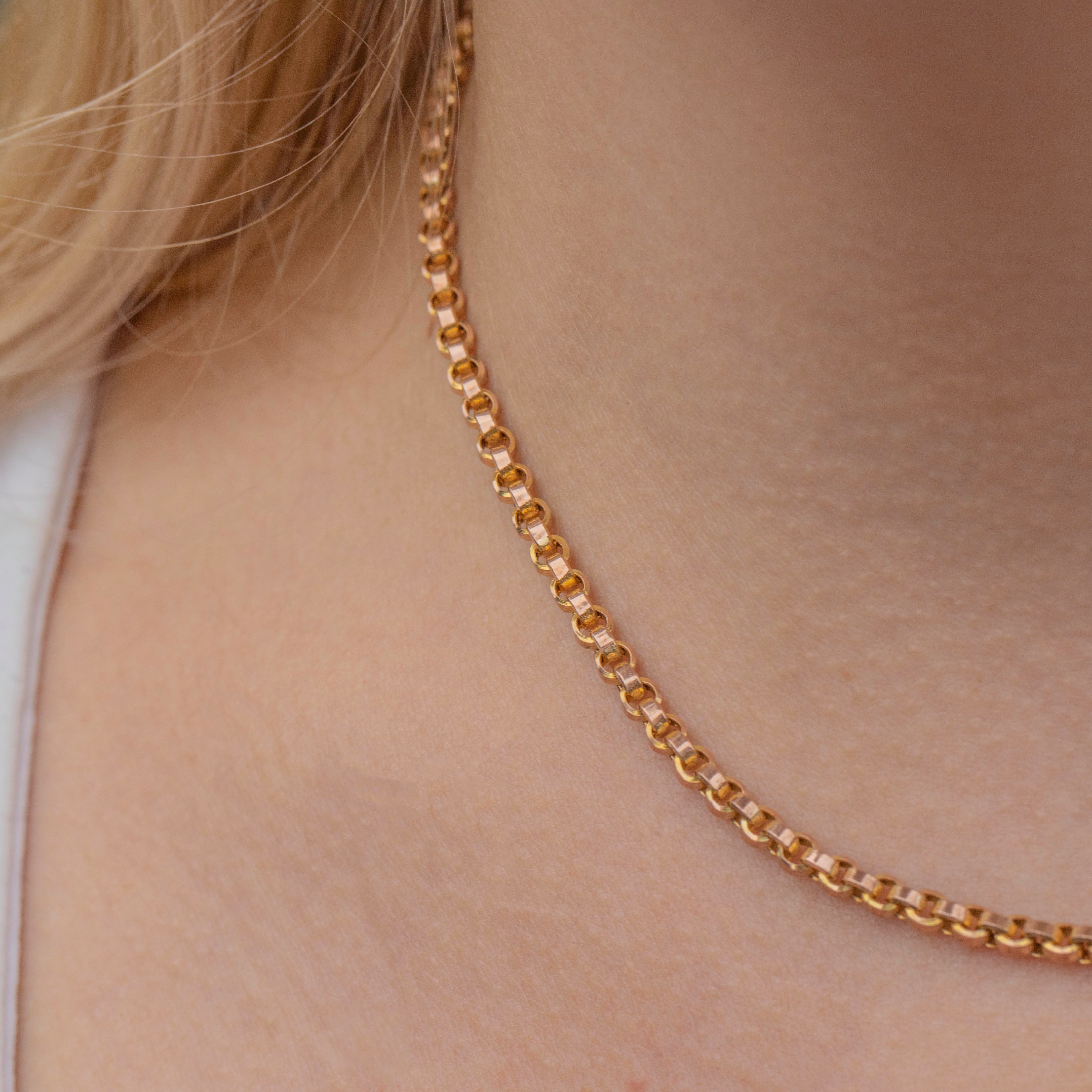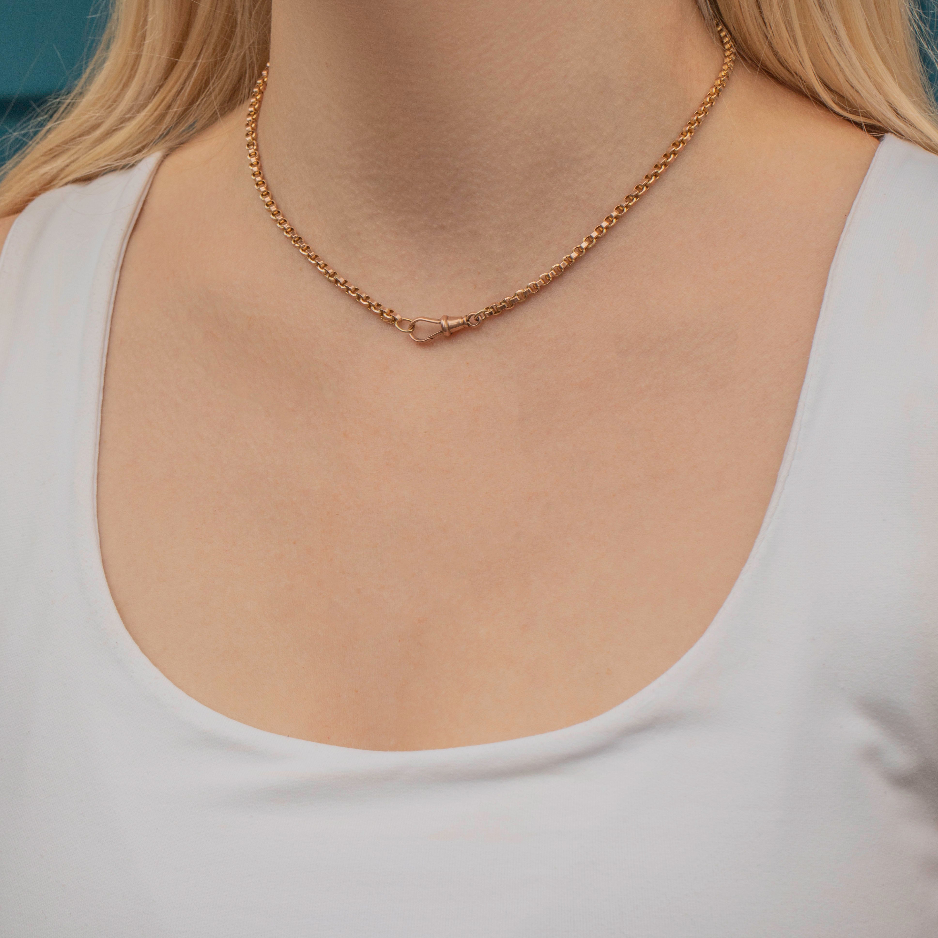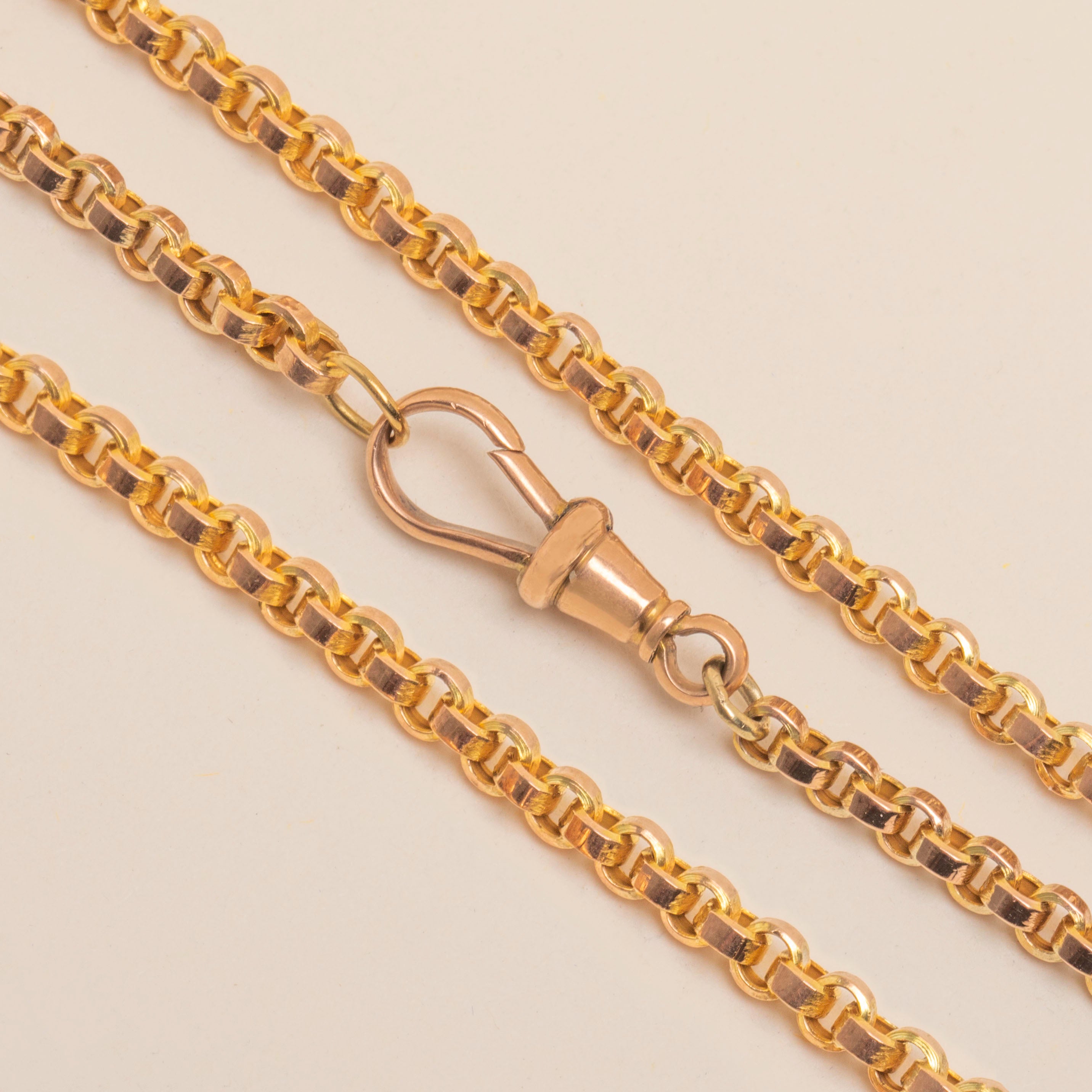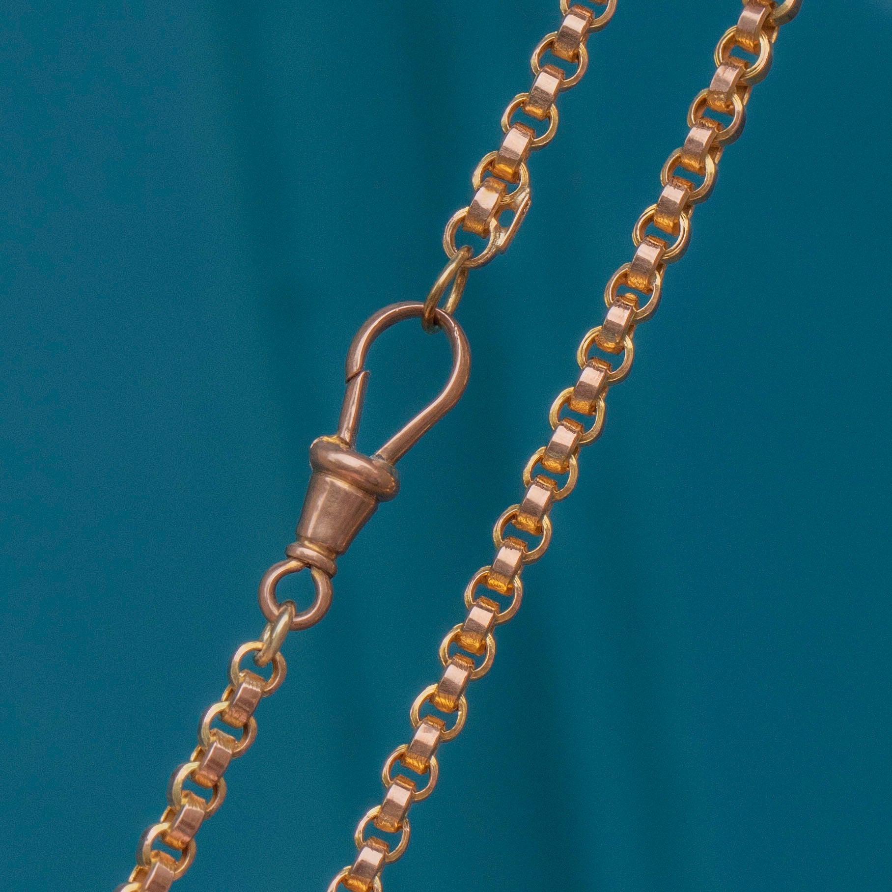This antique Gold Belcher chain is a staple piece of jewellery to have within your collection. Crafted from solid 9ct Gold throughout, this Victorian chain measures 15.5" long and will transcend from day to night styles with ease.
