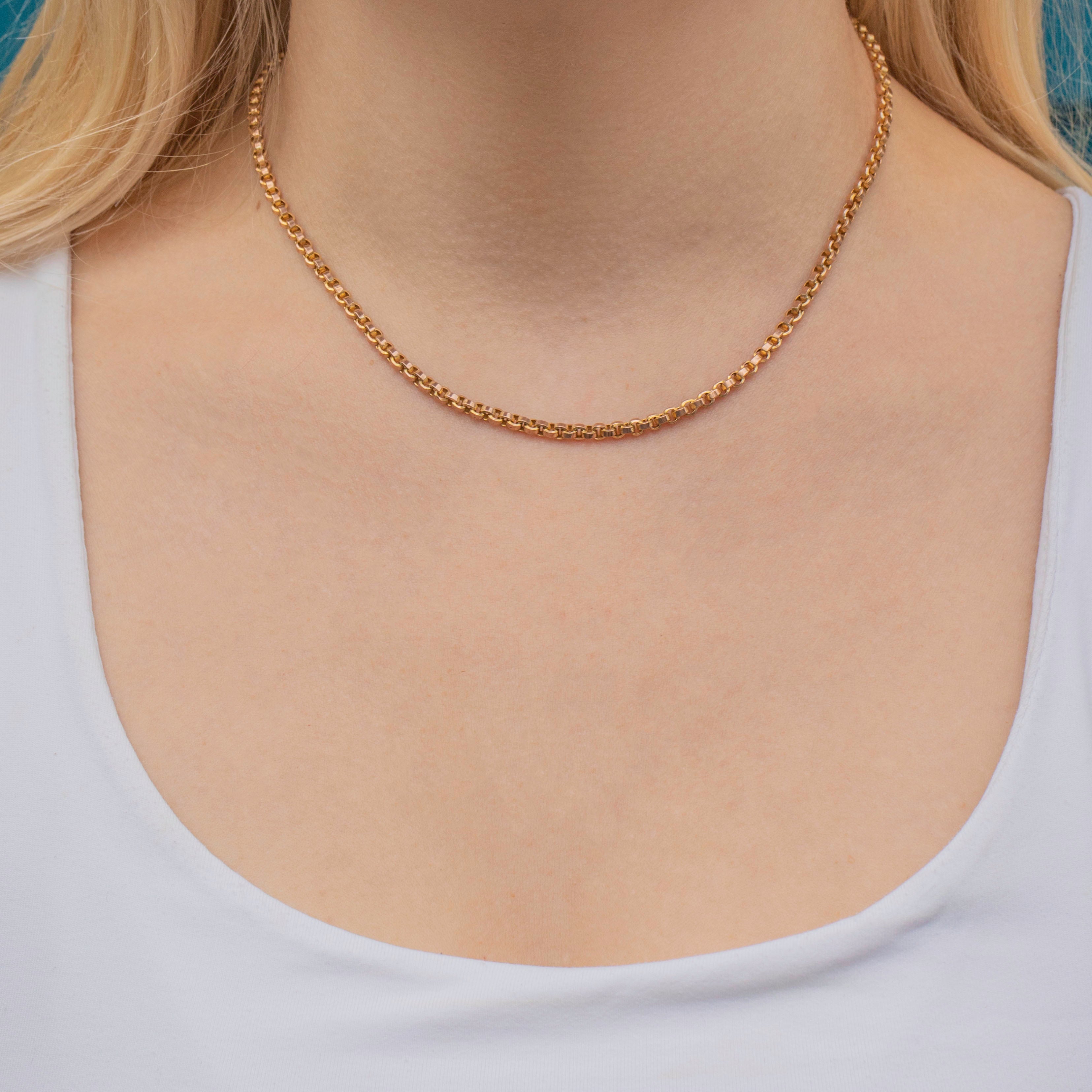 EXCELLENT. This antique Gold Belcher chain is in impeccable condition throughout. A lovely deep tone of Gold, this chain will complement all complexions and skin tones and can easily be matched with an antique Gold pendant. All of the links are firm and secure, so you can wear this piece confidently throughout your day.