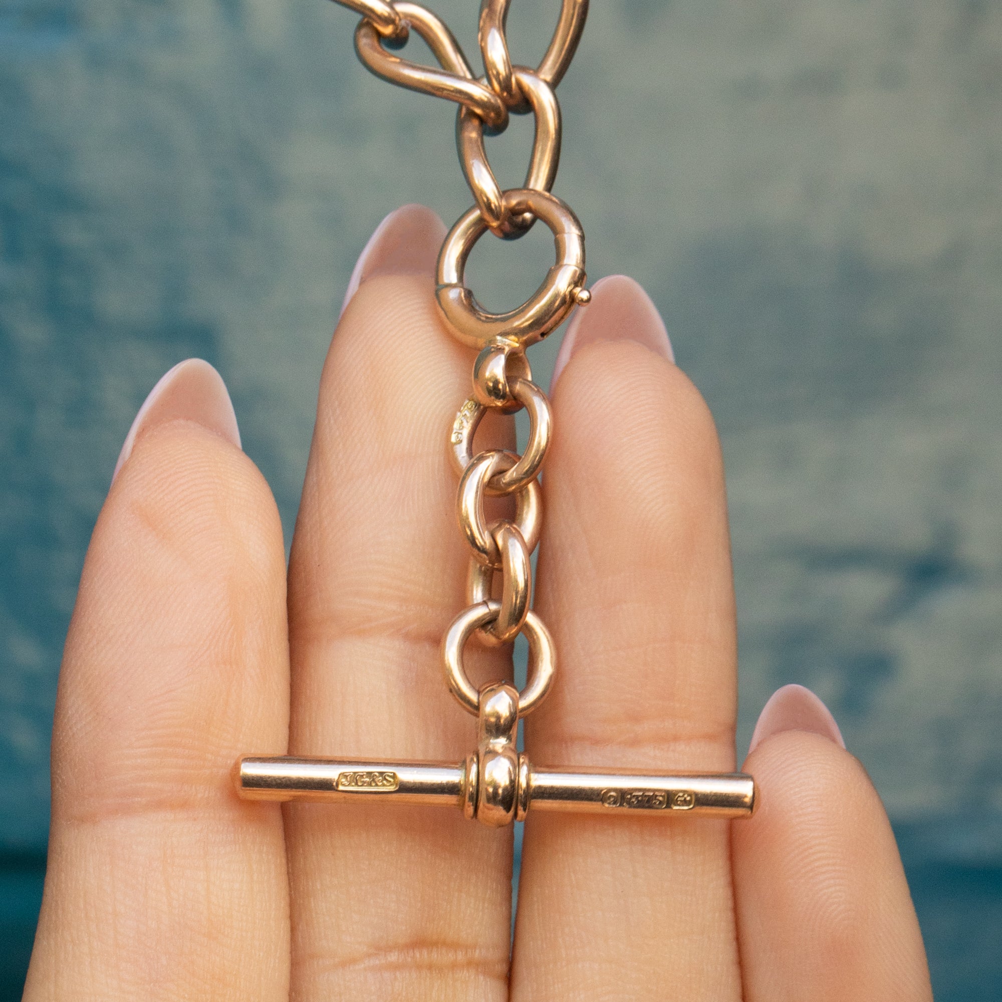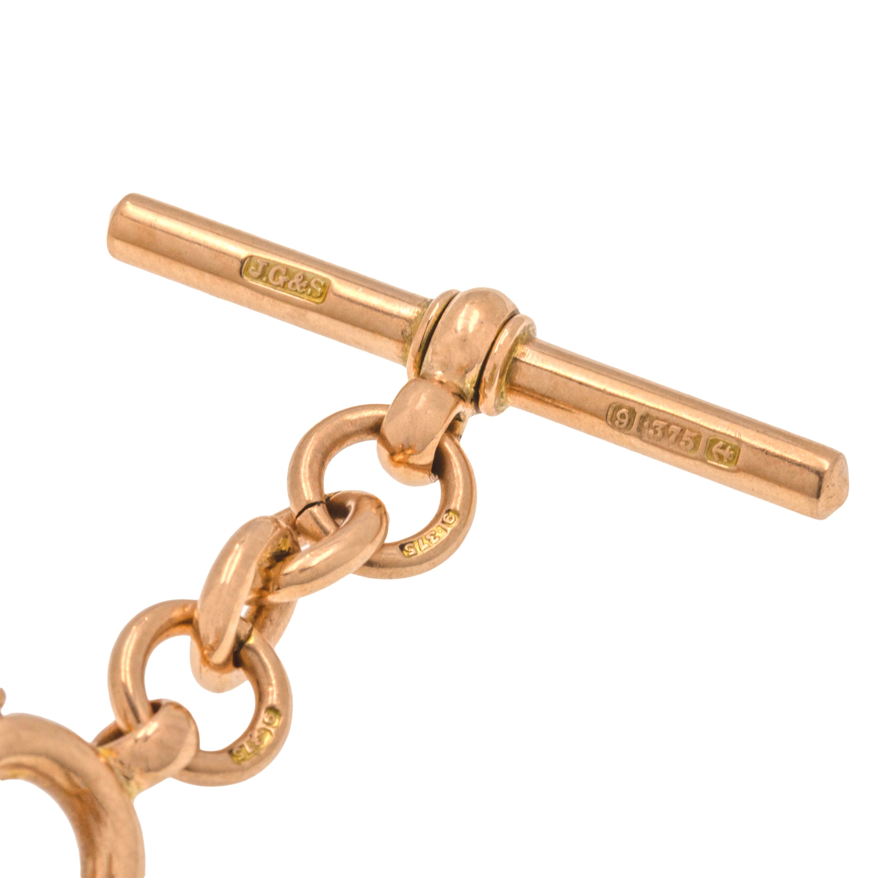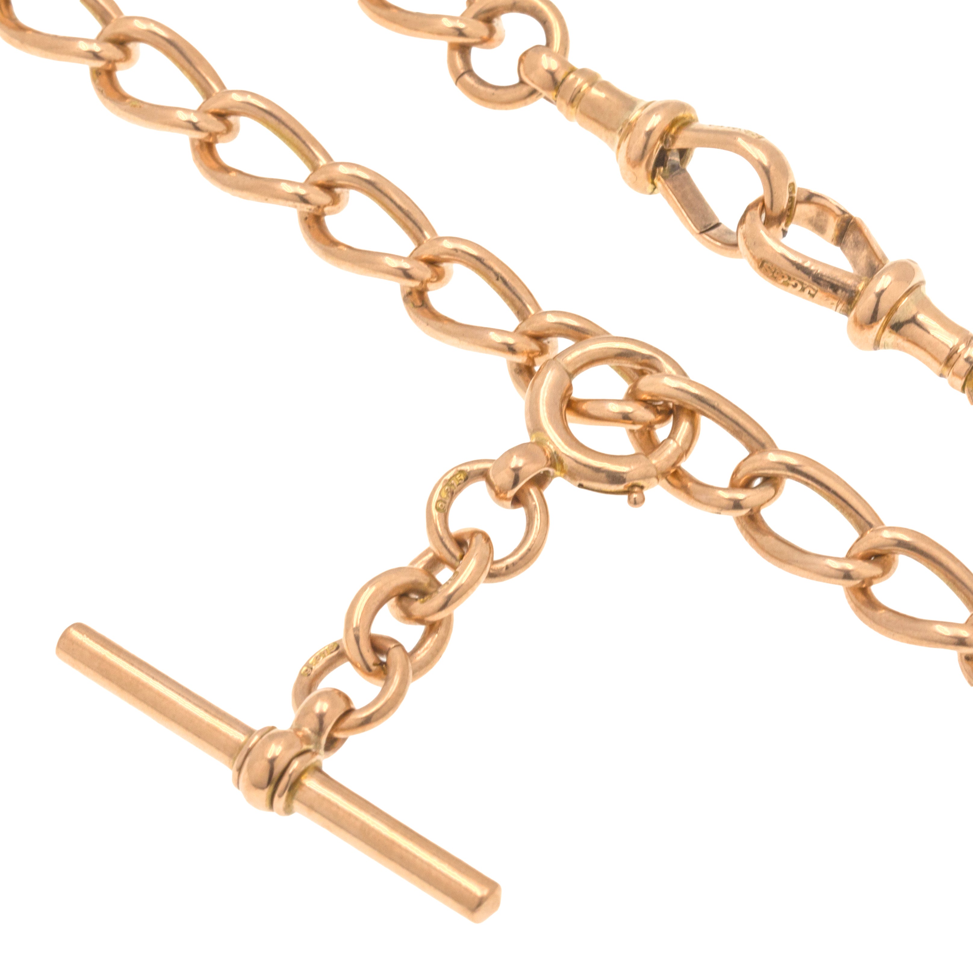 15.5インチ アンティーク 9ct ゴールド アルバートチェーン、マッチング ドッグクリップ、取り外し可能なTバー、36.9g