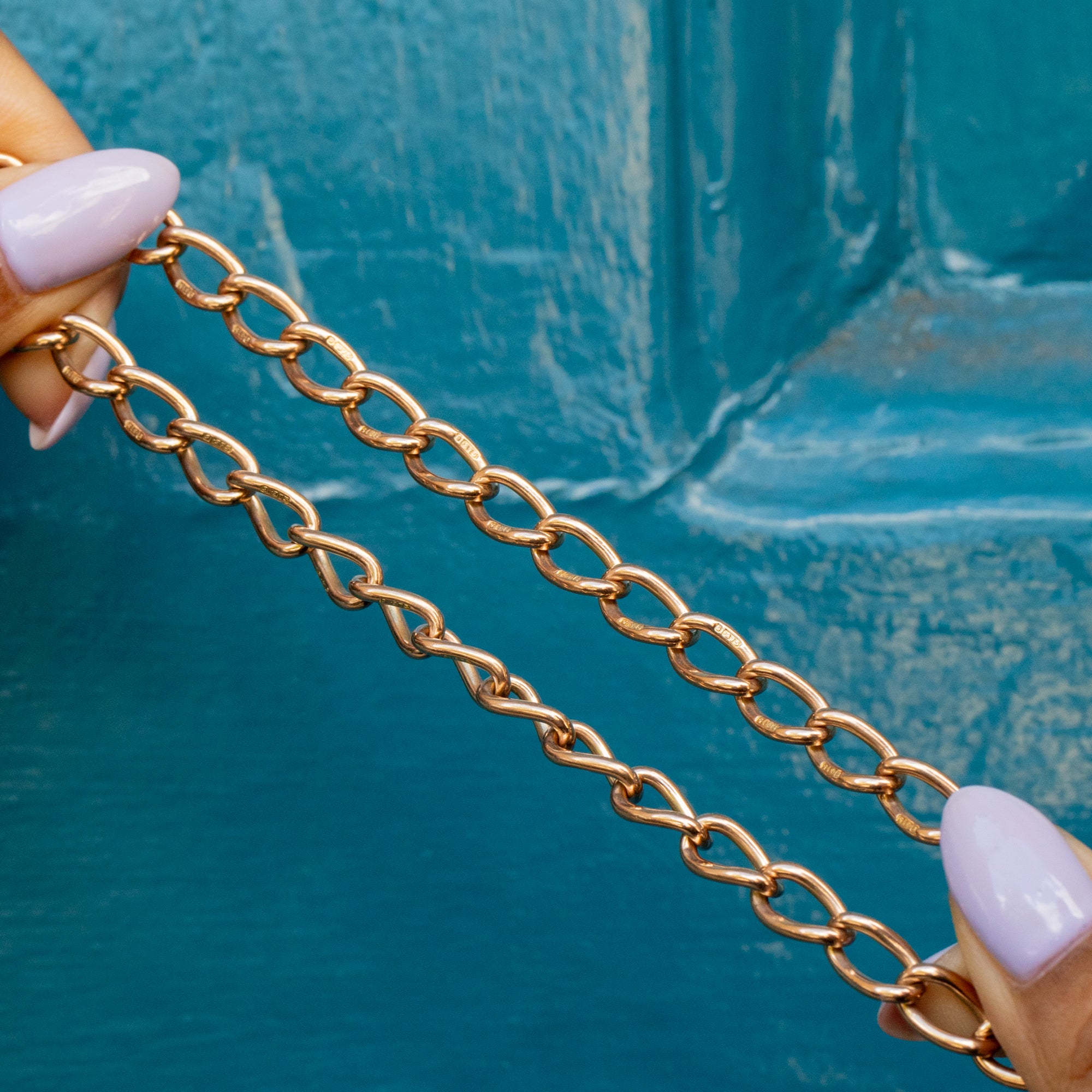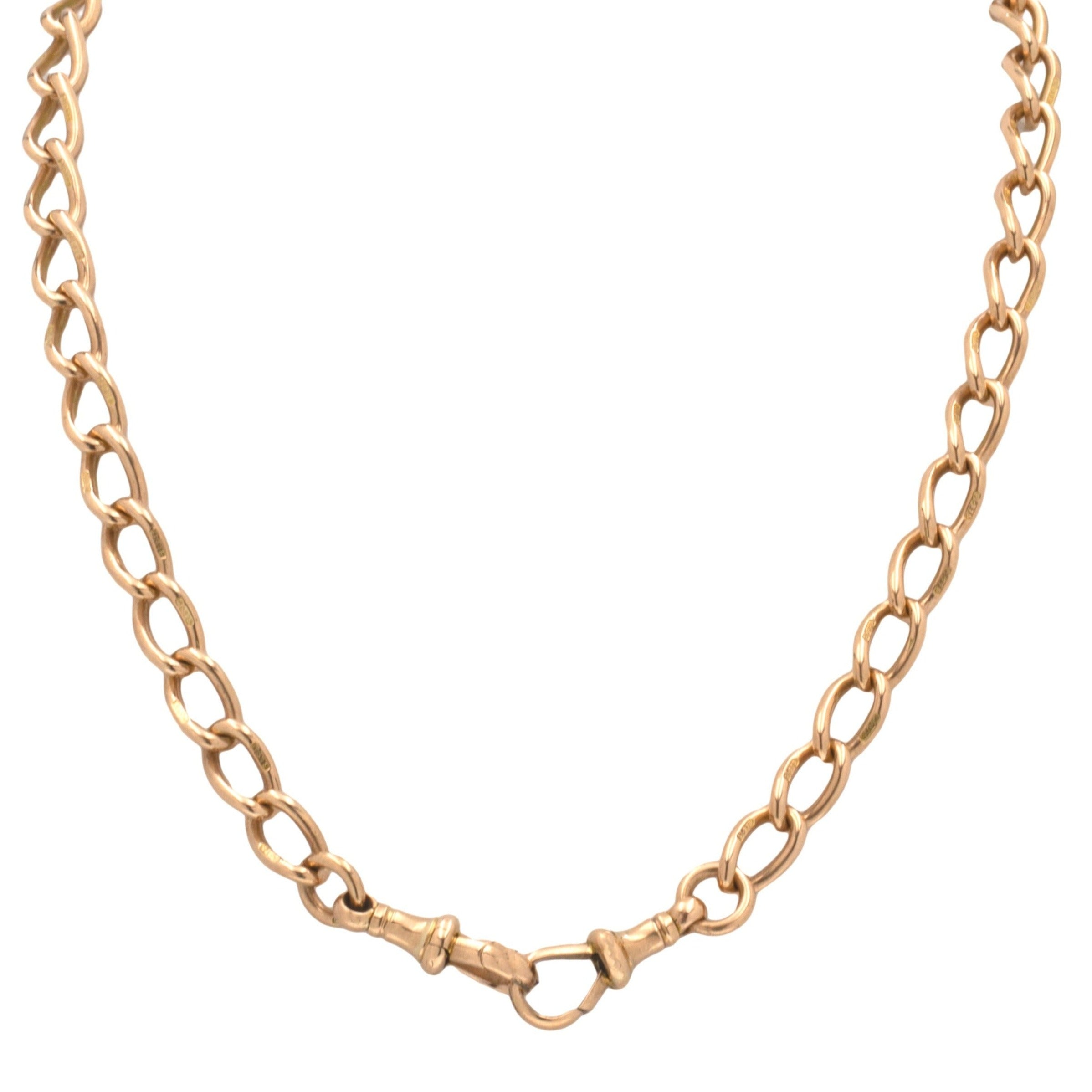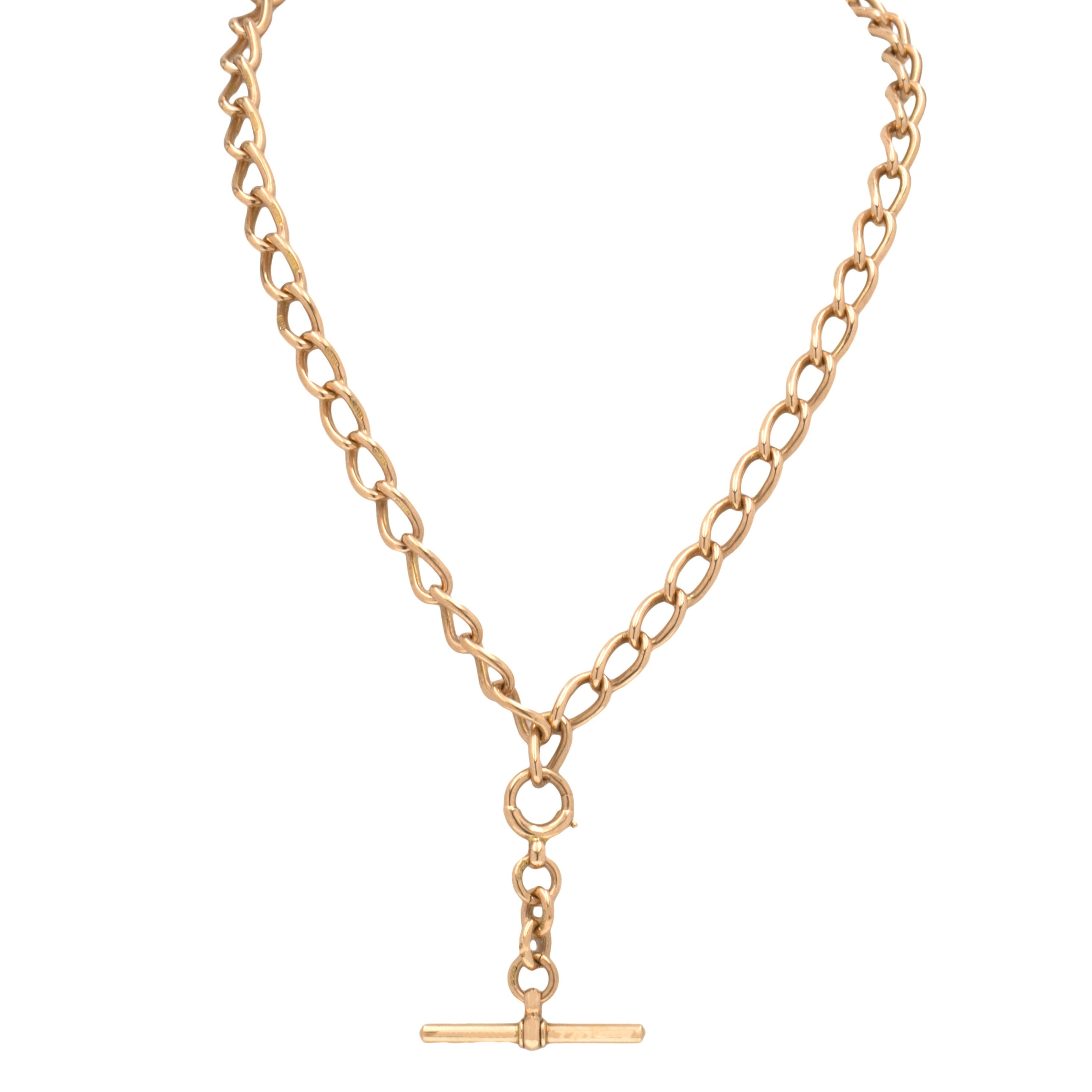 15.5インチ アンティーク 9ct ゴールド アルバートチェーン、マッチング ドッグクリップ、取り外し可能なTバー、36.9g