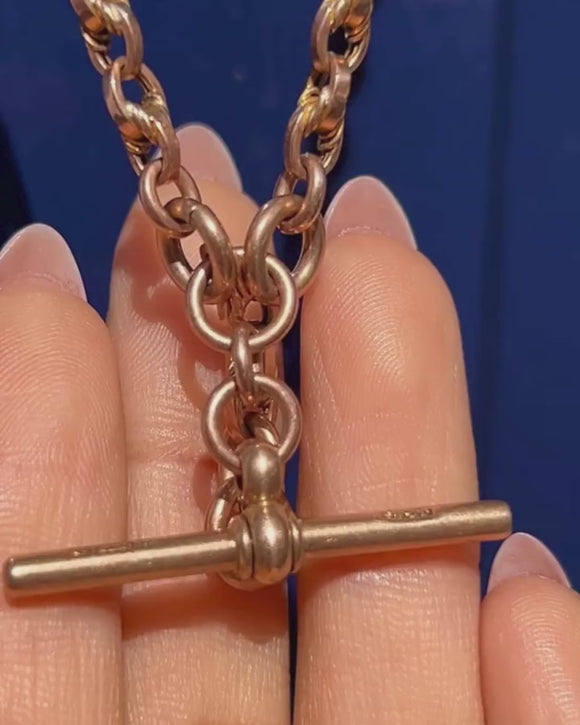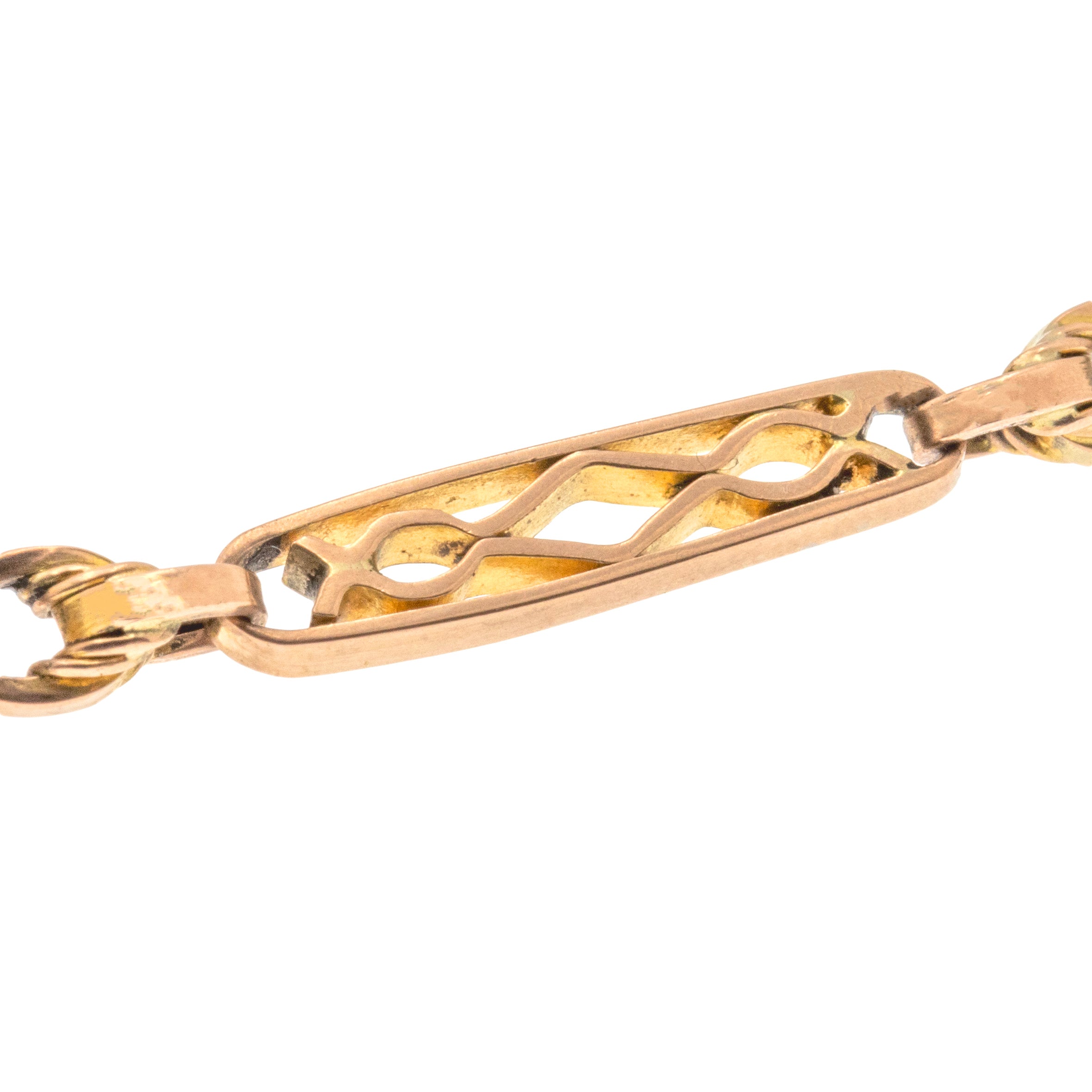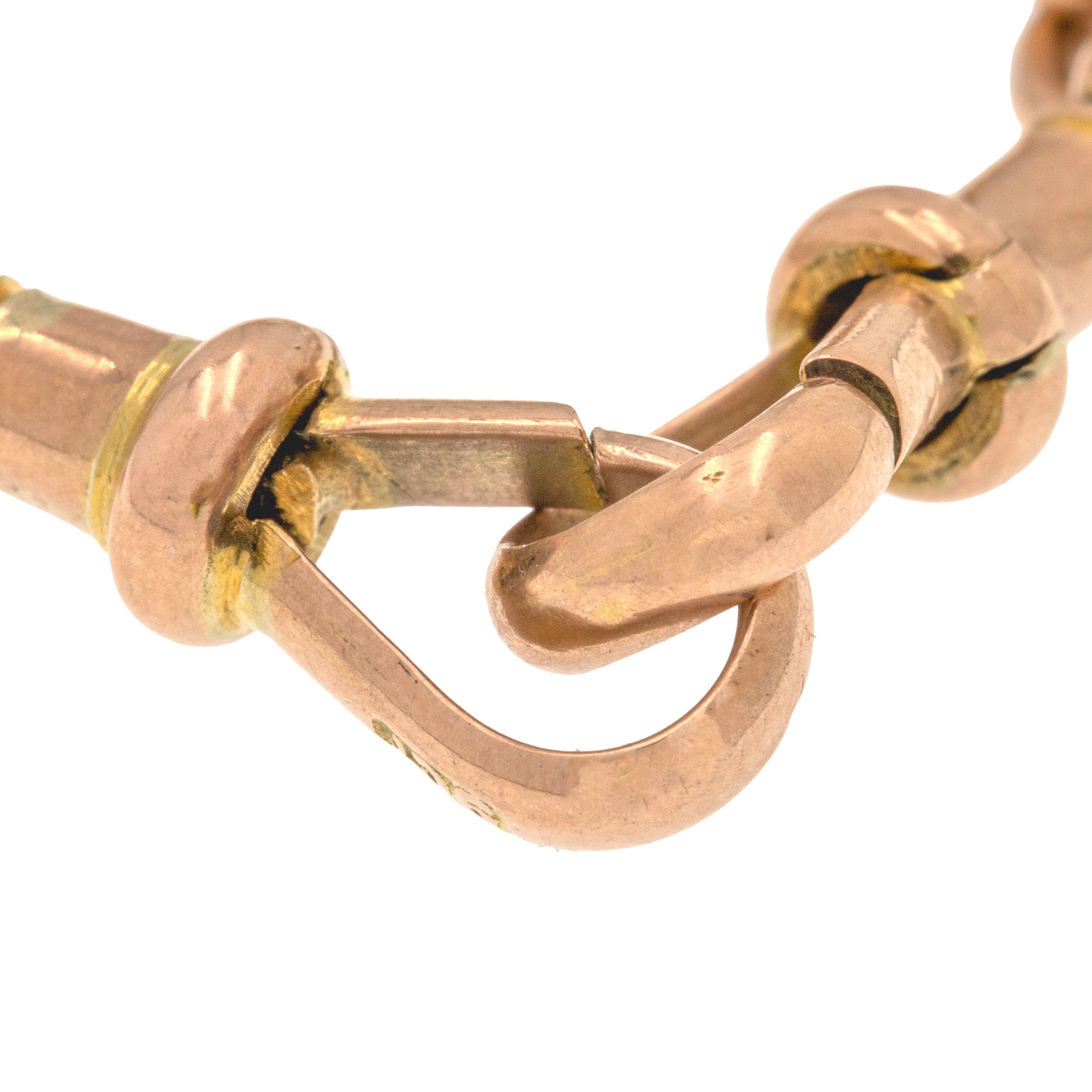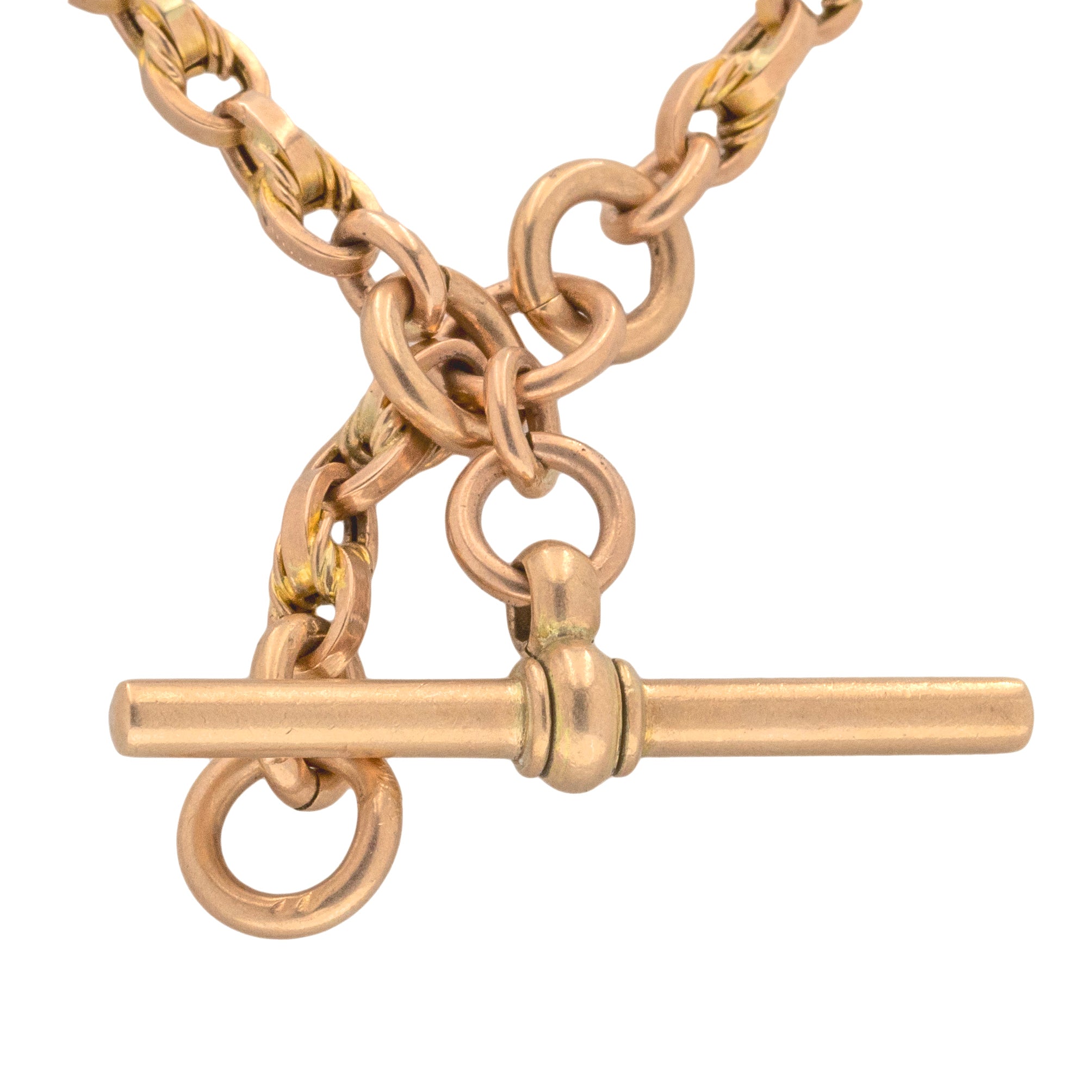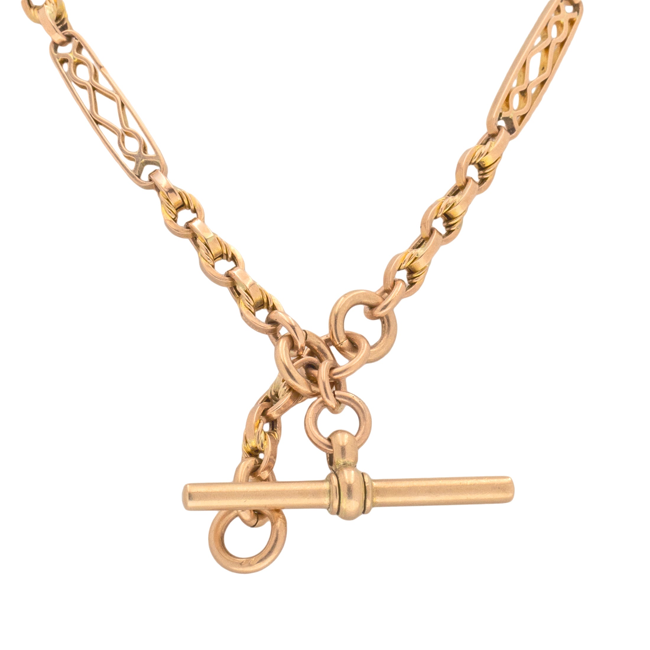 15.5インチ アンティーク 9ct ゴールド ファンシー ラバーズノット リンク アルバートチェーン、マッチング ドッグクリップ、19g