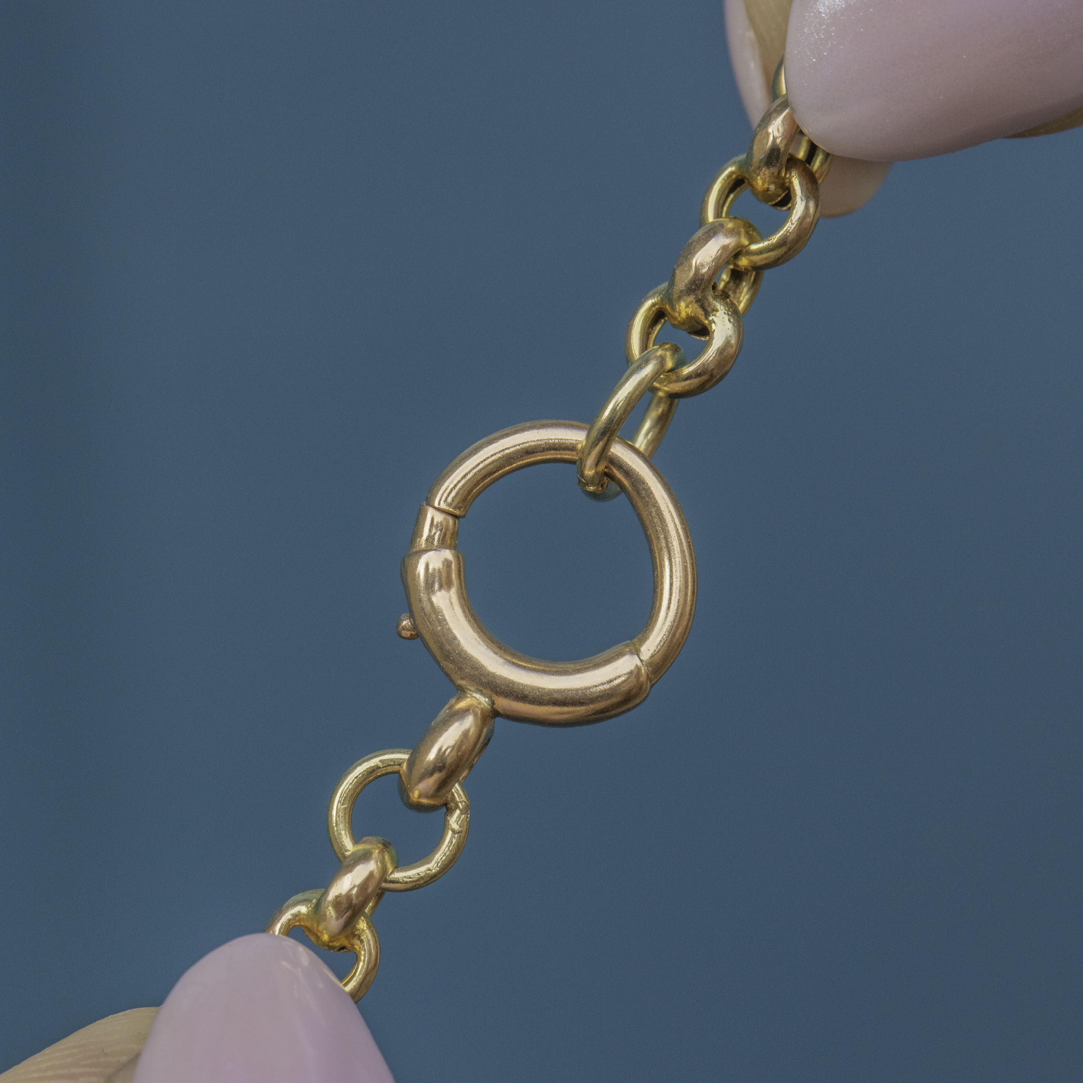 At 15" long, this belcher chain is the perfect staple piece to add to your jewellery collection. Victorian Gold chains are characterised by their versatility, and she is no exception! Suitable to be worn alone, stacked with other chains, or with a charm suspended from the large bolt-ring, this antique Gold chain is perfect for every season.