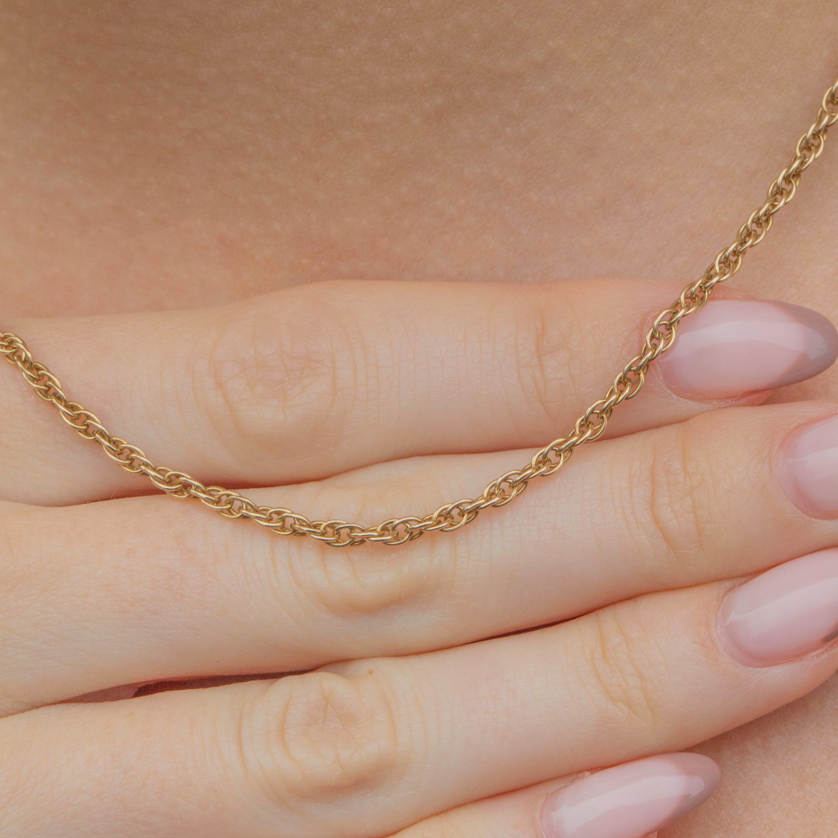 Prince of Wales chains are characterised by their fine interlocking twisted links, and will bring effortless style to any attire. This versatile vintage Gold chain is perfect for suspending your favourite charms or pendants, or flaunt her alone for a chic minimal look!