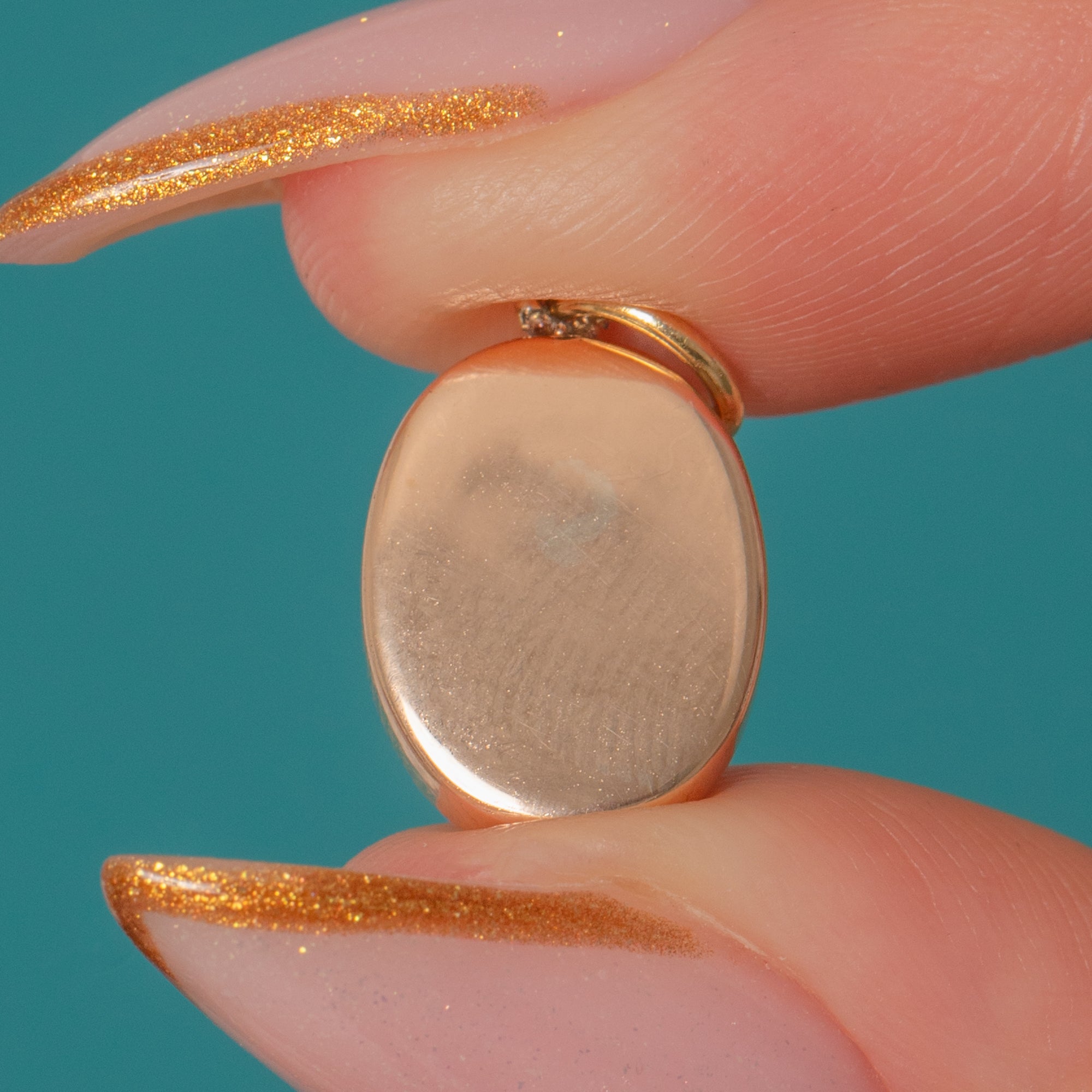This mesmerising late Victorian charm features a natural Cat’s Eye Chrysoberyl, set in a smooth 15ct Gold bezel. The stone displays a striking chatoyancy — that rare, silky band of light that moves gracefully across its surface like the slit pupil of a cat’s eye.