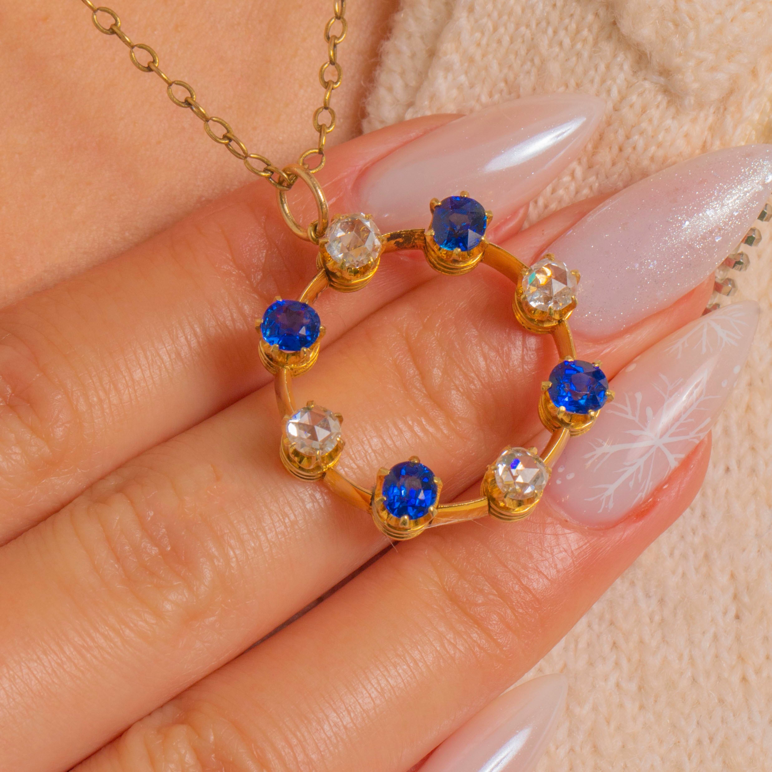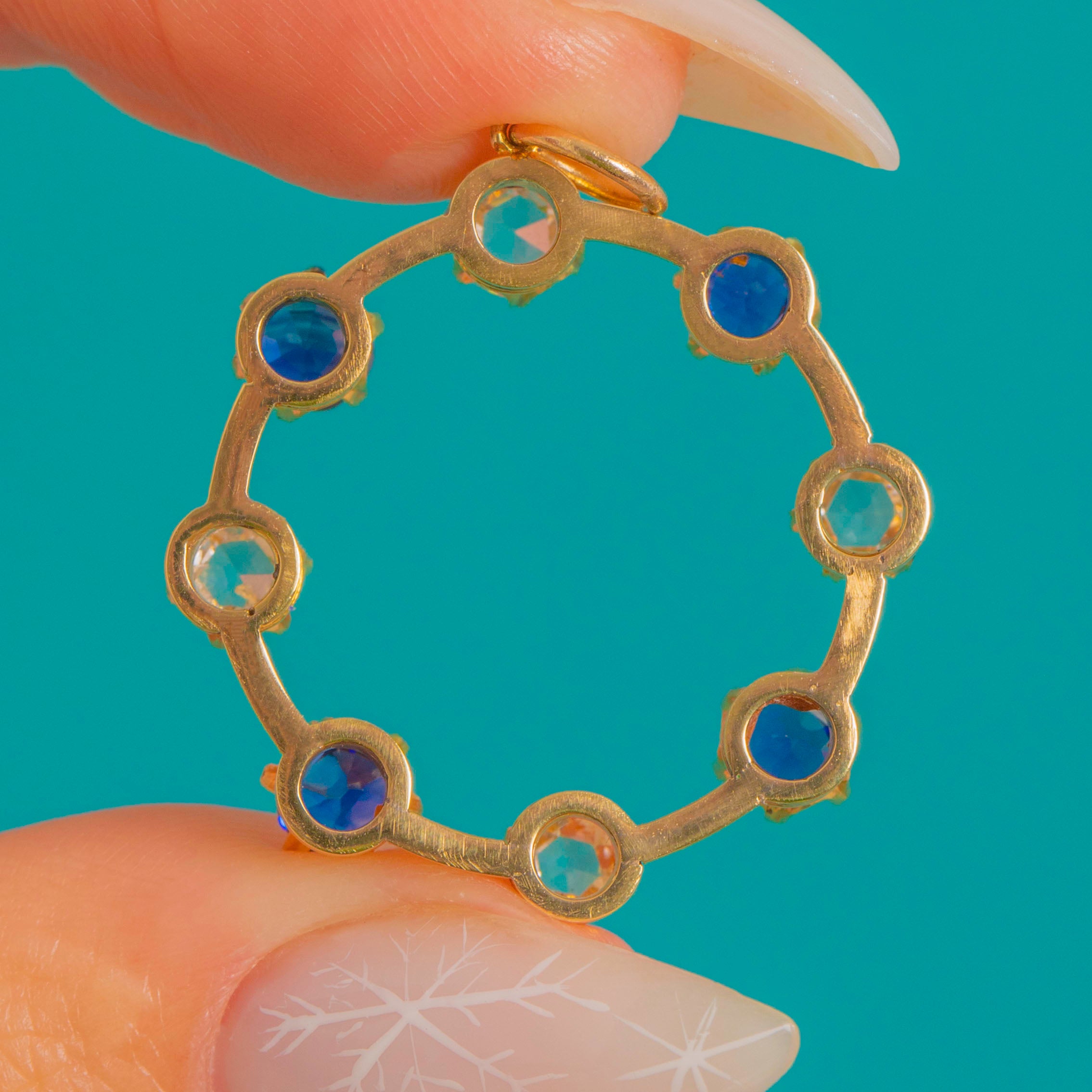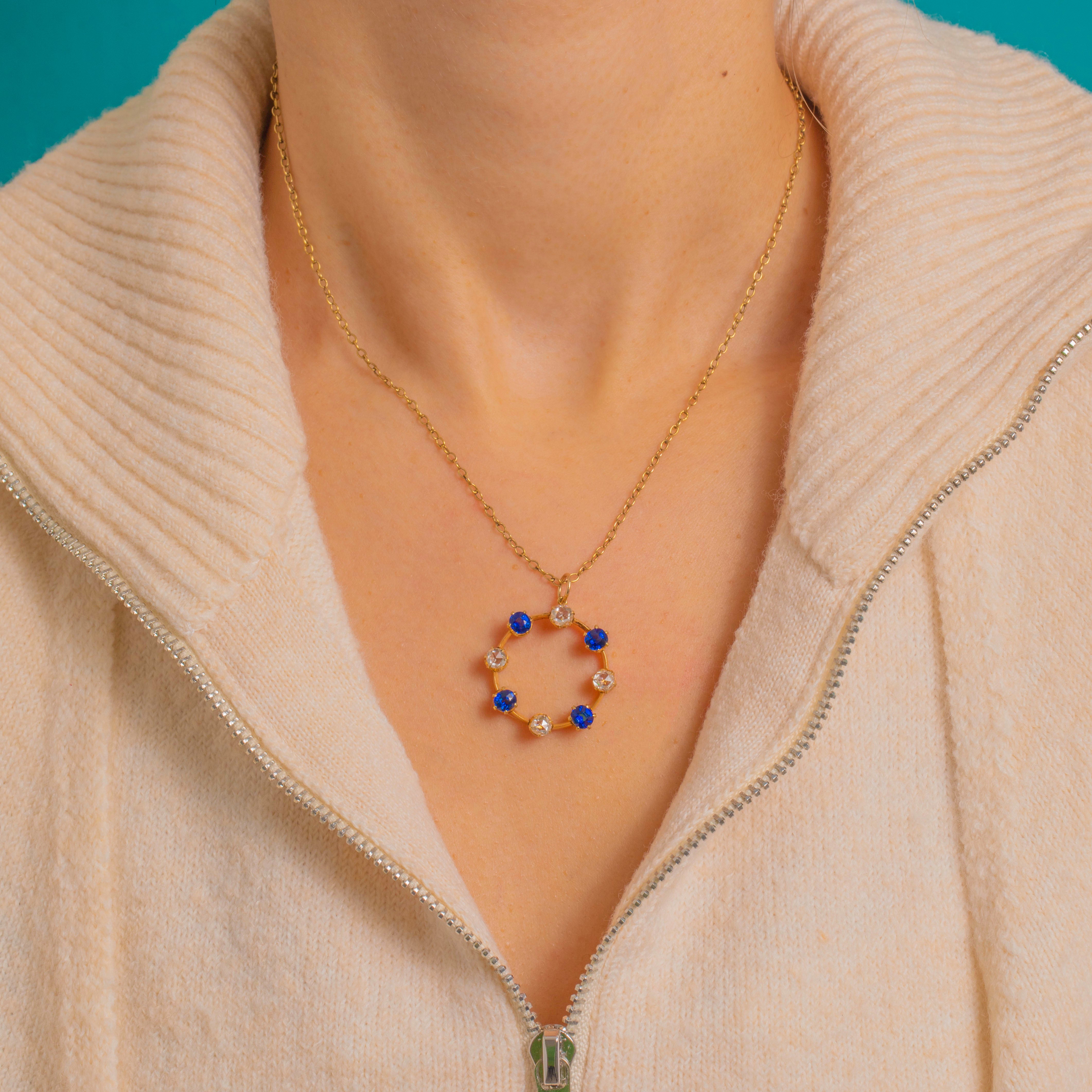 15ctゴールド ダイヤモンド ブルースピネル ロンデル ペンダント