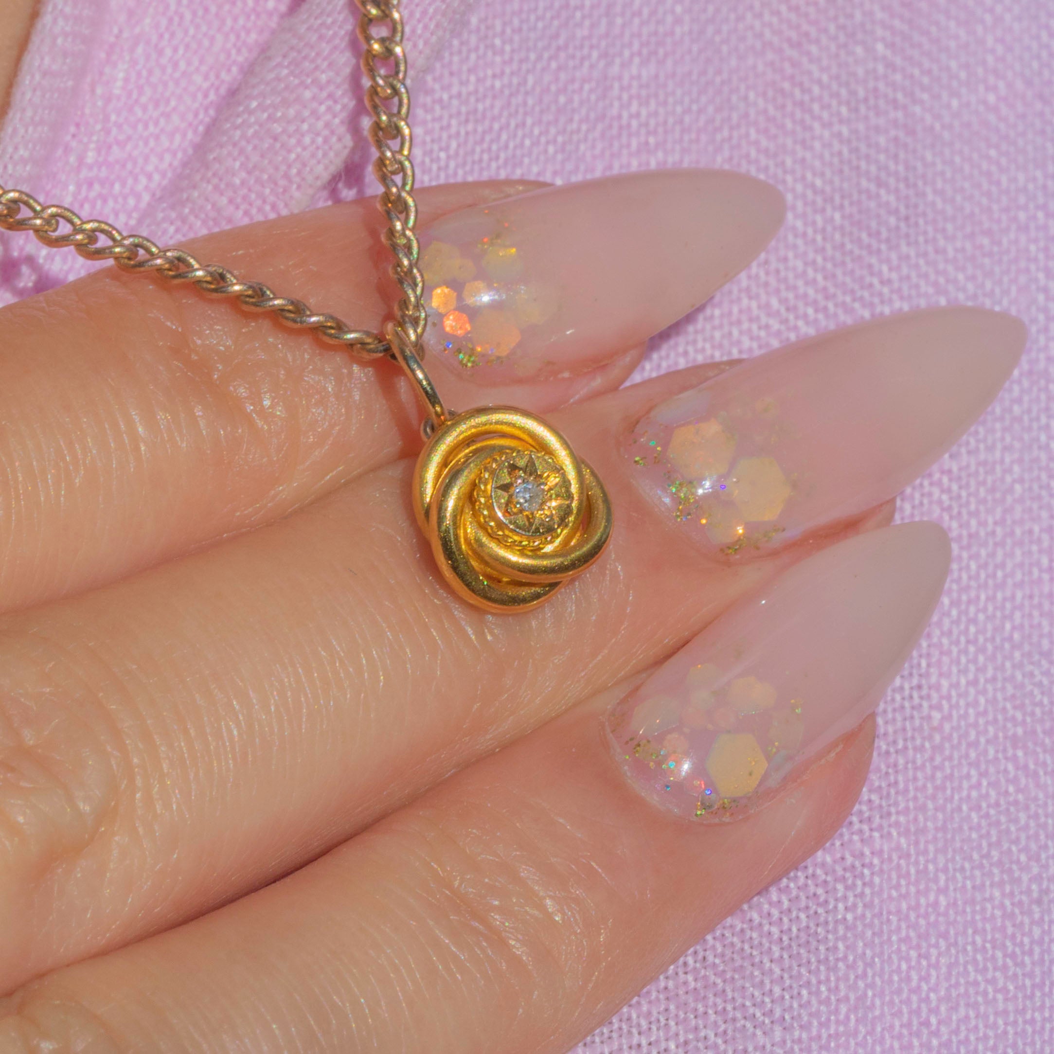 This dainty Edwardian pendant is crafted in rich 15ct Gold and set with a single sparkling Diamond. The bright Diamond adds a touch of fire and light to the smooth Gold setting, creating a timeless and elegant look.