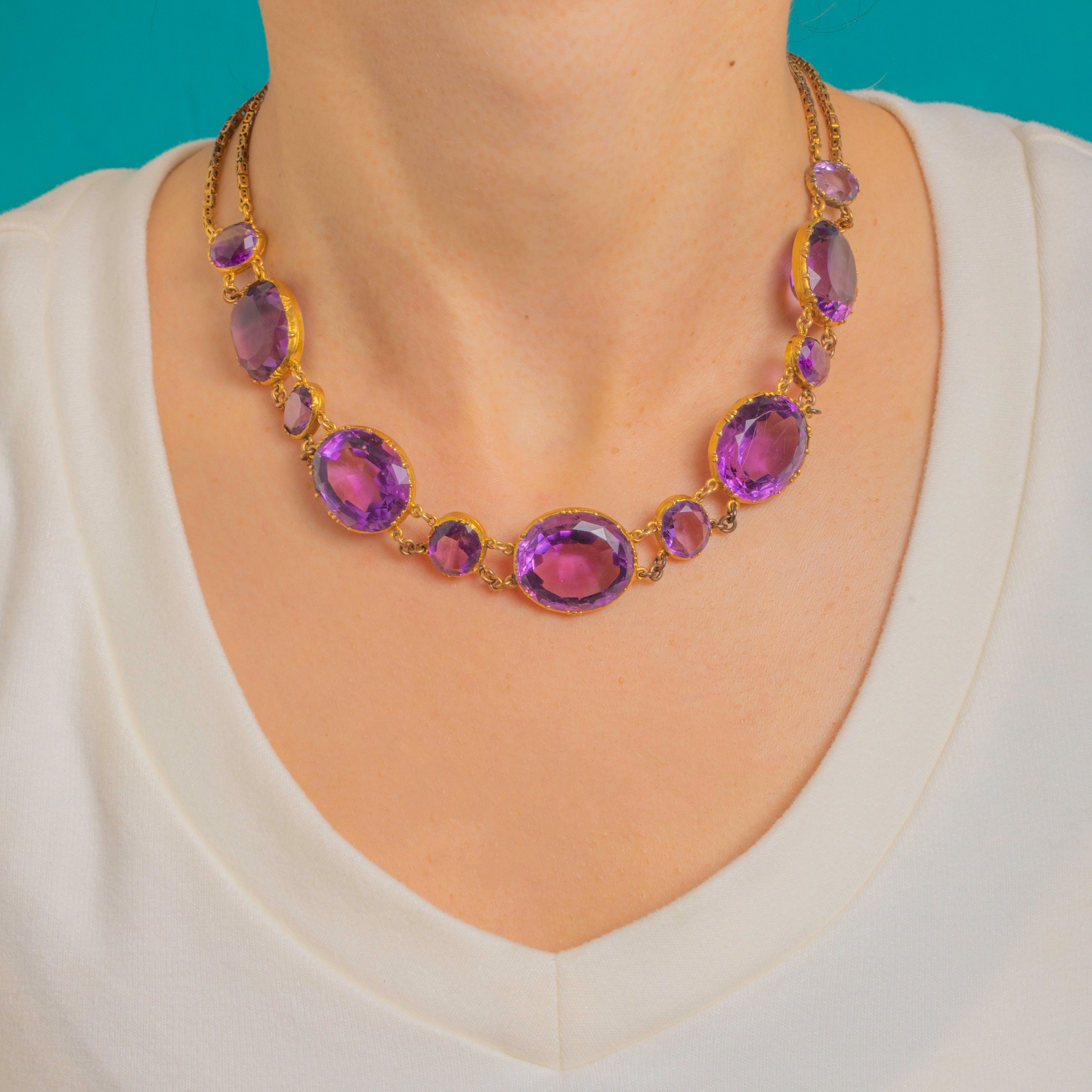 15ct Gold Natural Amethyst Riviere Necklace, 74.00ct