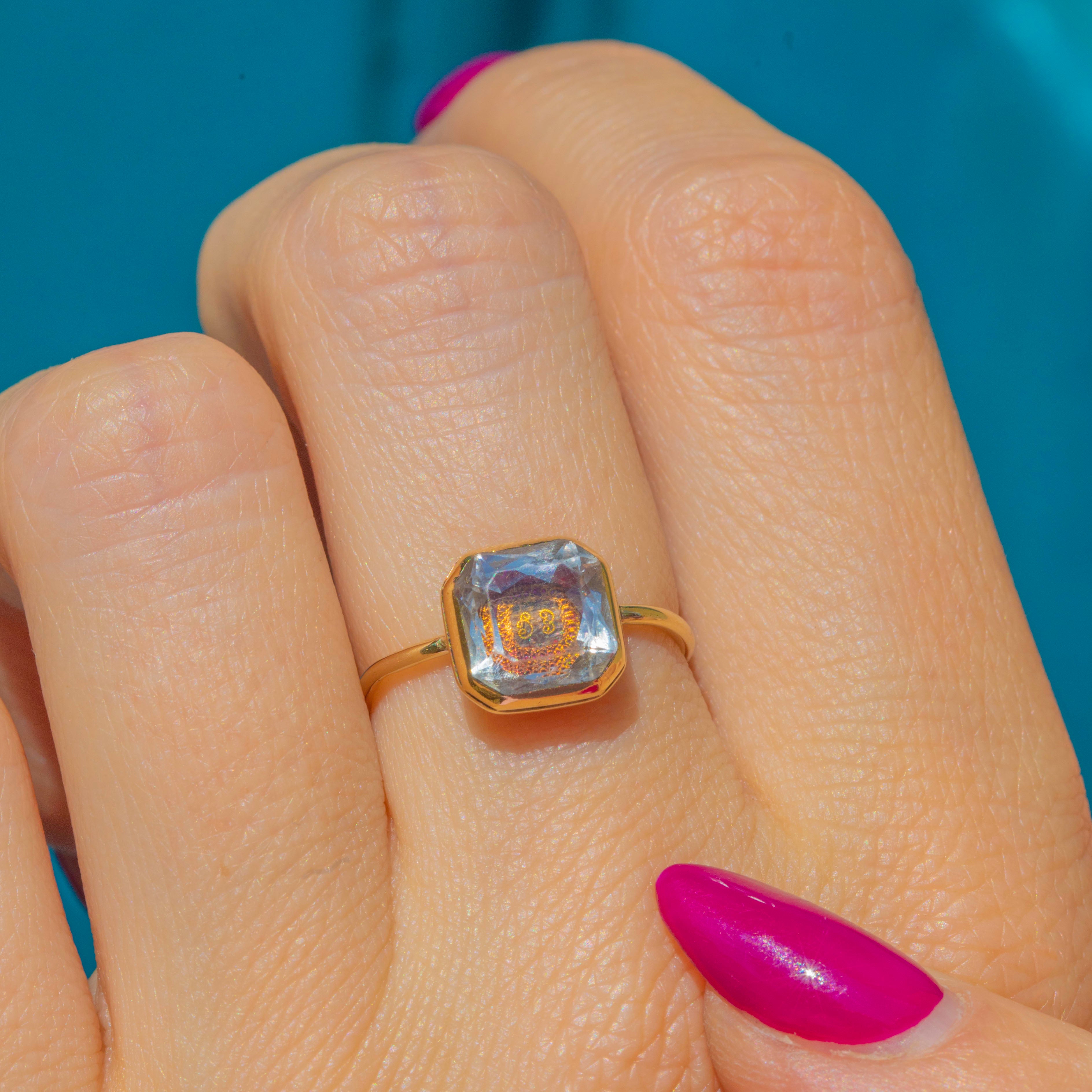 Stuart Crystal rings originated after King Charles I's execution in 1649; royalists would secretly wear rings just like this piece to show allegiance to the crown and the House of Stuart! This piece is a great way to connect you to part of England's intriguing history.