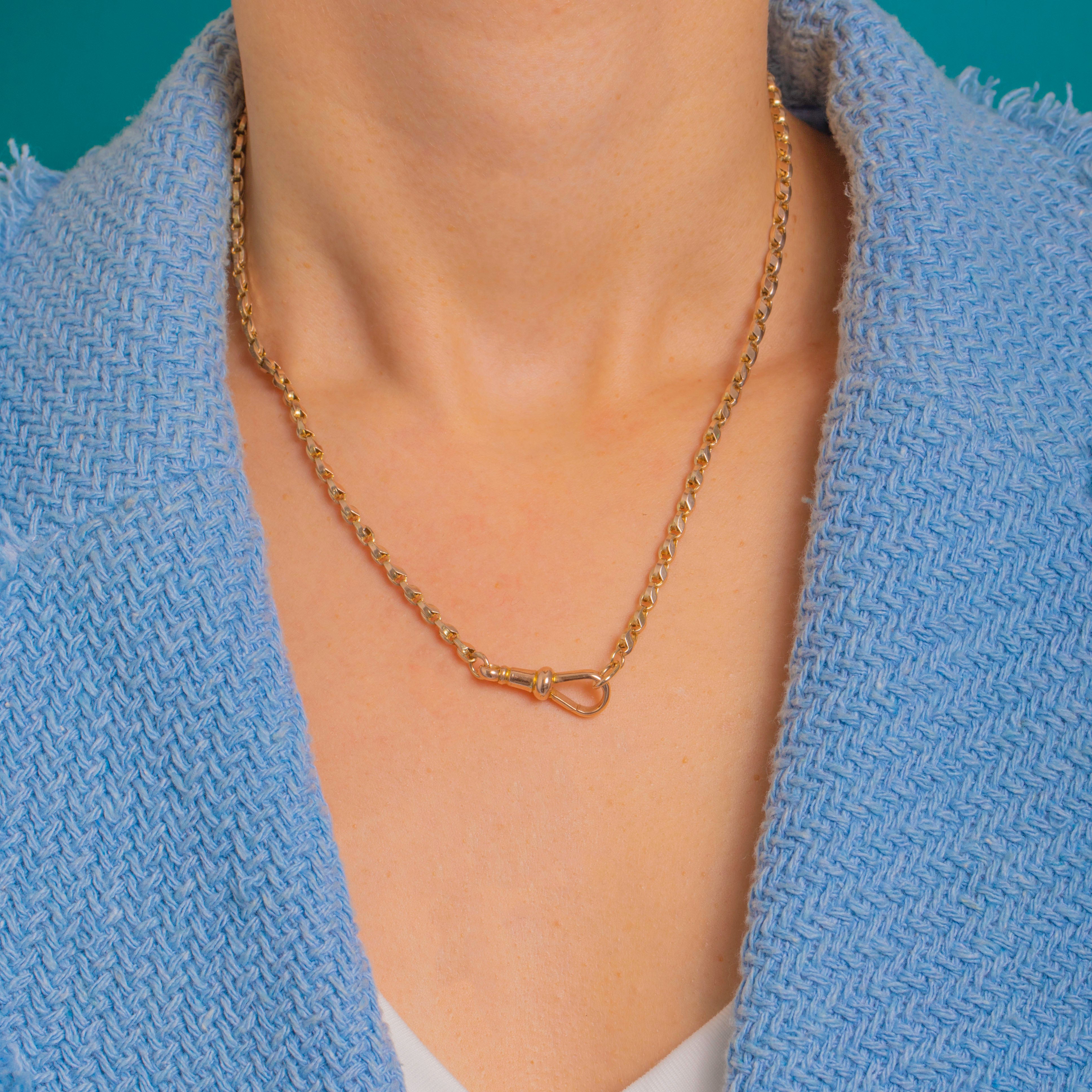Effortlessly chic worn alone or layered, the dog clip is perfect for displaying a pendant or charm should you wish. A refined staple with enduring elegance and an authentically antique feel.