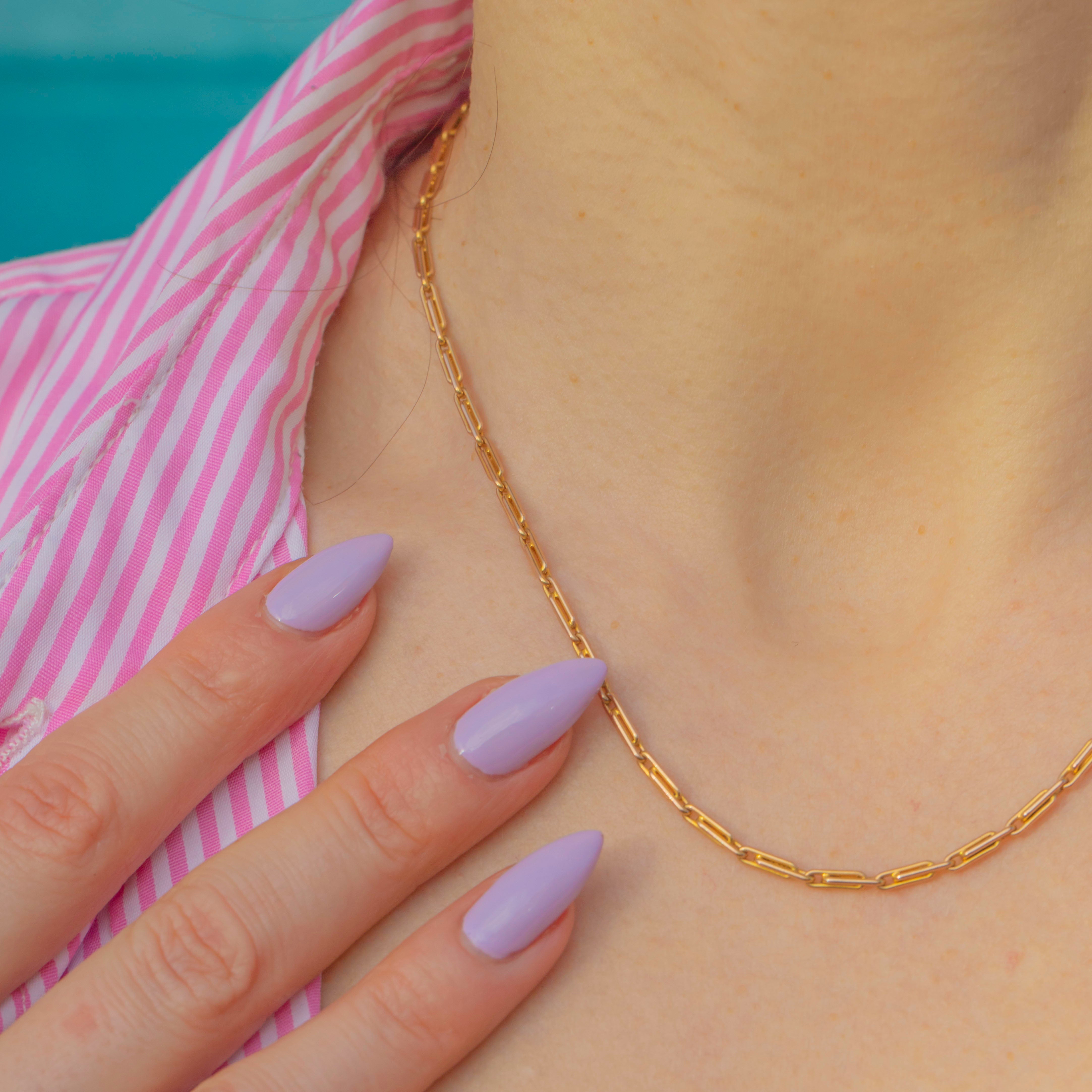 Crafted from bright and buttery 15ct Gold, this Victorian chain is formed with unique paperclip links, providing ample texture and depth. She has a lovely movement, with links that flow like liquid Gold as she adorns your décolletage.