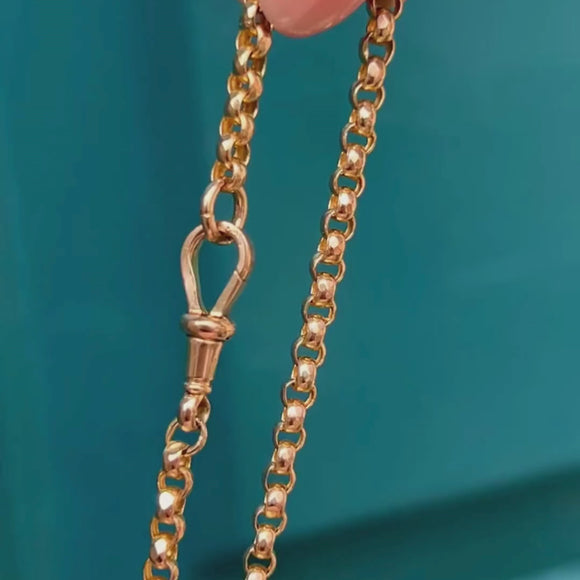 VERY GOOD-EXCELLENT. This antique Gold belcher chain is in wonderful condition. The belcher links are in perfect condition and are firmly connected, with an even buttery hue throughout. The dog-clip does have a couple of light dings but fastens with ease for secure and reliable long-term wear. This 9ct Gold Victorian chain will make a welcome addition to your antique jewellery collection!