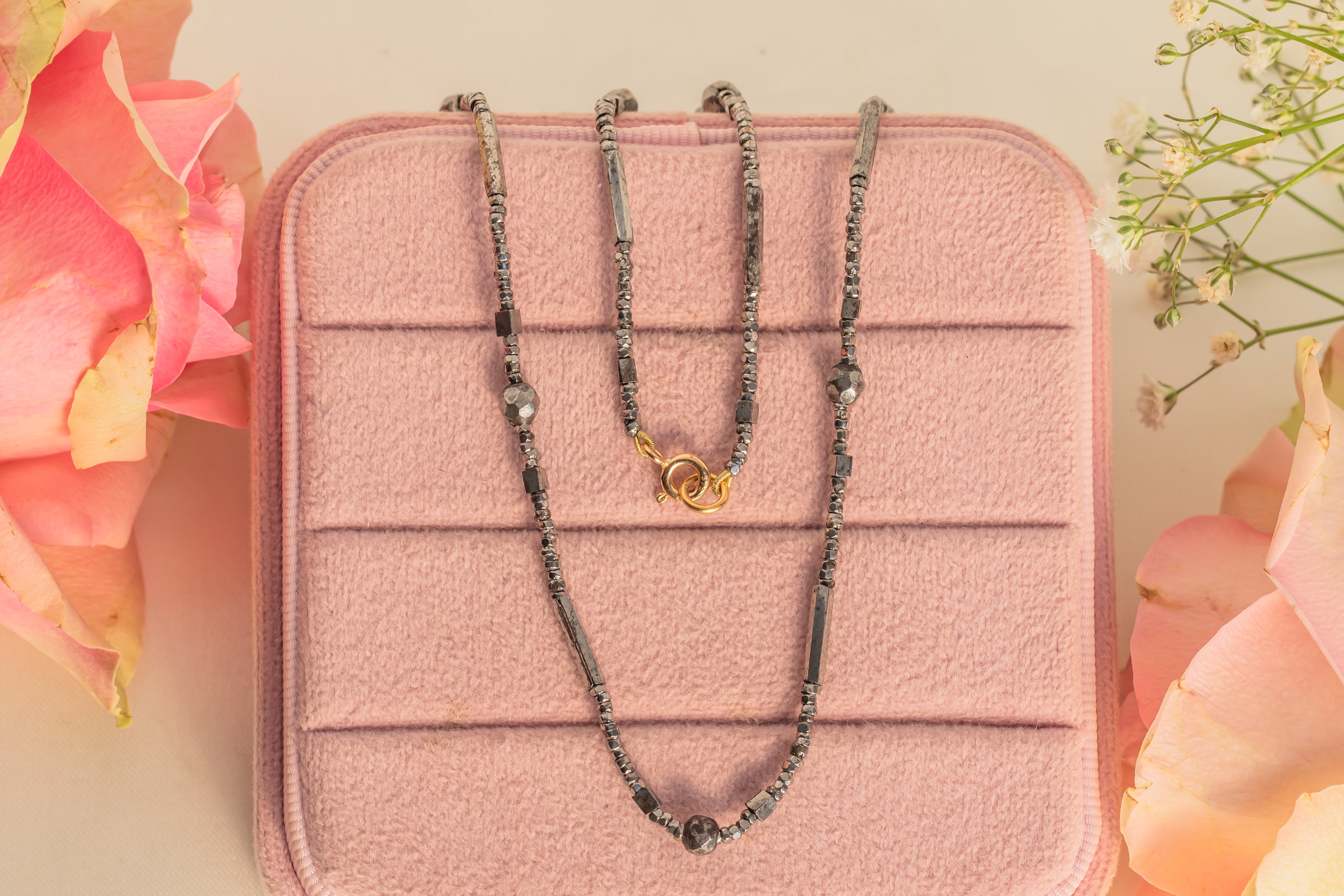 16.5インチ ジョージアンカット スチール ネックレス、9ctゴールド ボルトリング付き