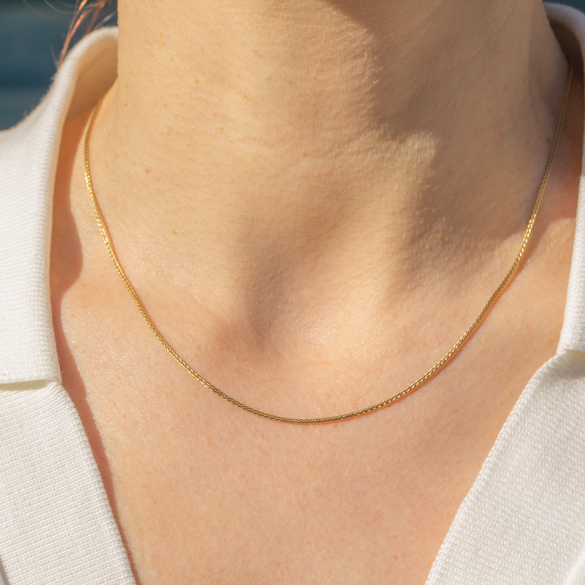 We are totally in awe of this exquisite 16" 9ct Gold Spiga link pendant chain; the craftsmanship is next to none!