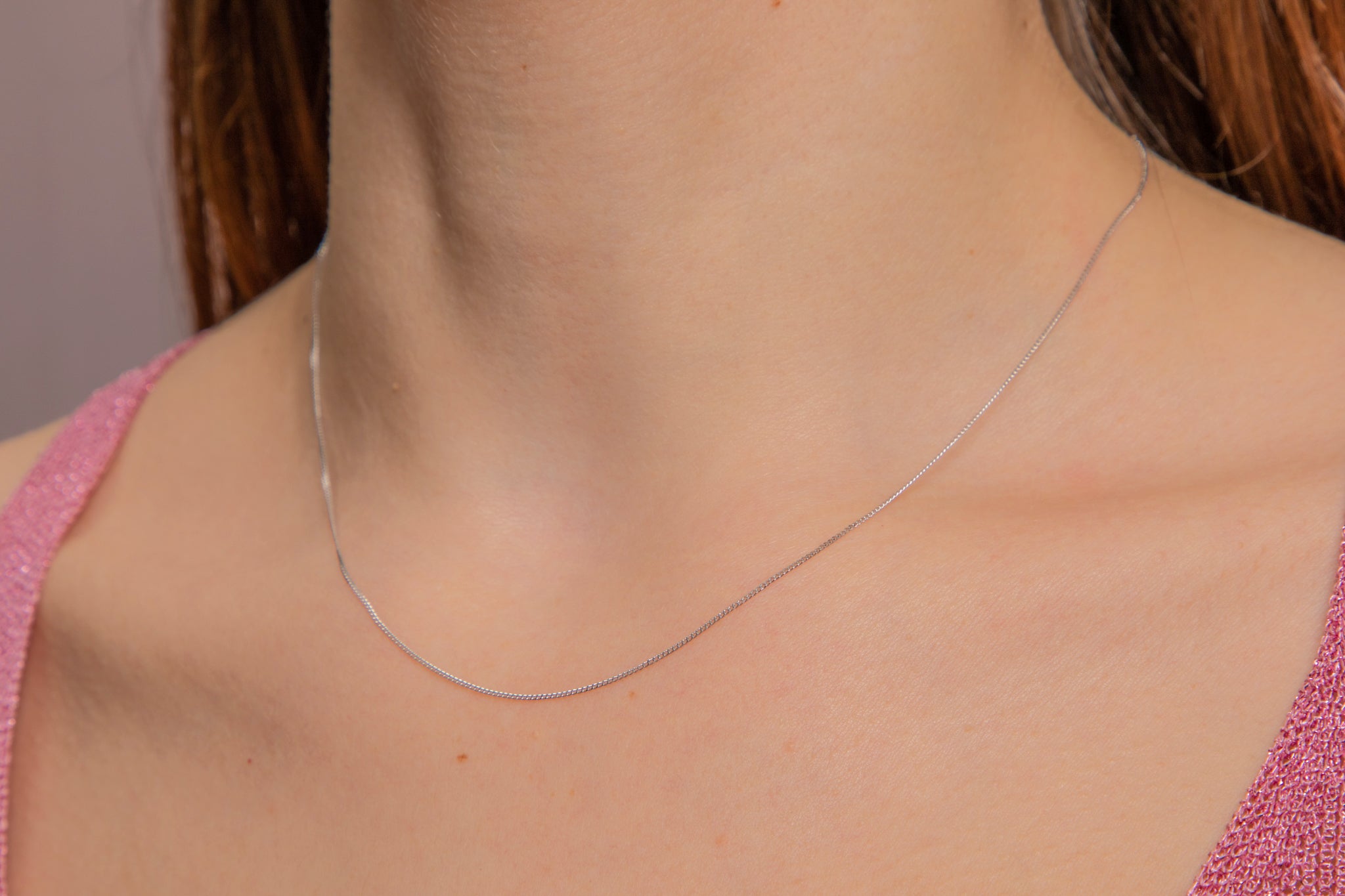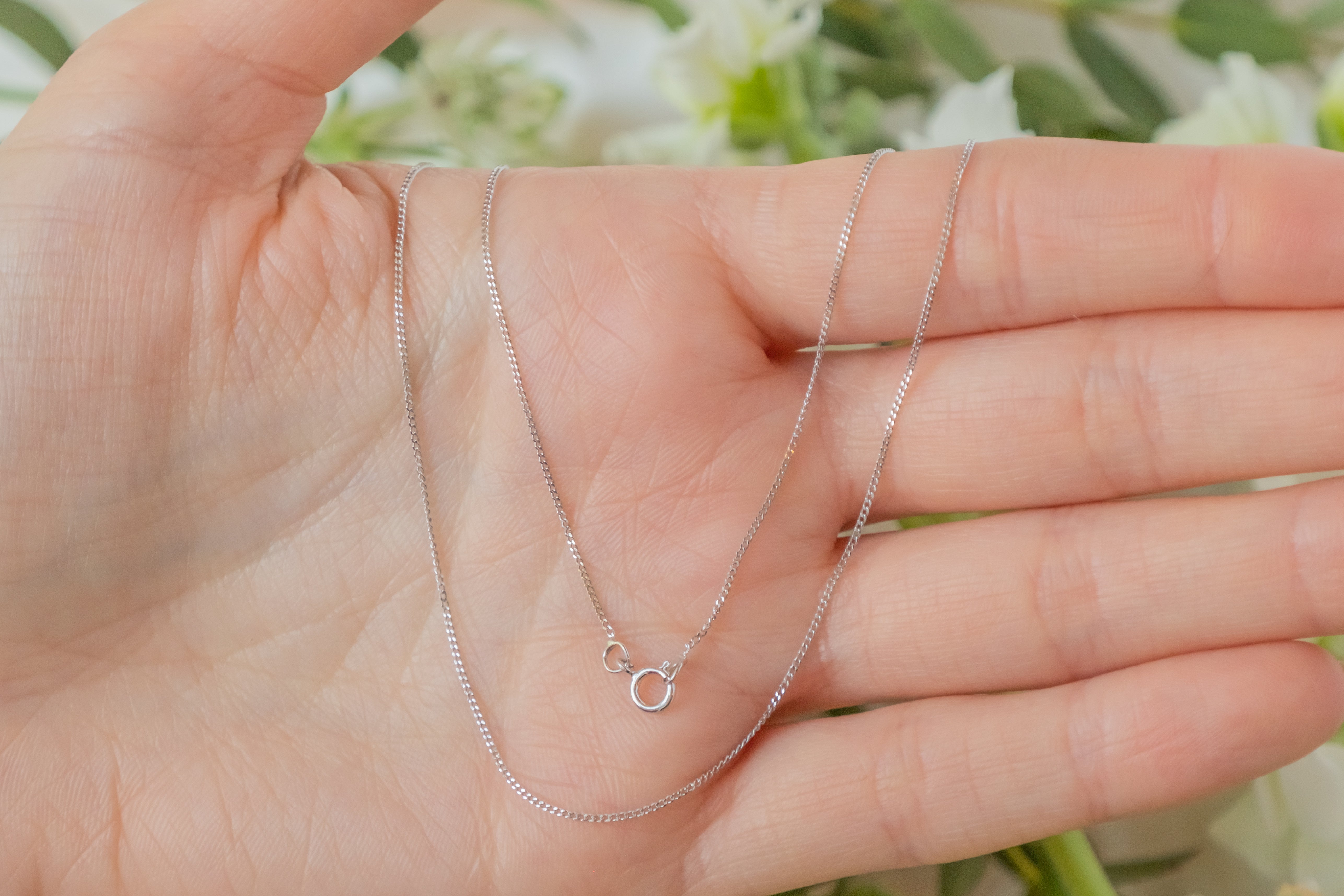 16インチ 9カラット ホワイトゴールド スキニーペンダントチェーン