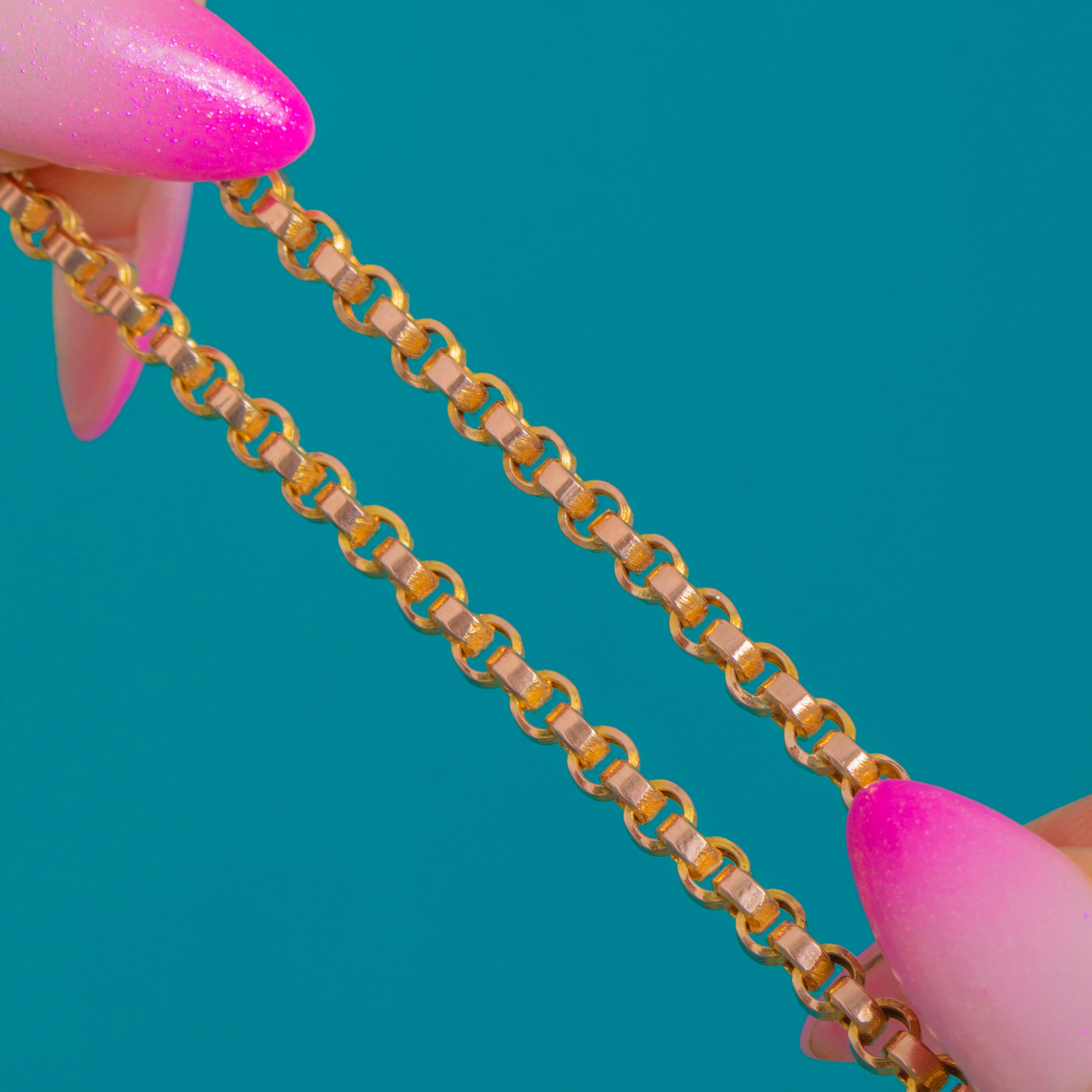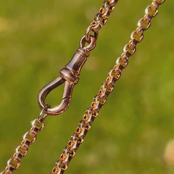 気品あふれるVictorian期の九金製喜平鎖。時を超えたシンプルさと、温かみのある黄金色が魅力です。丸みを帯びた伝統的な喜平の輪が滑らかに連なり、首元に上品な存在感を添えます。