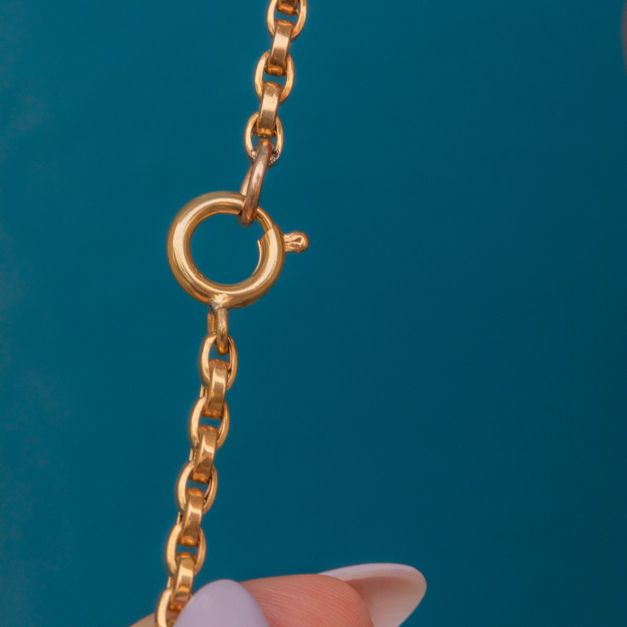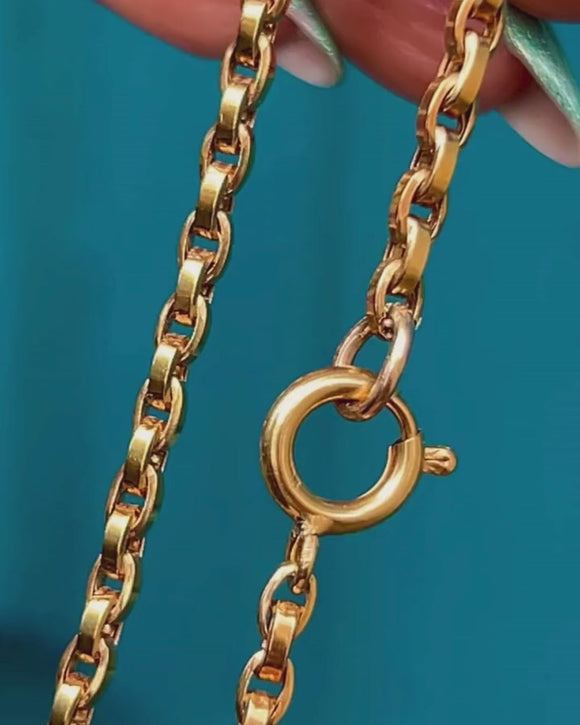Let this 16" antique 9ct Gold belcher chain radiate warmth as she adorns your neck! Formed of saturated 9ct Gold belcher links with a square edge finish, the light bounces off every inch of this Victorian Gold necklace.