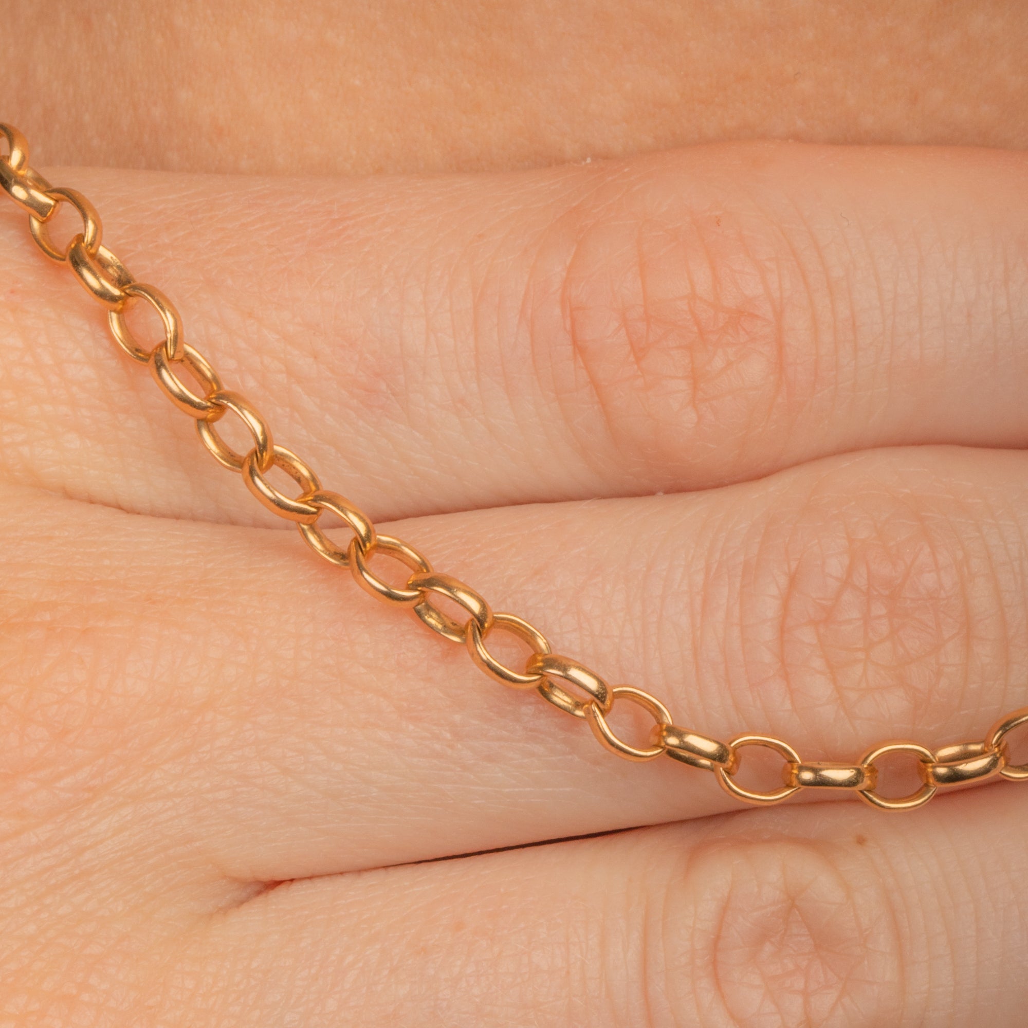 How divine is this 16" antique 9ct Gold belcher chain?! Smooth, oval belcher links form her 16" length, with a lovely fluidity that perfectly caresses your neckline.
