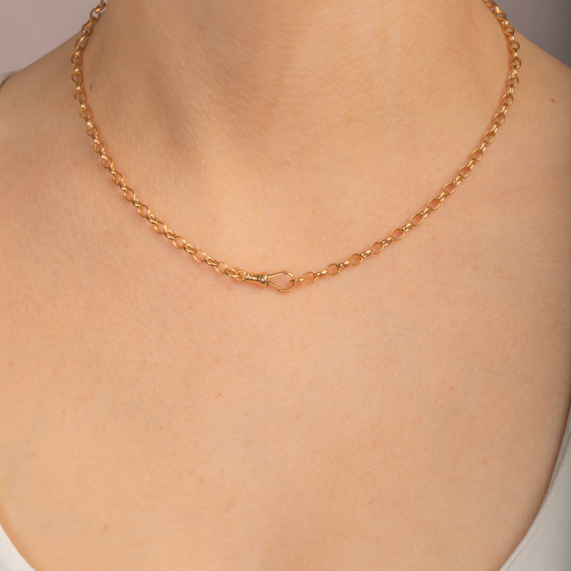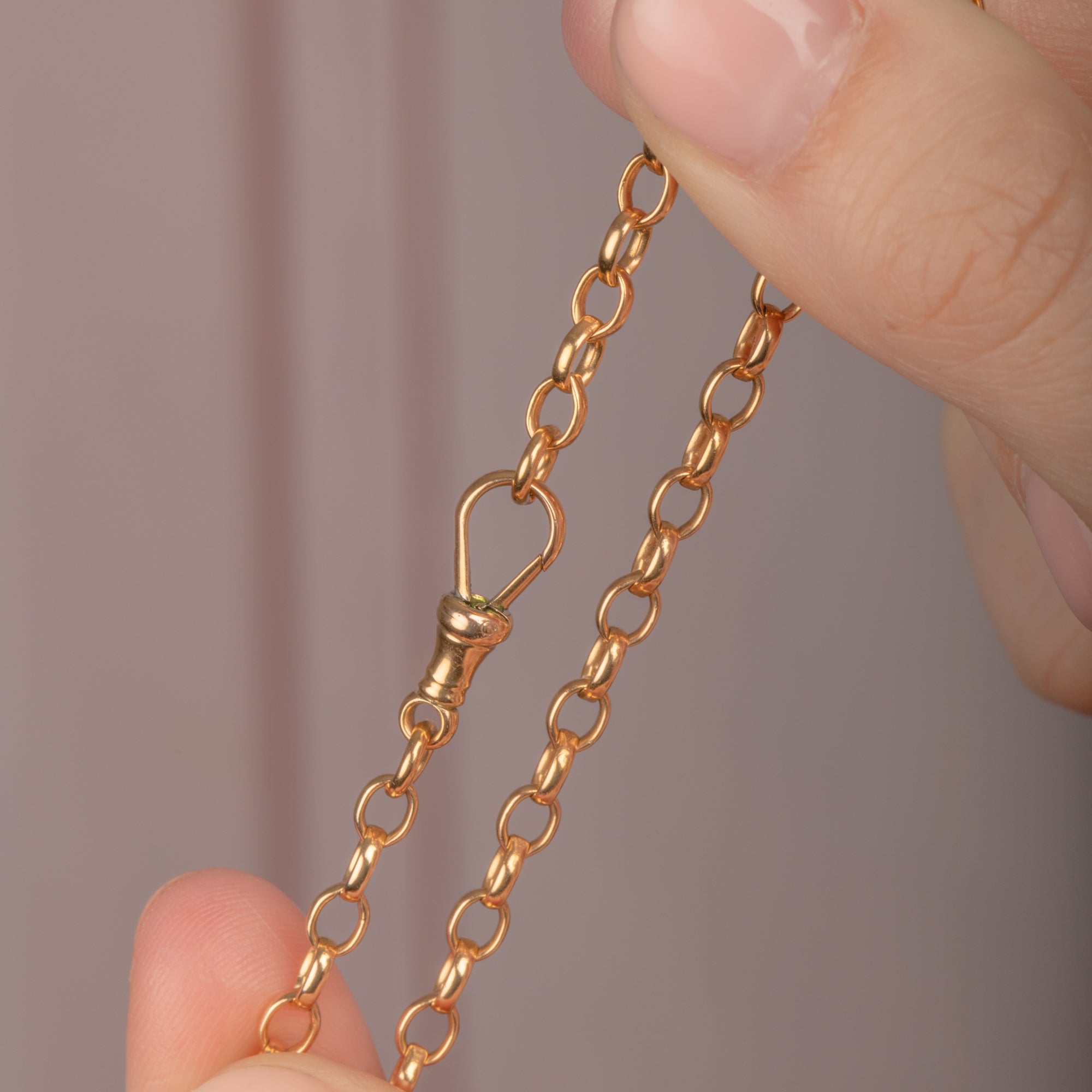 Crafted from blushed 9ct Gold, this Victorian Gold chain radiates warmth and is fastened by a dainty, antique Gold dog-clip that would make a perfect charm holder resting centrally between your collar bones.