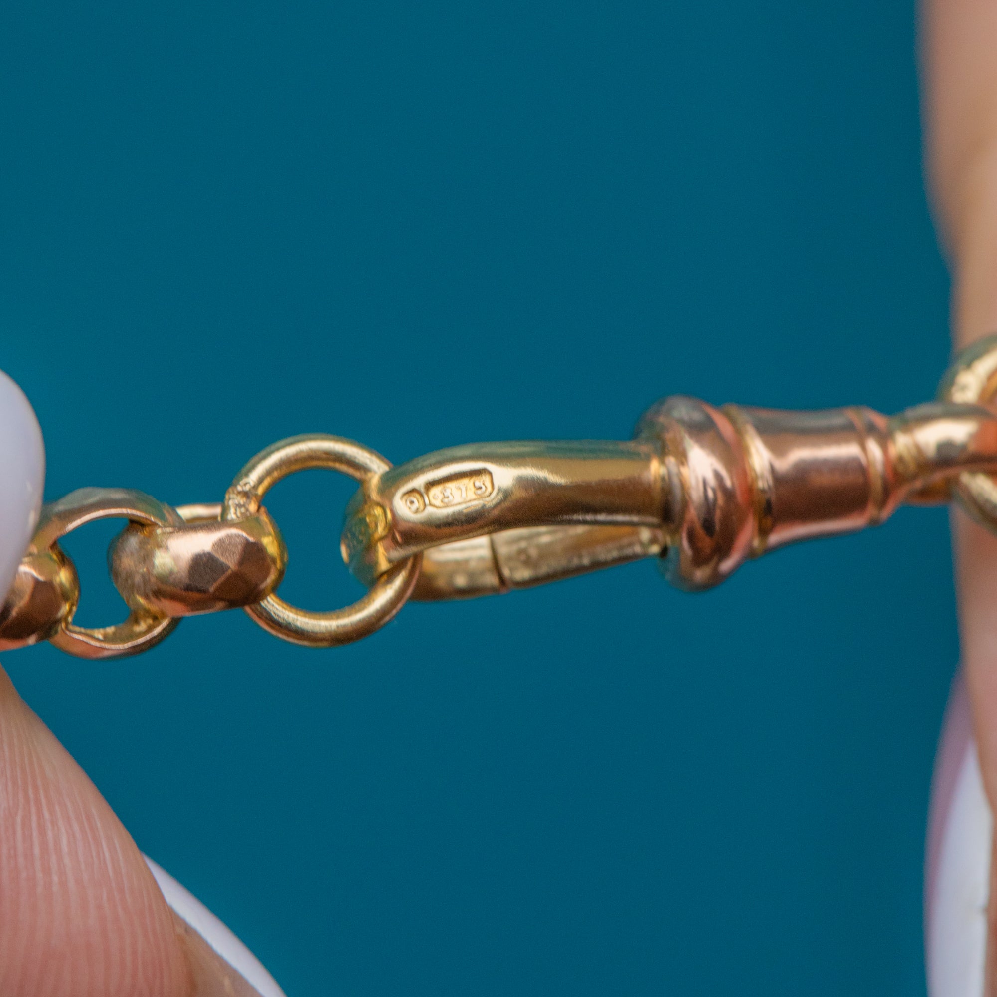 EXCELLENT: This chunky antique 9ct Gold belcher chain is in excellent condition. The links are uniform and secure, promising many more years of wear. With her dog-clip in perfect working order, this Victorian belcher chain is ready to be worn!