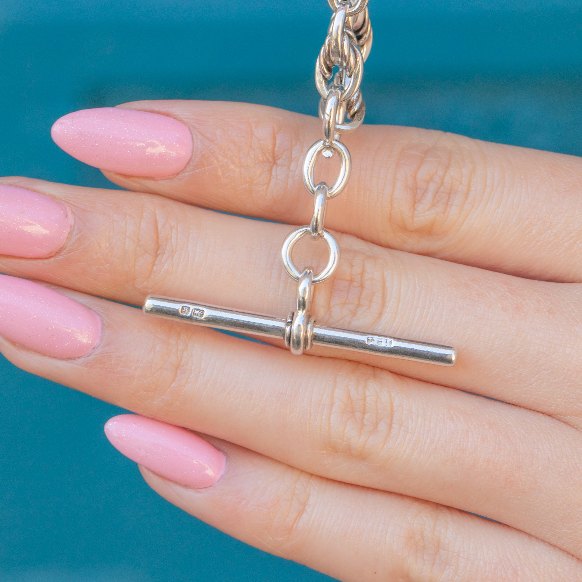 16" Antique Silver Lover's Knot Albert Chain, 2x Dog Clips & T-Bar