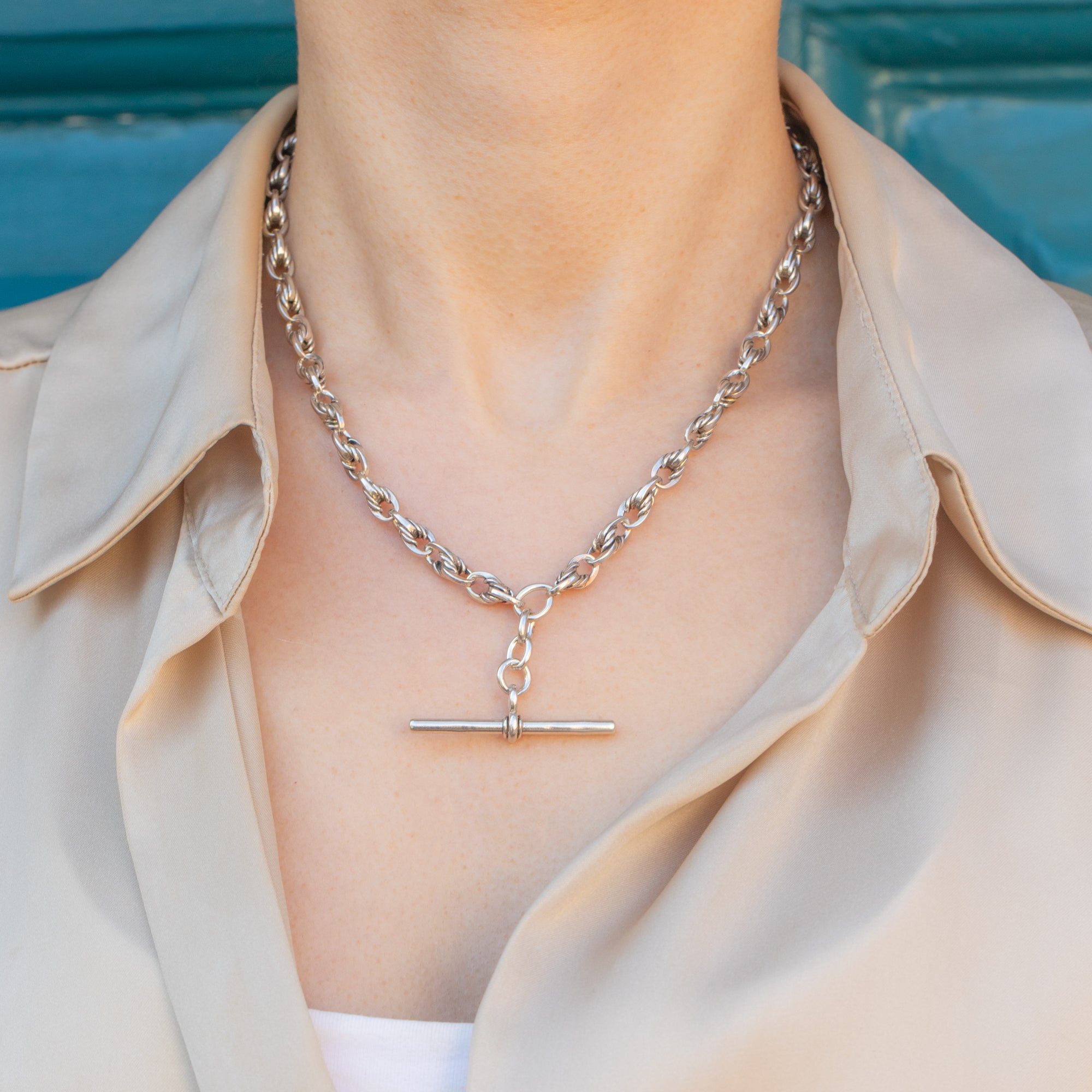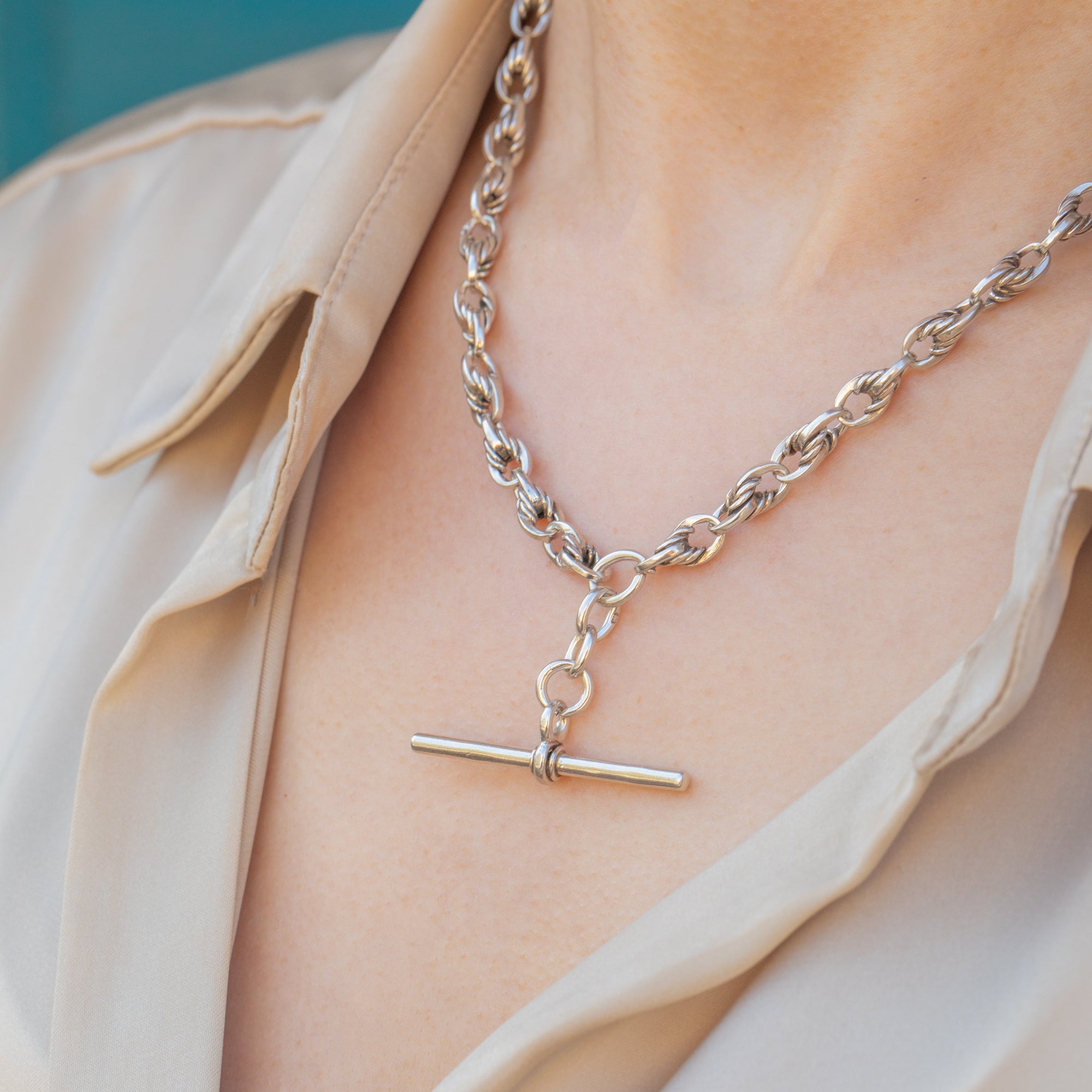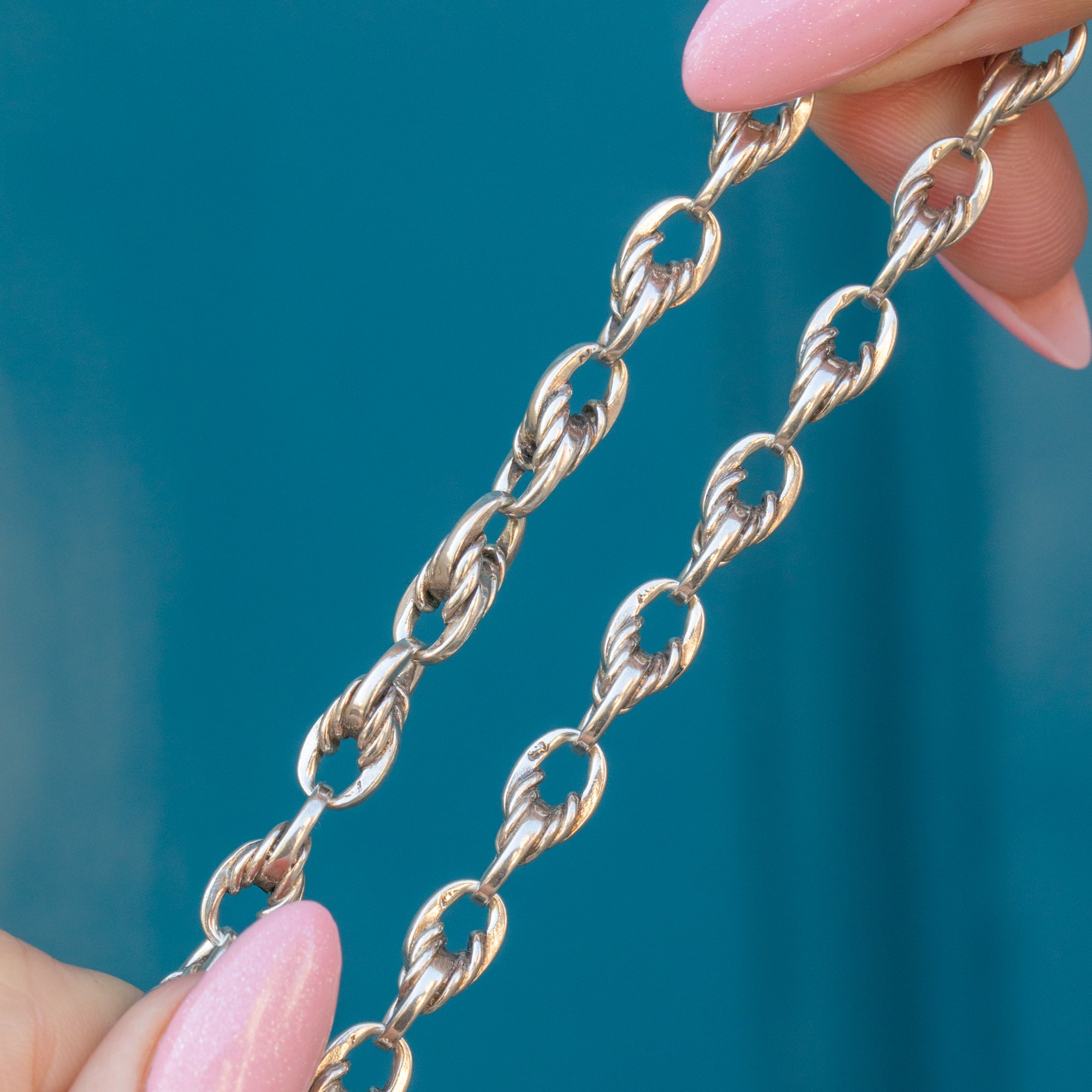 Handcrafted from Sterling Silver over a century ago, one can only imagine the skilled craftsman who hand-forged each link to create this eye-catching chain.
