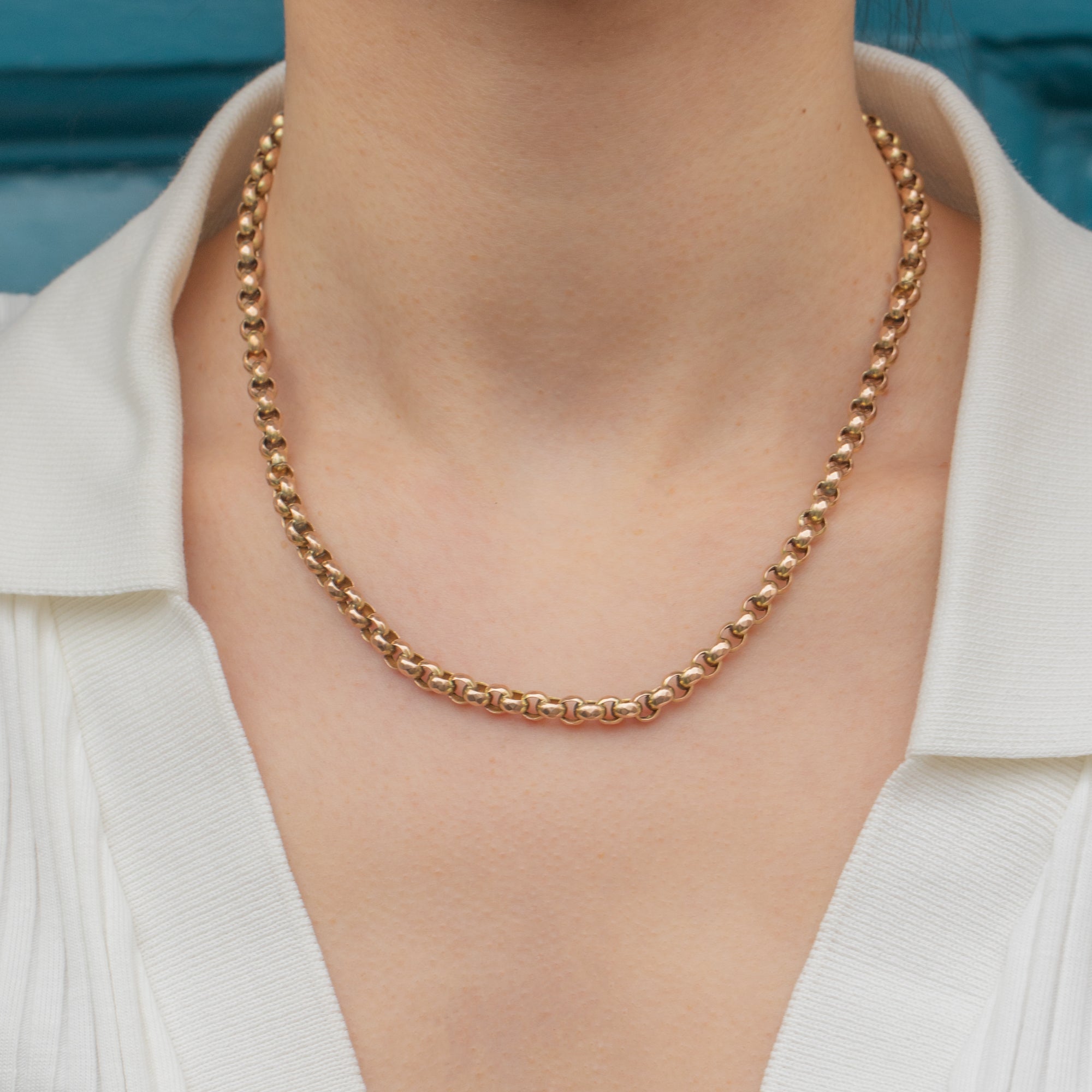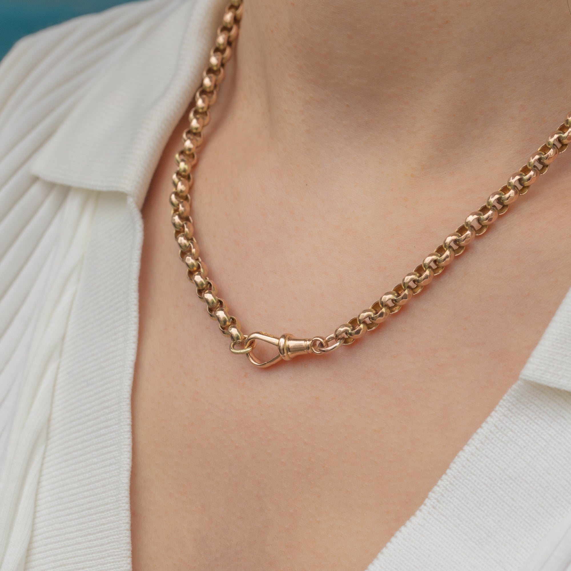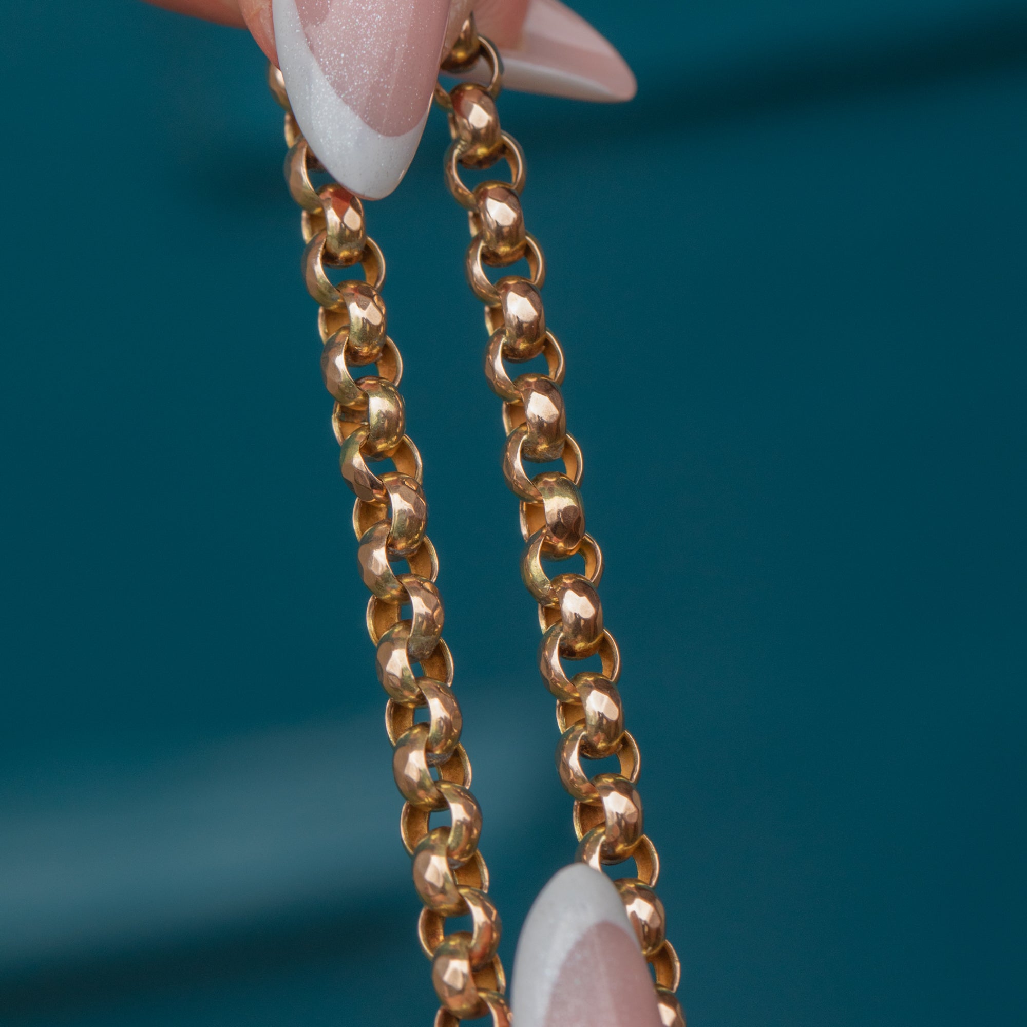 You really can't go wrong with an antique Gold chain, and this 16" chunky antique 9ct Gold faceted belcher chain is a wonderful example! The softly faceted links catch the light beautifully as this Victorian chain adorns your neck, crafted entirely from buttery Gold adding a luxurious finish to any outfit.