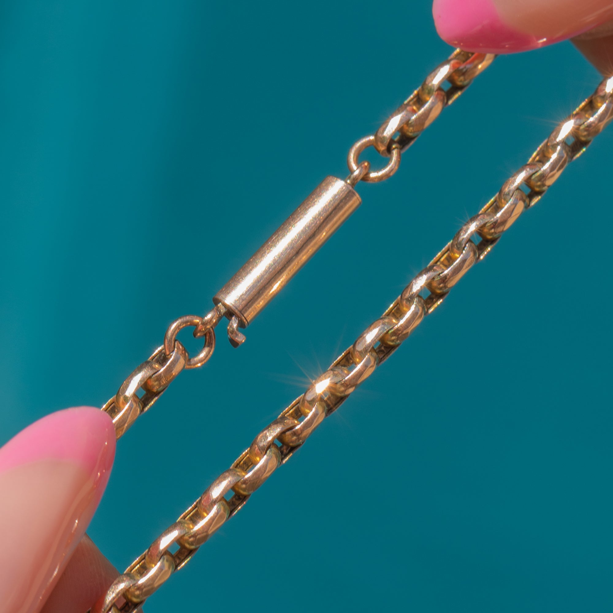 EXCELLENT: This antique 9ct Gold faceted belcher chain is in excellent condition. Each link has been beautifully faceted and is connected securely to the next. The barrel clasp is a lovely large size and is in perfect working order, allowing the chain to be worn with the utmost confidence for many more moons to come!