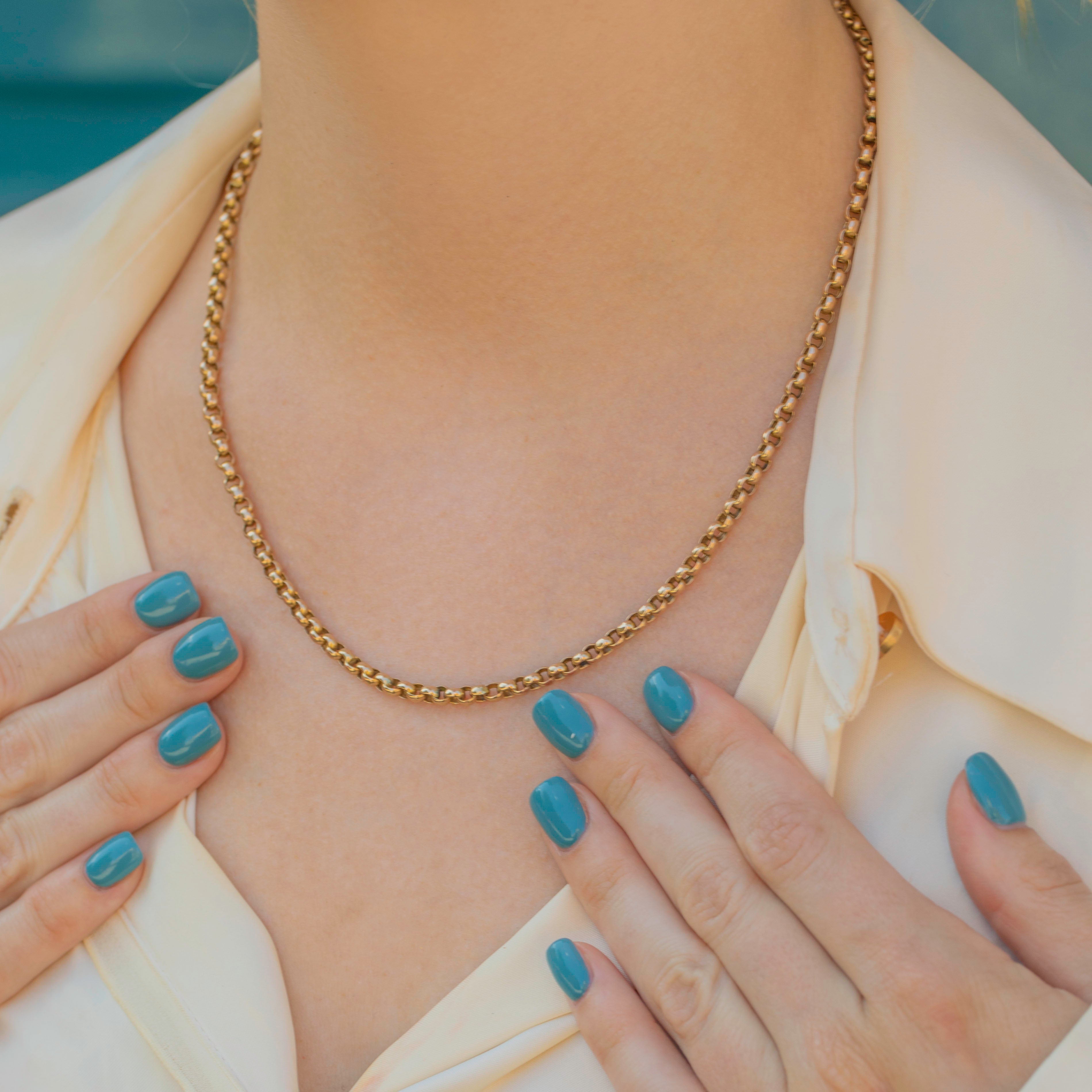 This Victorian 9ct Gold belcher chain will make an elegant and versatile addition to your antique jewellery collection! With her rich, buttery 9ct Gold tones and smooth belcher links, this antique Gold chain is perfect for any occasion.