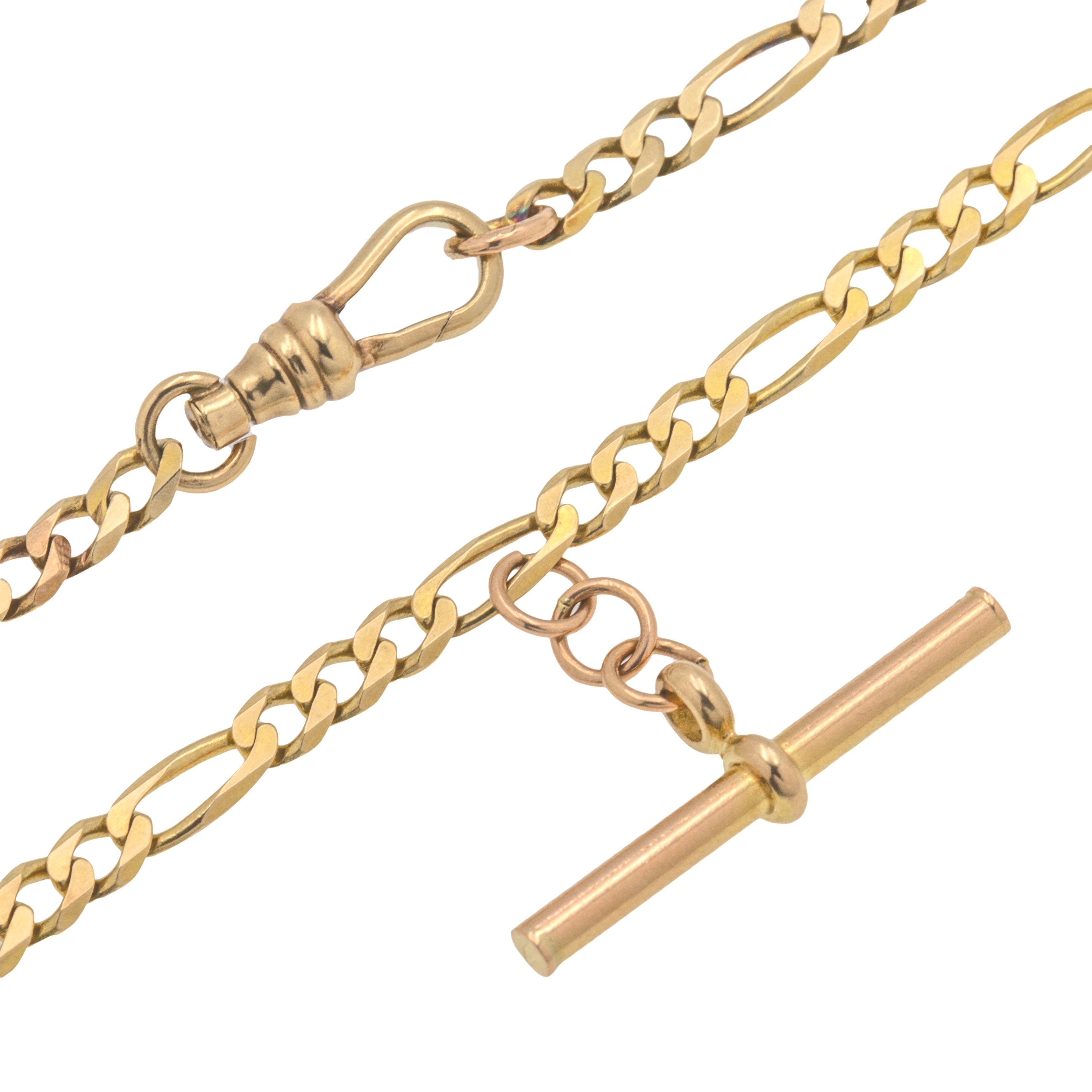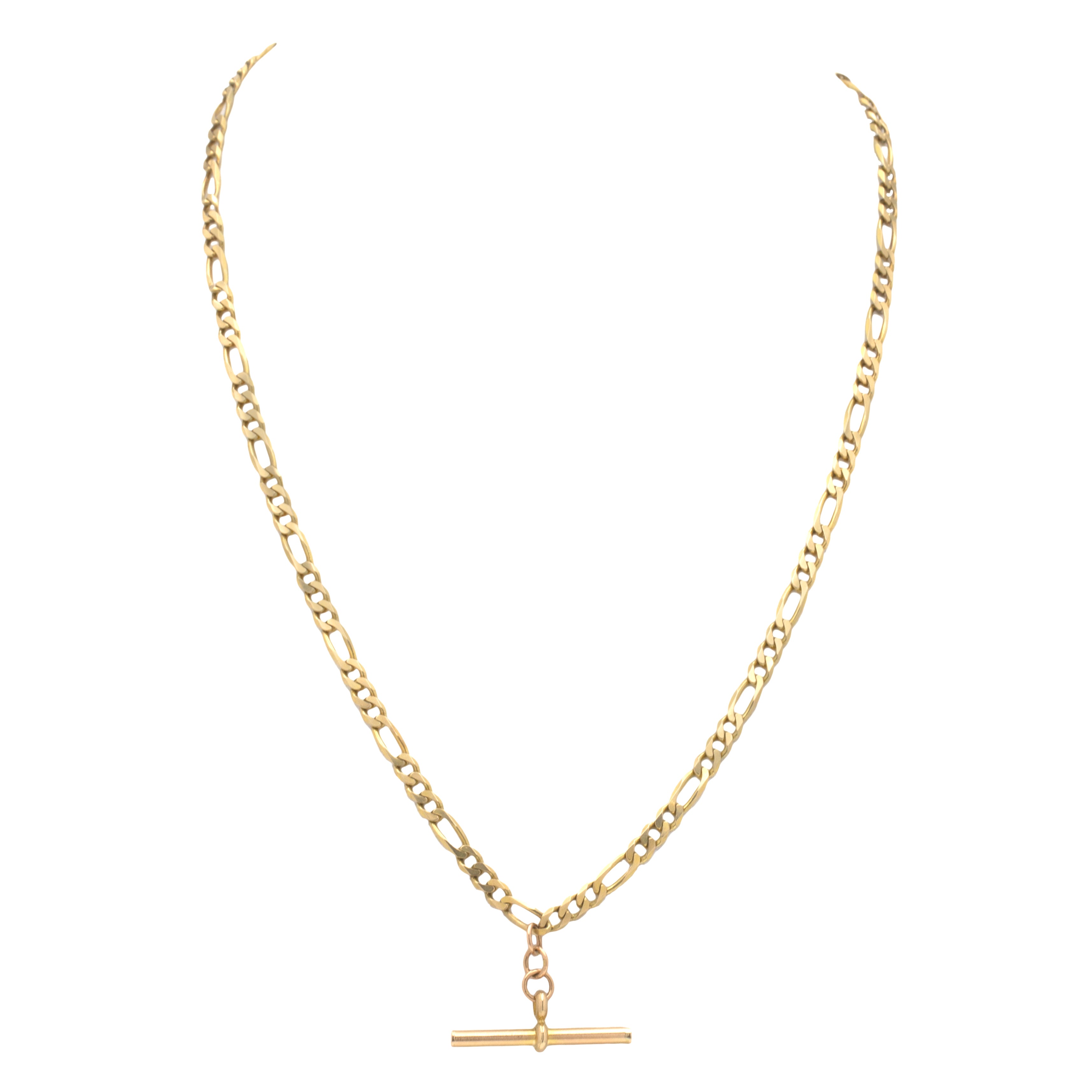 17インチ 9ct ゴールド フィガロ アルバート チェーン Tバー付き、9.6g