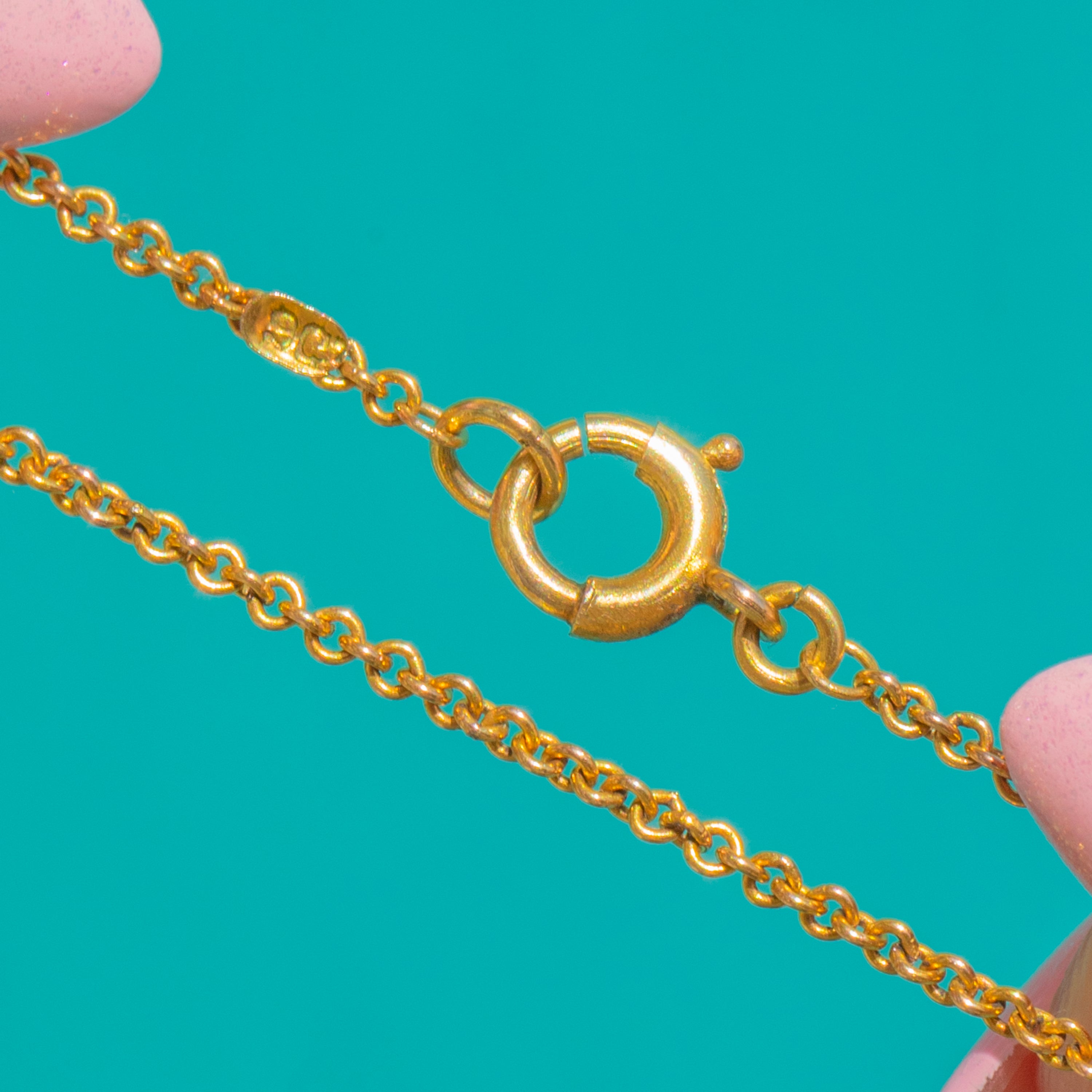 17インチ 9ct ゴールド ペンダントチェーン、オリジナル アンティーク ボルトリング クラスプ