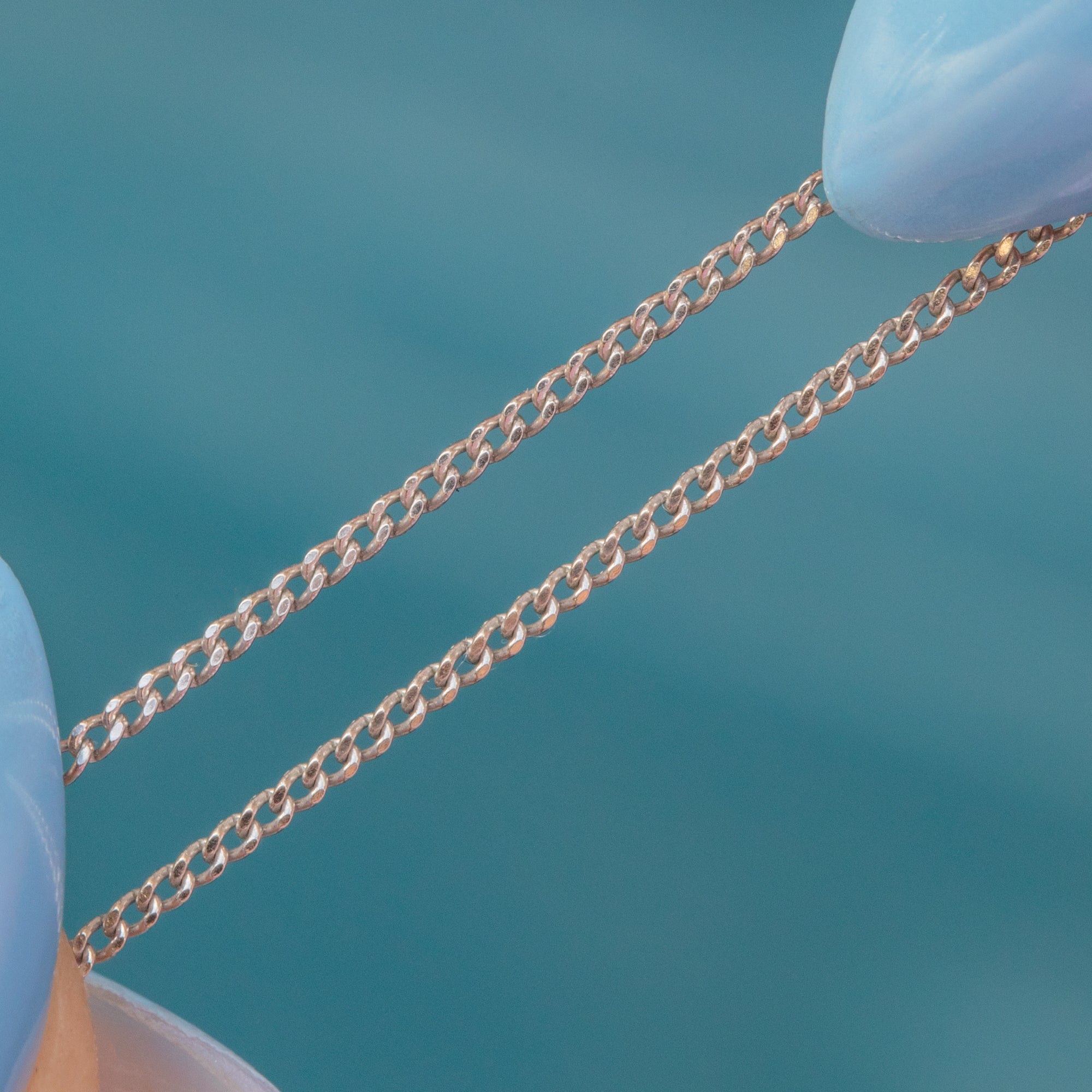 At 17 inches long, this versatile vintage chain is made up of tightly connected curb links that will rest smoothly against the skin and will provide endless styling possibilities.