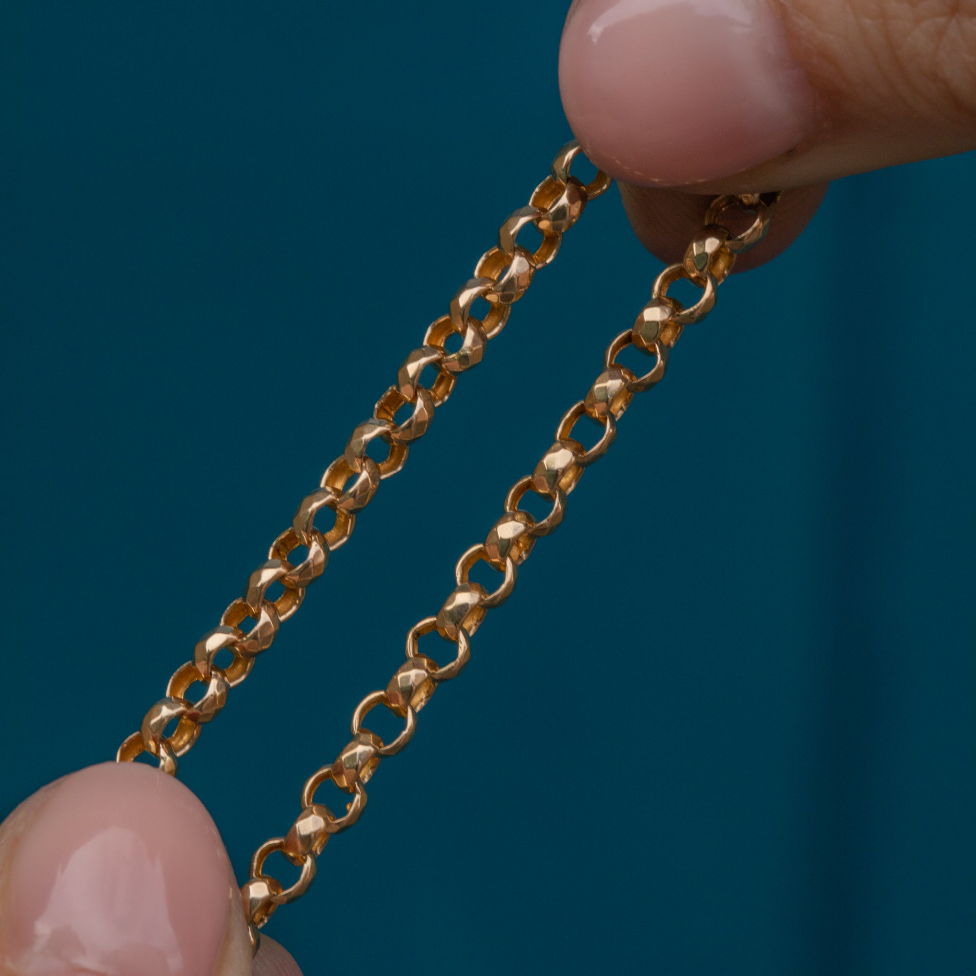 Watch as the light bounces off of this 17" antique 15ct Gold faceted belcher! Crafted from 15ct Gold throughout, the buttery hue trickles through each of her belcher link, bringing warmth and splendour.