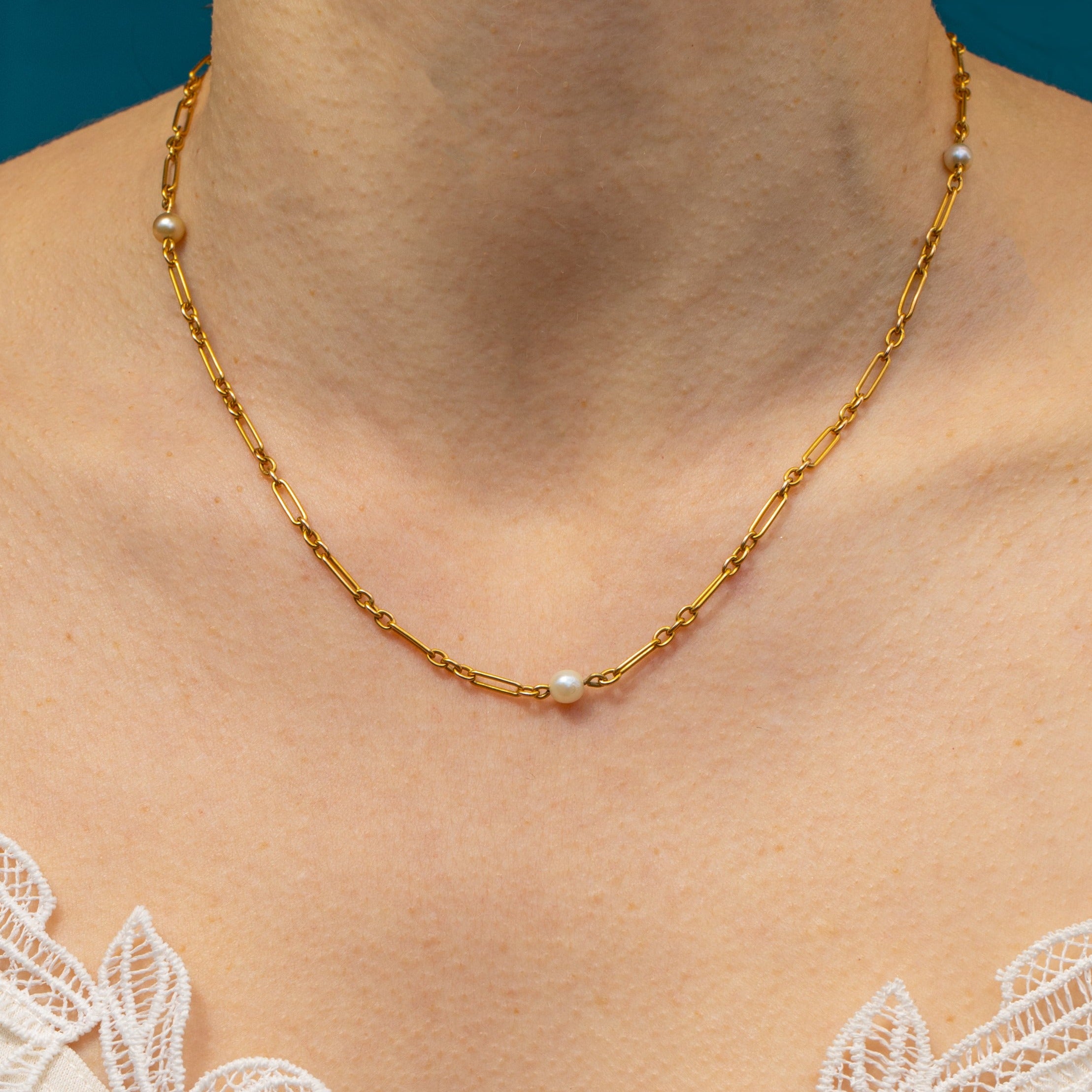 17" Antique 15ct Gold Mini Trombone Link Chain with Pearls