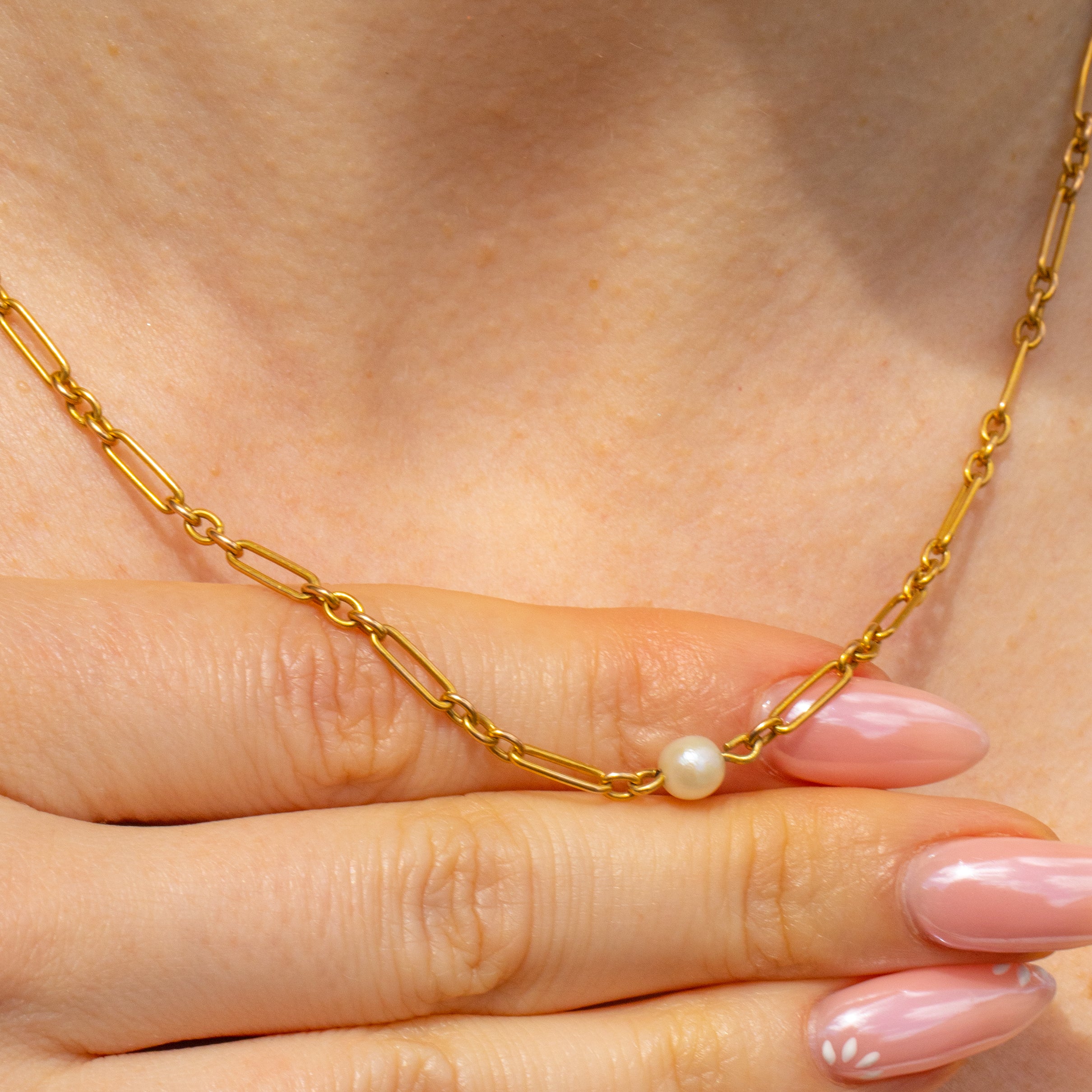 Perfectly positioned, her middle Pearl falls centrally, with the Pearls on either side sitting along your collarbone. This Victorian Gold necklace provides effortless elegance, she will take any attire to the next level in an instant!