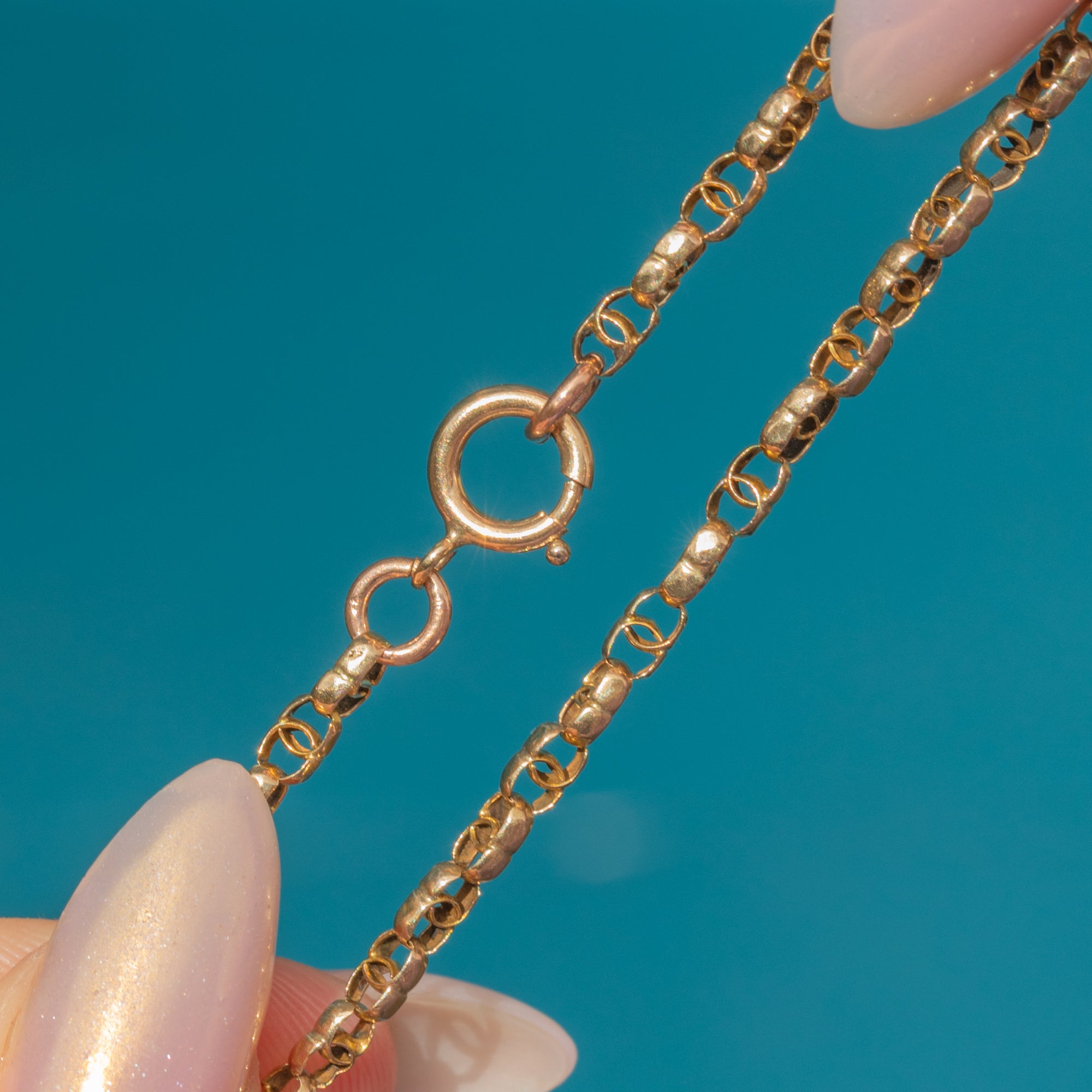 Measuring 17” long and weighing 5.2g, it’s a versatile antique chain with a secure bolt ring clasp, a timeless choice for daily wear or pairing with a pendant.