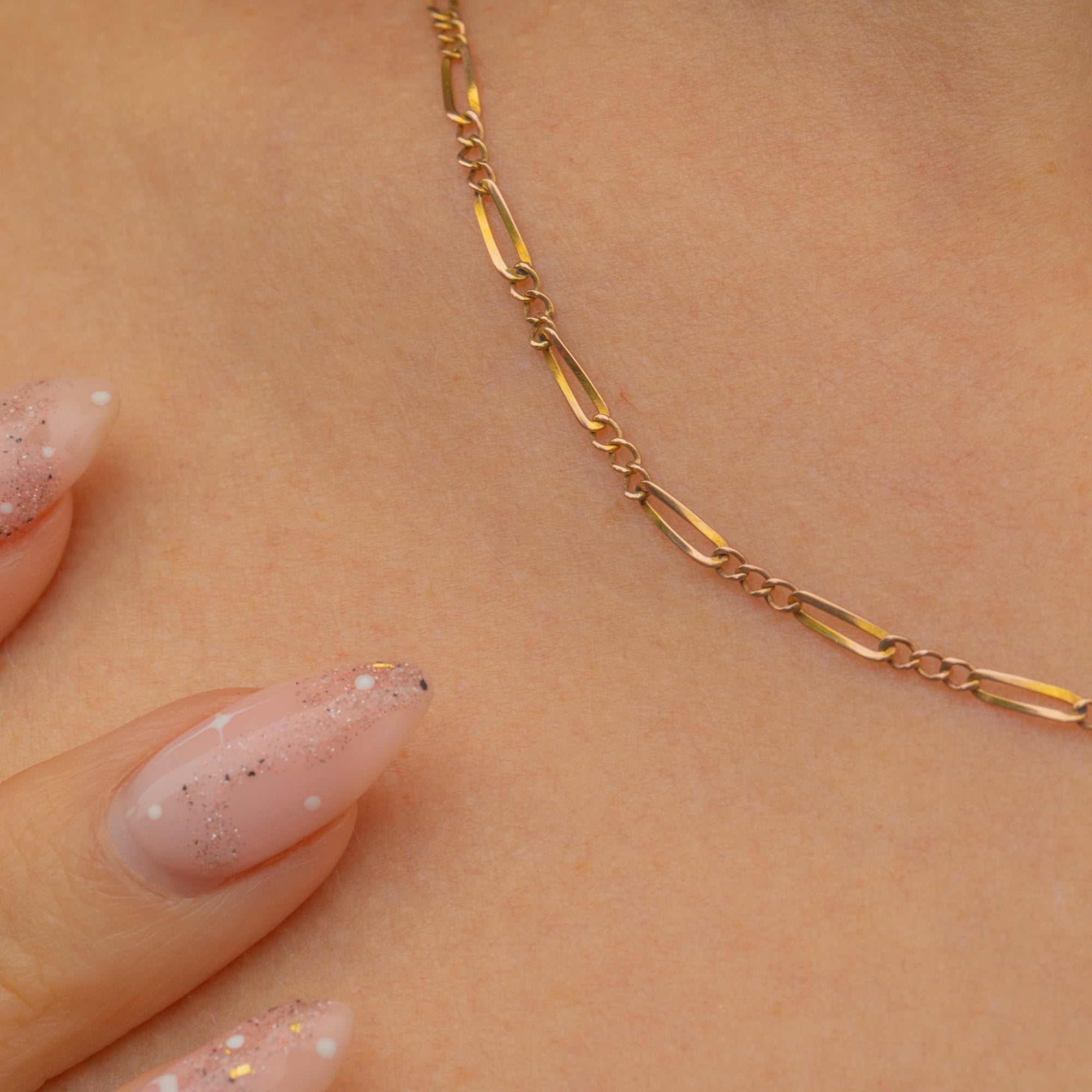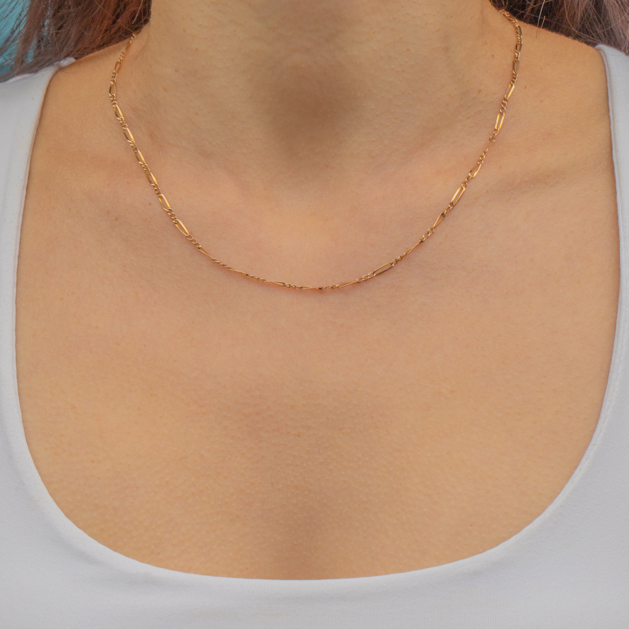 This delicate antique 17" 9ct Gold Figaro chain has a lovely warm tone and is perfect for daily wear!