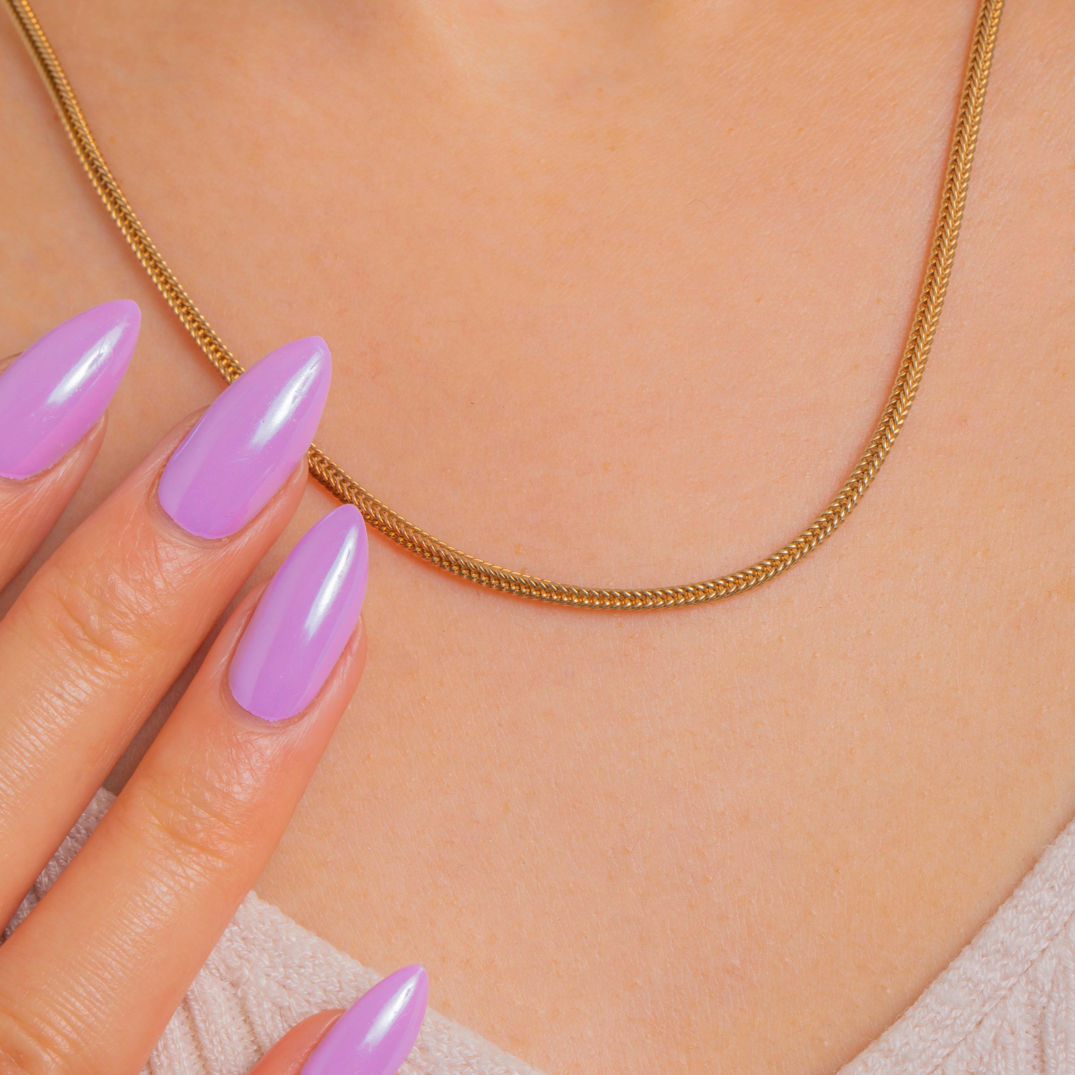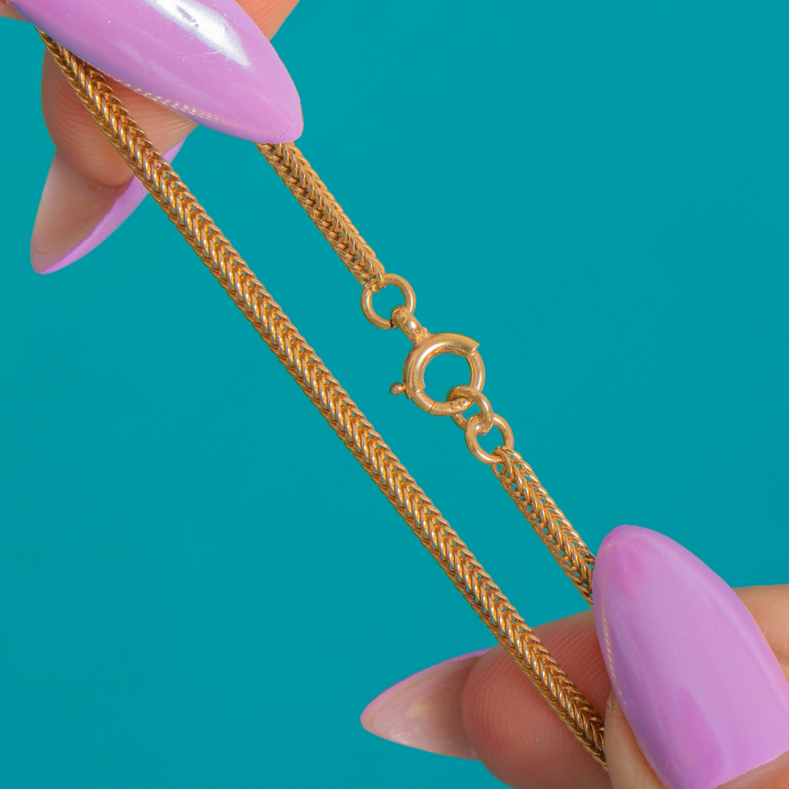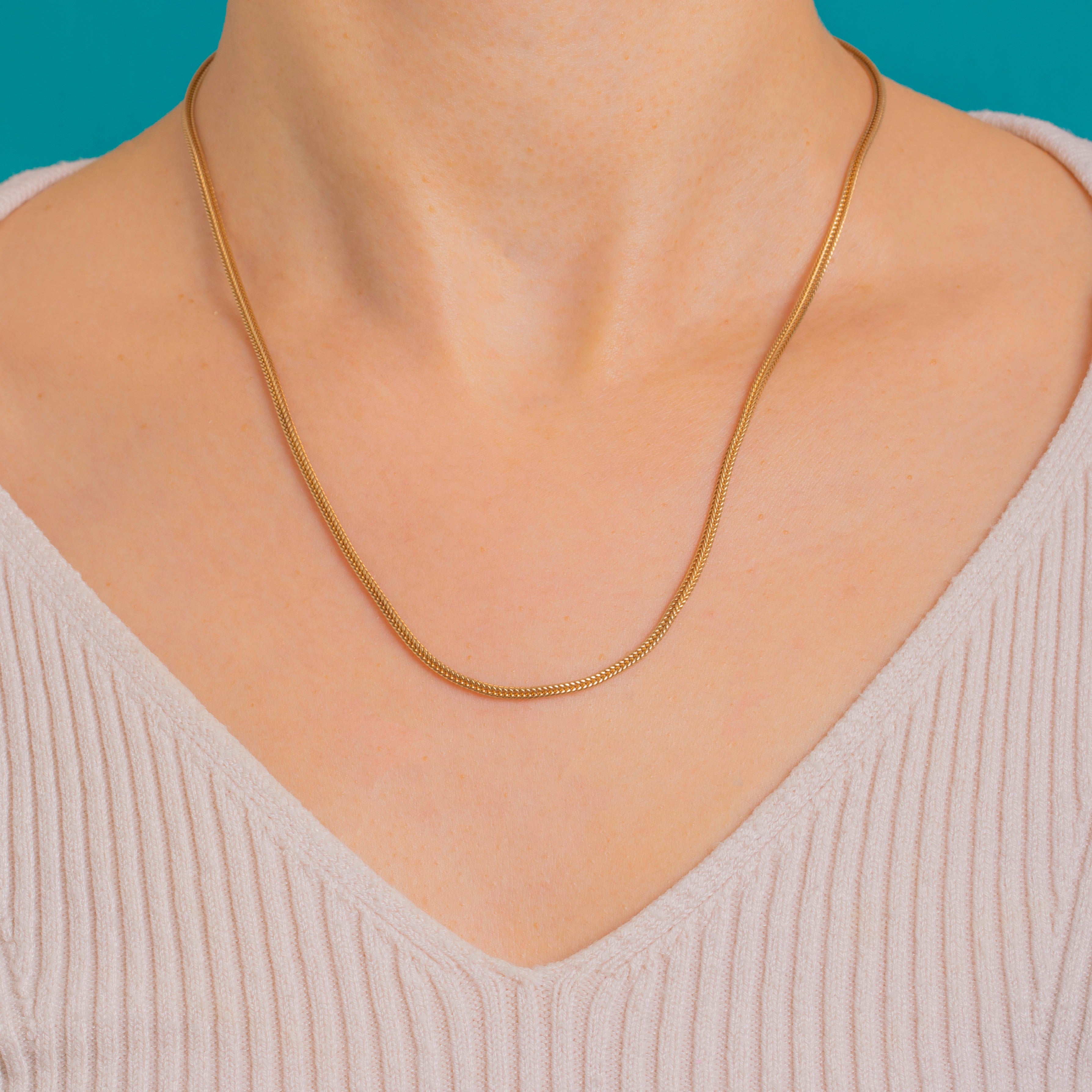 時代を超えて愛されるしなやかな美しさを持つ、アンティークのVictorianフォックステイルチェーン。豊かな9ctゴールドで丁寧に仕立てられ、オリジナルのアンティーク刻印入りボルトリングクラスプが付属しています。