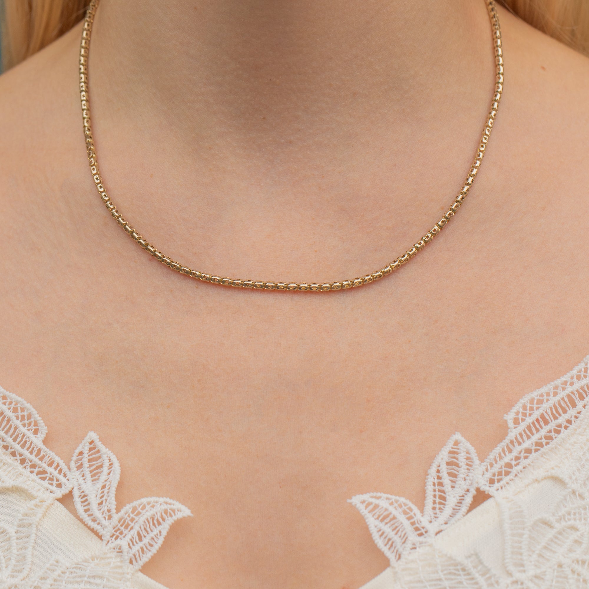 Measuring 17", this antique necklace will delicately poise itself over your collarbones making it perfect for adding a decadent touch to any outfit, either by herself or layered with all your other favourite antique chains!