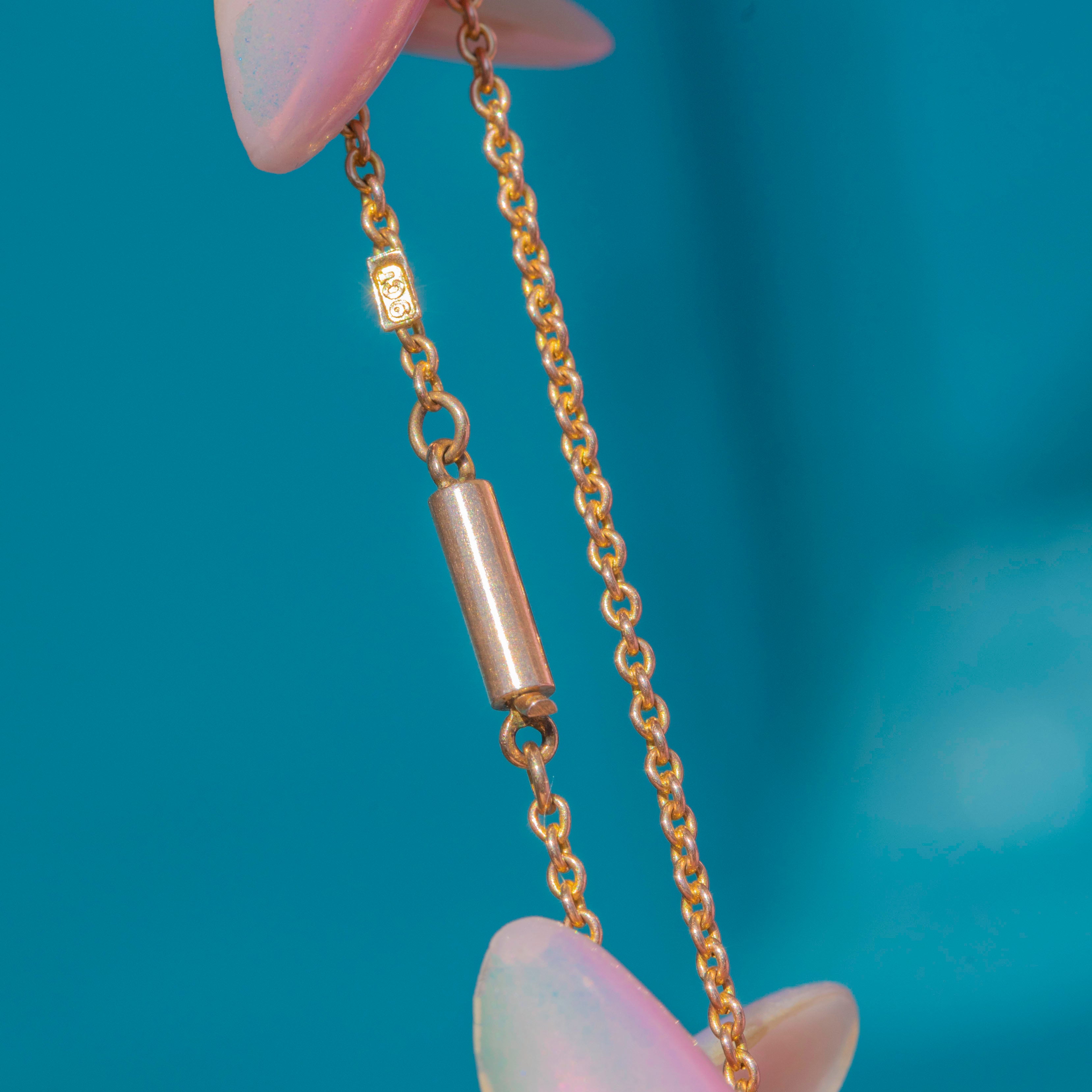 EXCELLENT: Each link is uniform and secure, with little wear. The barrel clasp is in perfect working order and with a lovely glossy sheen, this antique pendant chain can be worn with utmost confidence.