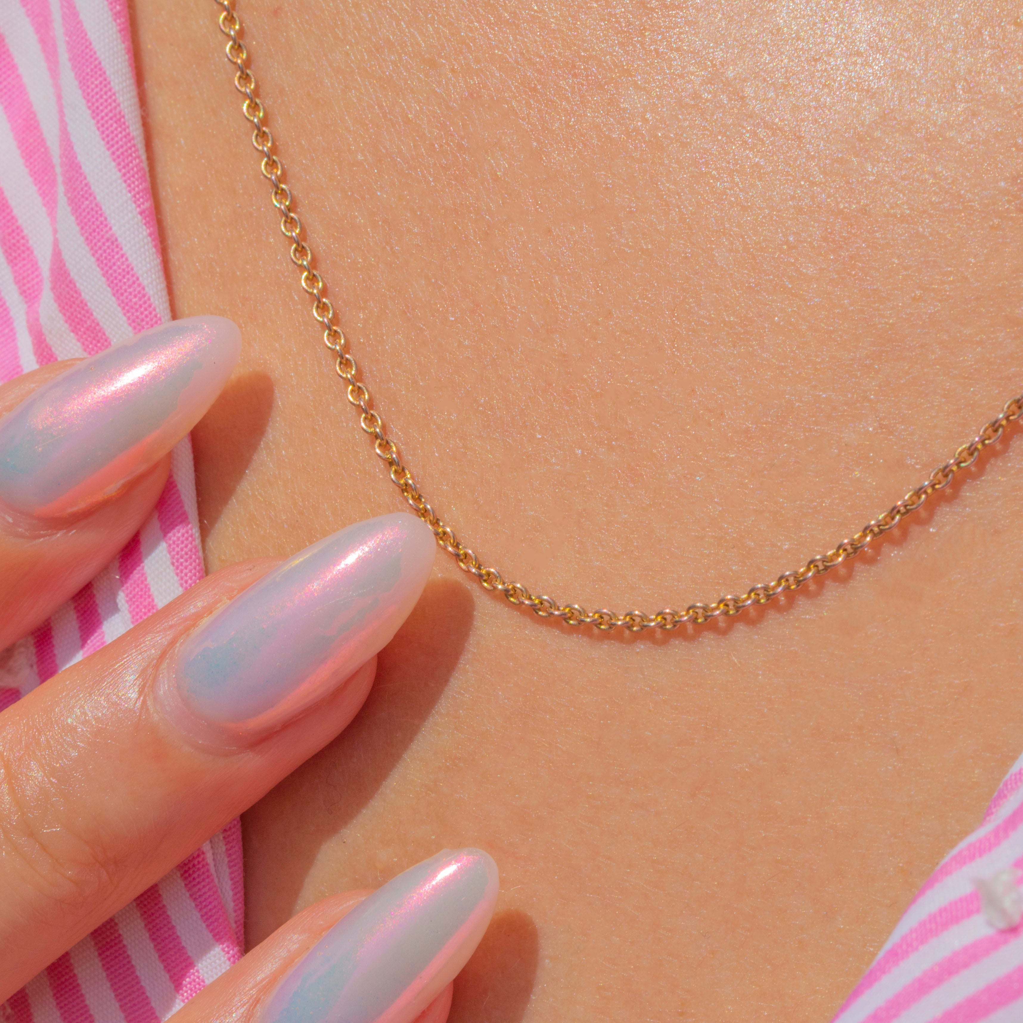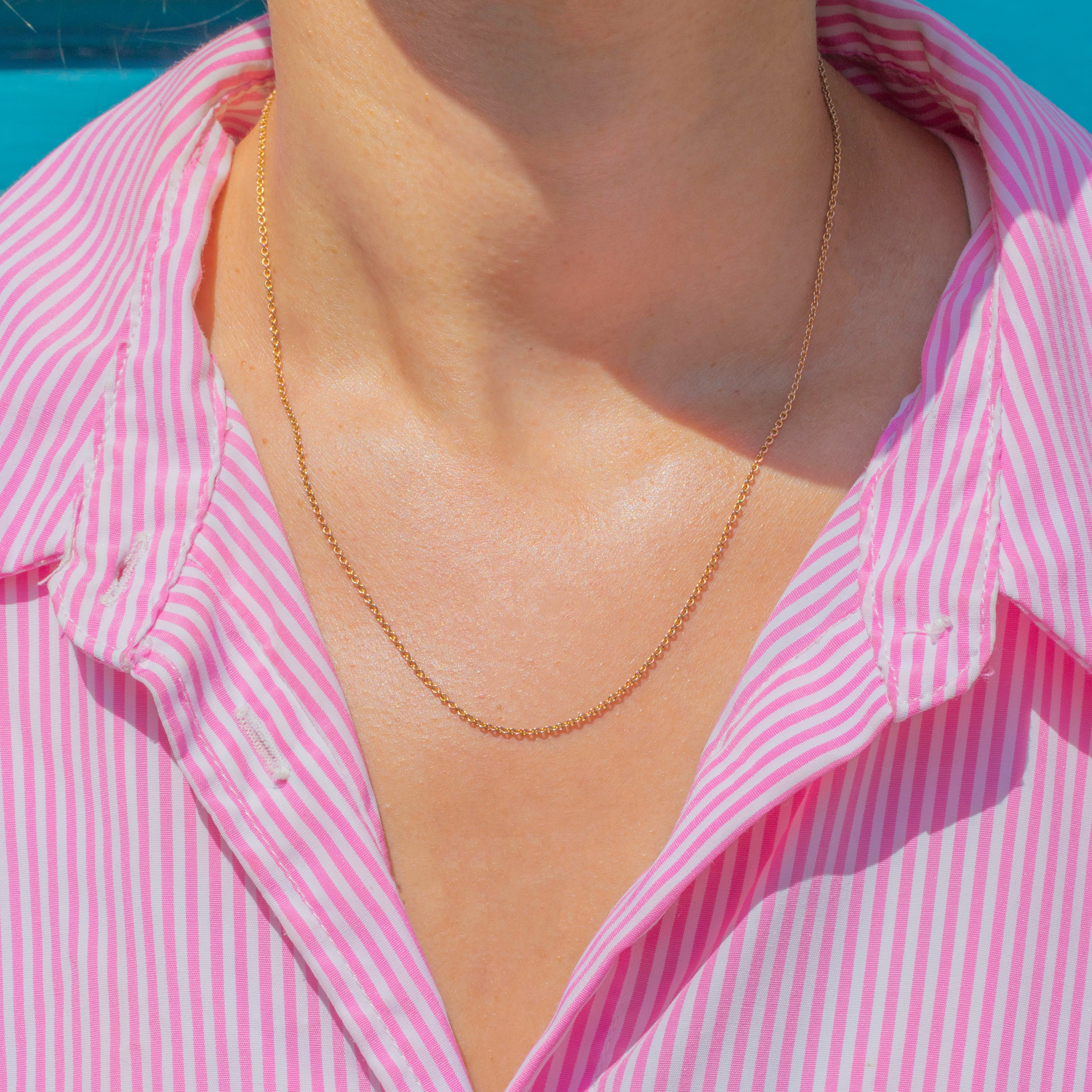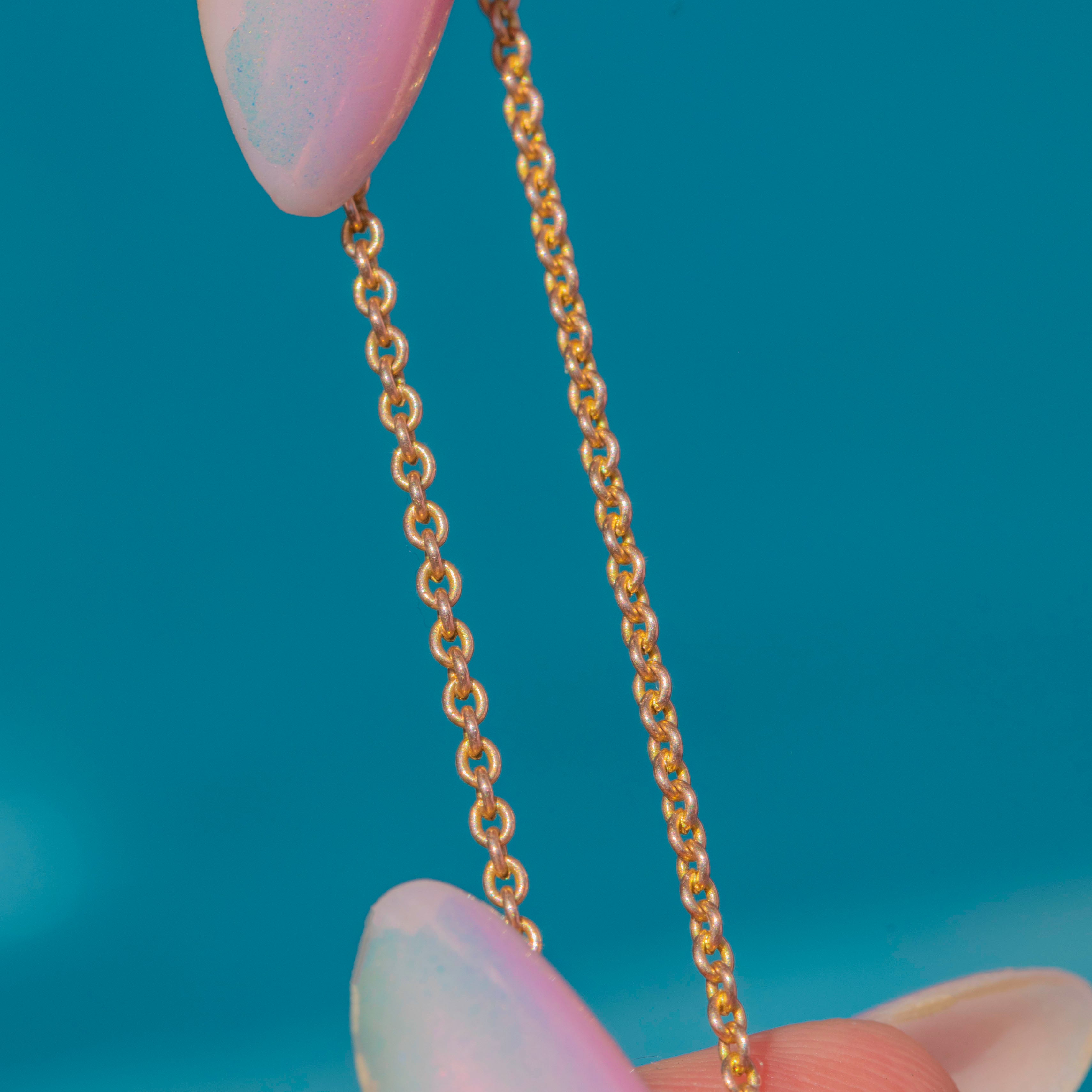 This 17" antique 9ct Gold skinny pendant chain is the perfect everyday staple, crafted from dainty belcher links that radiate a rosy glow.