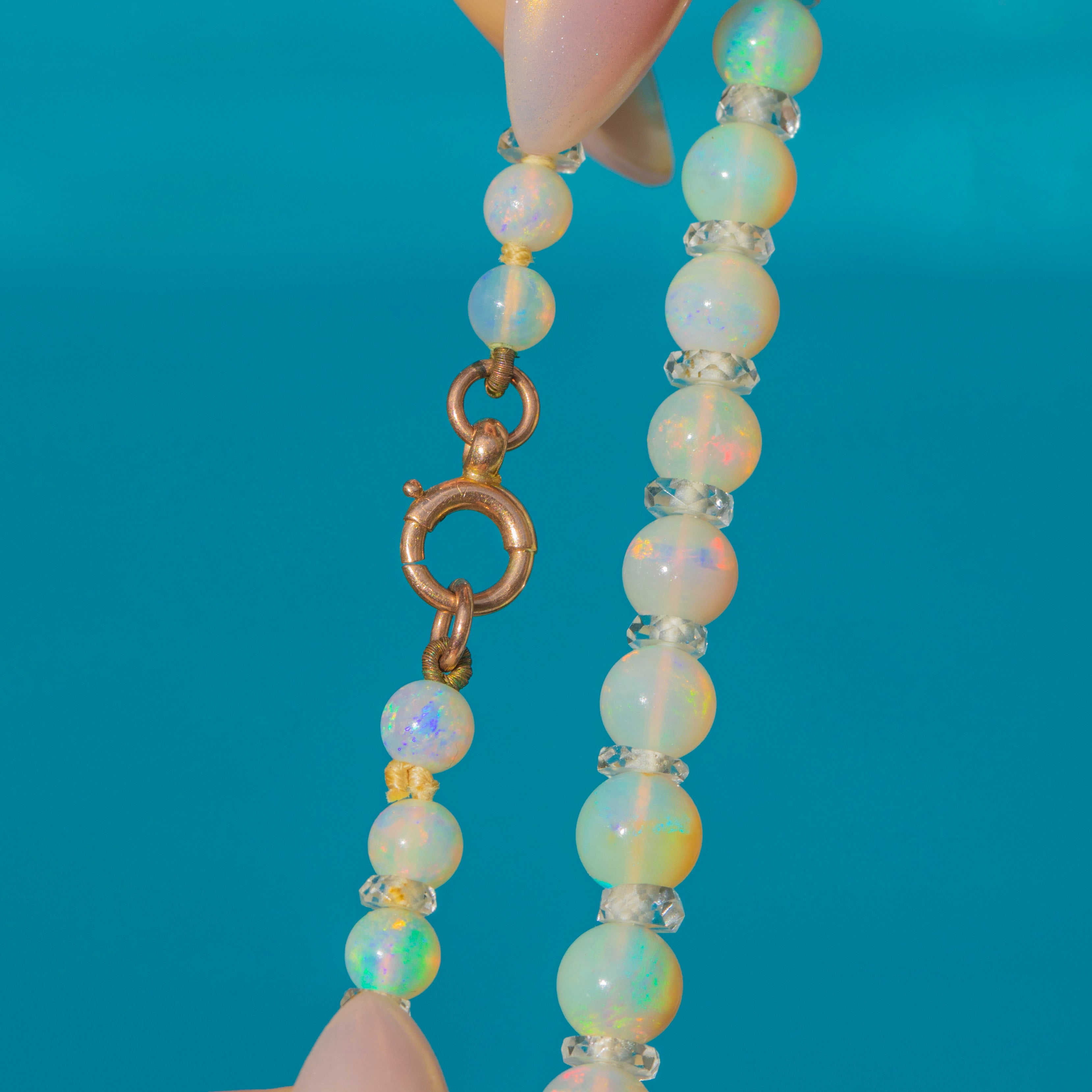 17" Art Deco Opal Bead Necklace with Rock Crystal Spacers, Antique Bolt Ring Clasp