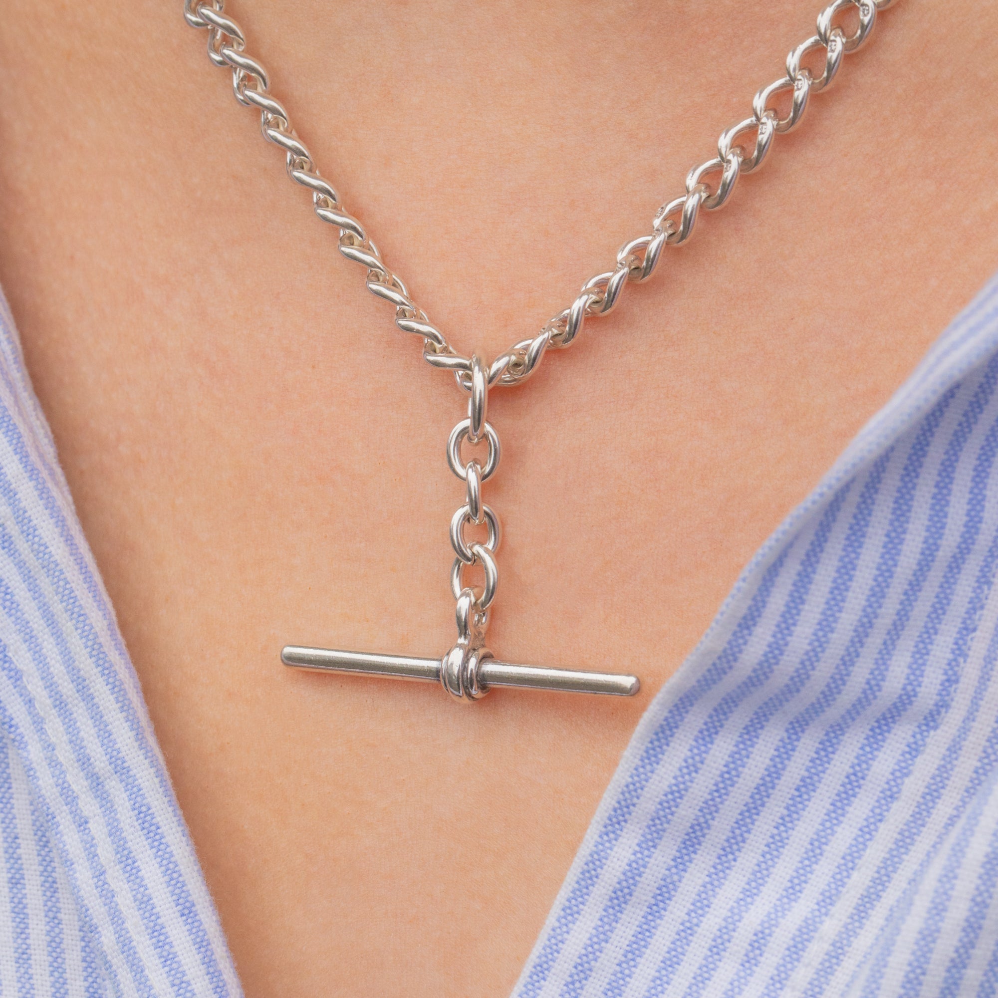 Crafted from 38 grams of solid Sterling Silver, the double dog clips can be adorned with a charm of your choice, or let the T-bar take centre stage. This is a gorgeous piece, perfect for everyday wear, and sure to be a firm favourite in your collection!