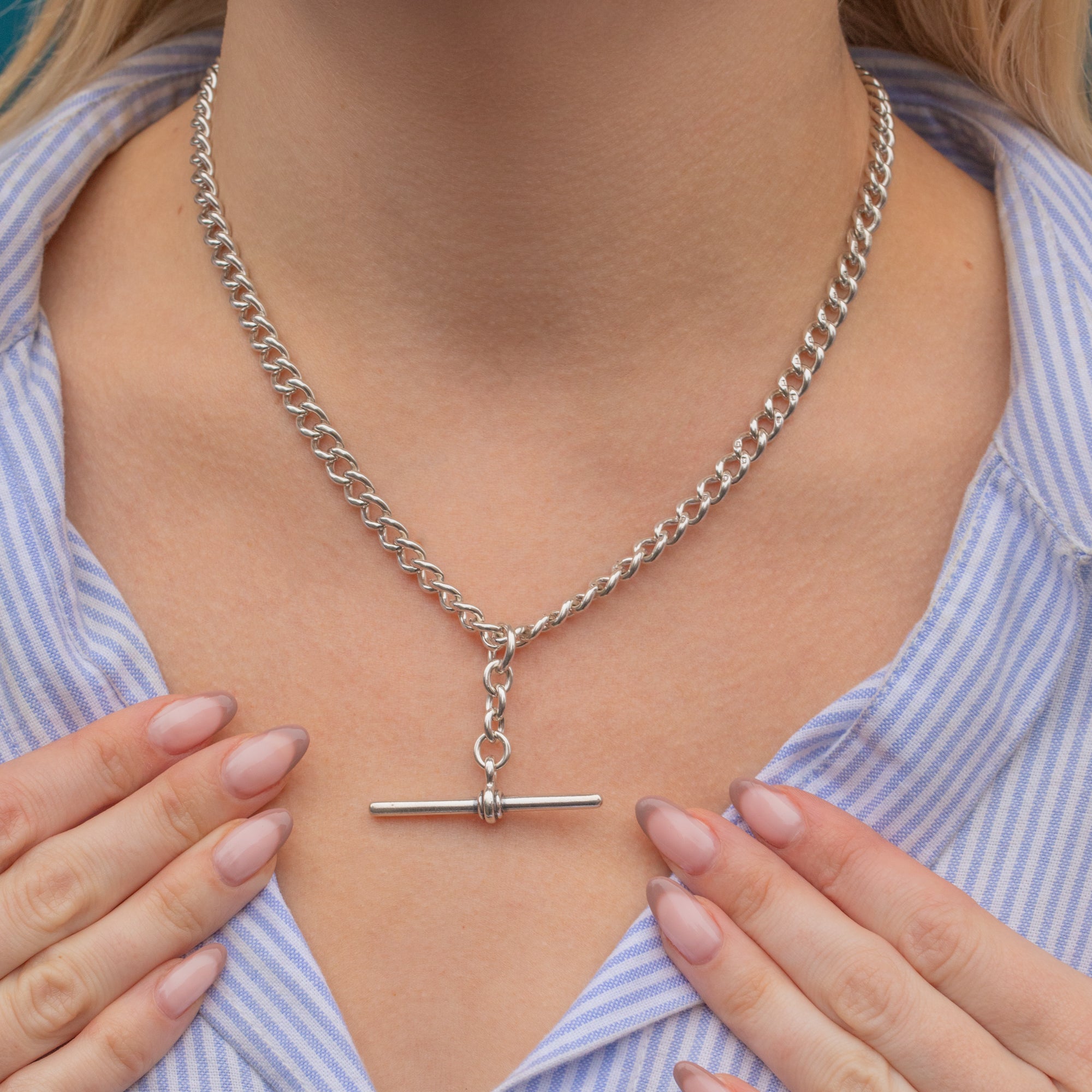 This 17" Silver Edwardian Albert chain is the perfect chunky statement piece to add to your collection!