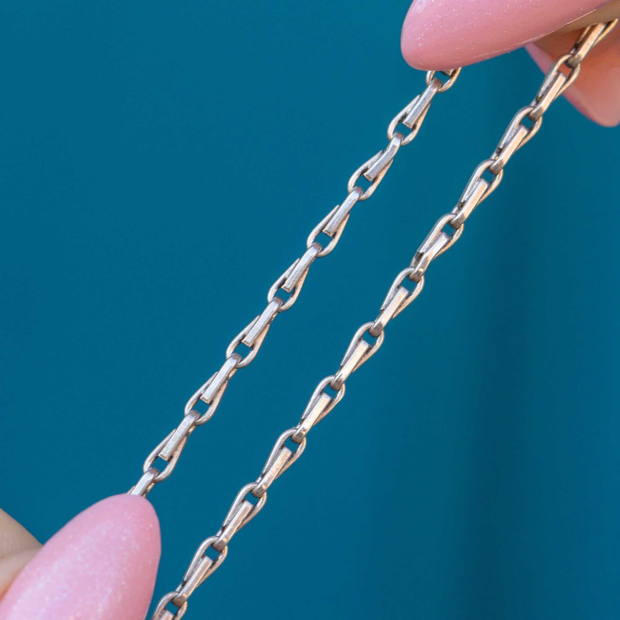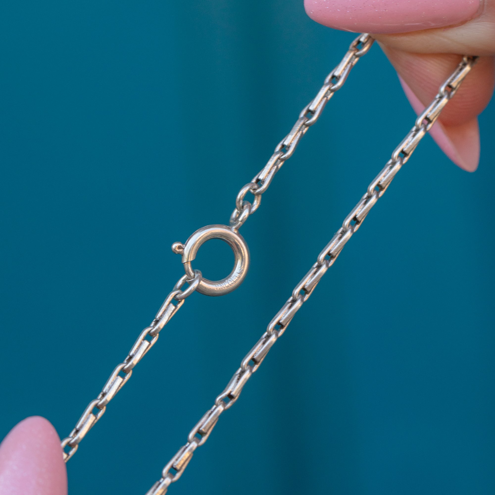 Crafted from lustrous Silver, this vintage chain features delicate hayseed links and is the perfect size for suspending an array of dainty charms or chunky pendants.