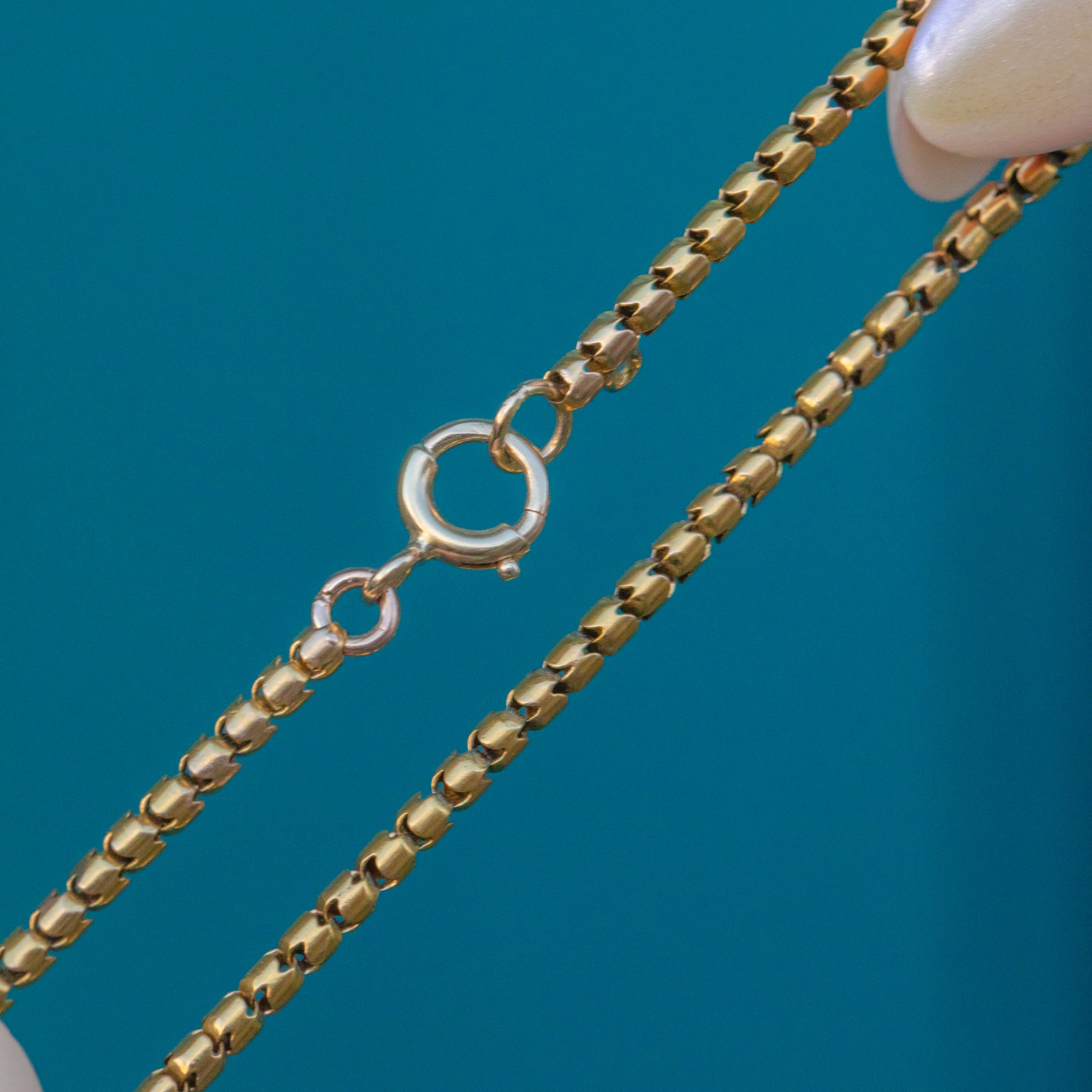 EXCELLENT. We are pleased to present this Victorian 15ct Gold snake chain in excellent condition! The links are smooth and securely connected, free from dings or scuffs. The Gold has a lovely buttery hue throughout and the bolt ring is in perfect working condition. This Victorian Gold chain is a fine investment piece, guaranteed to delight for generations to come!
